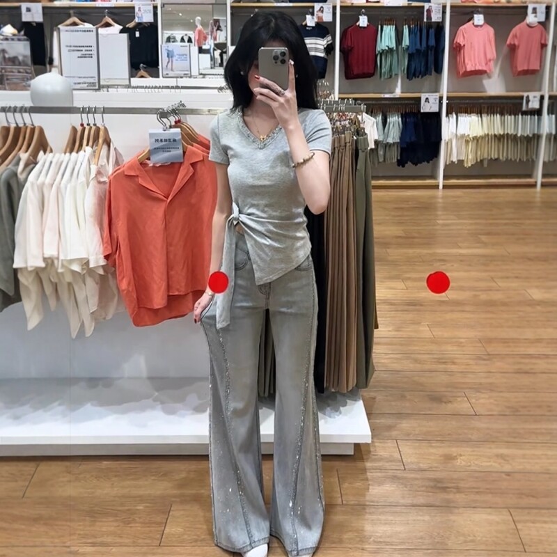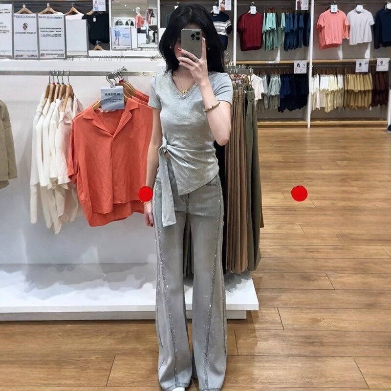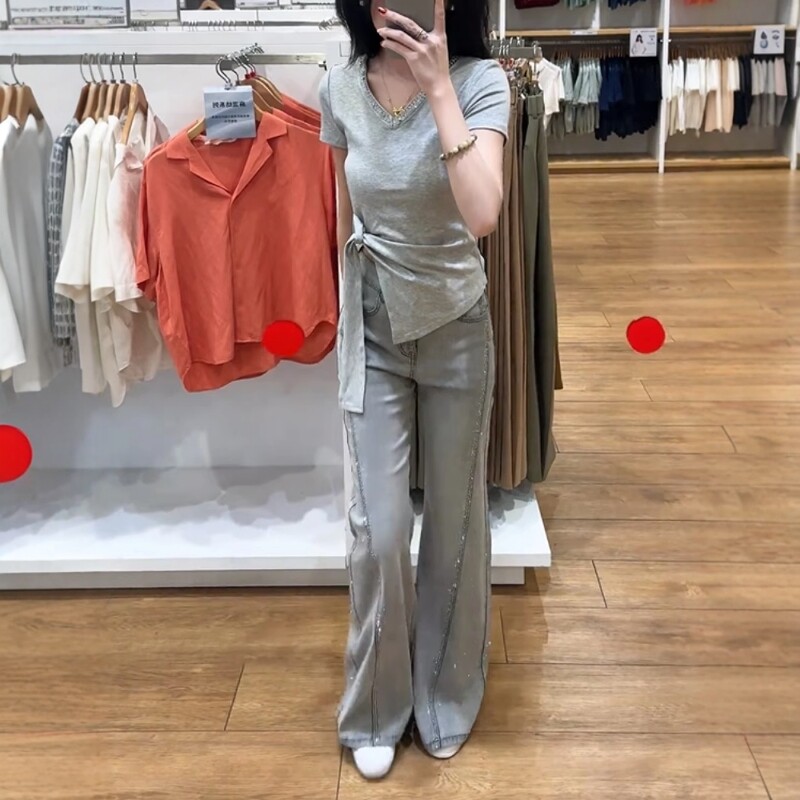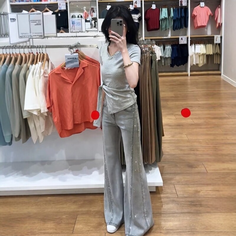 Yay üçün qadınlar üçün yüksək keyfiyyətli, ağır daşlarla bəzədilmiş şalvarlar, böyük ölçülü, yüksək belli, geniş bədən formasında, arıqladıcı düz ayaqlı şalvar.