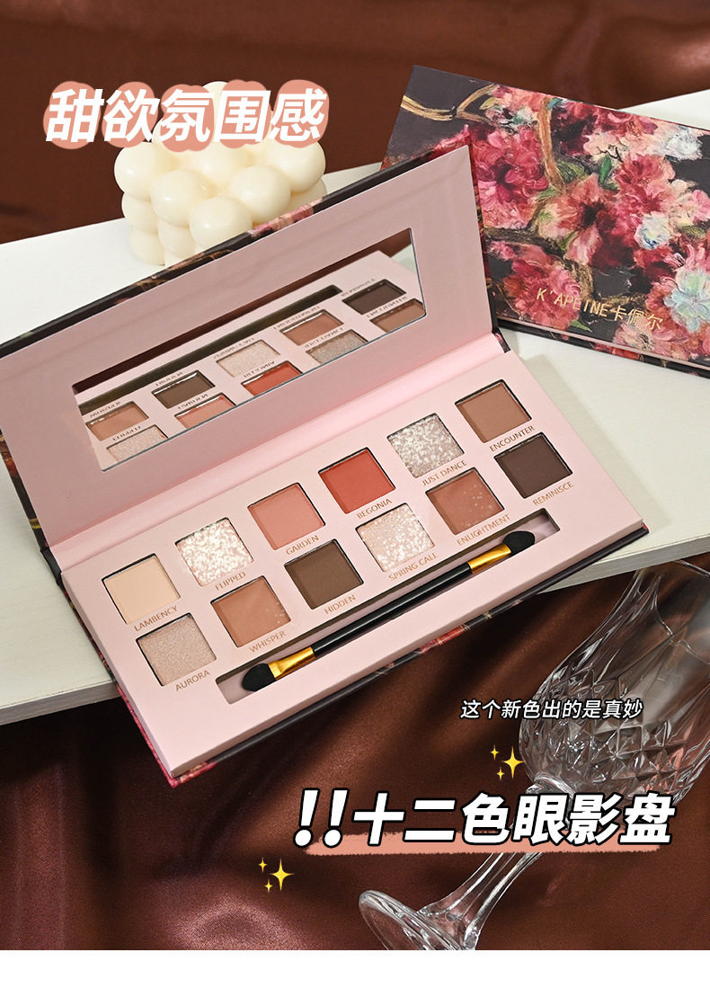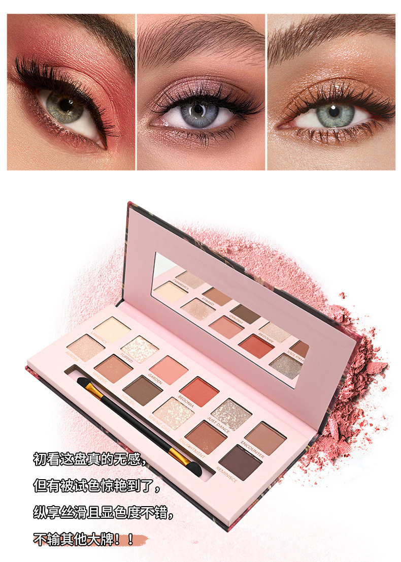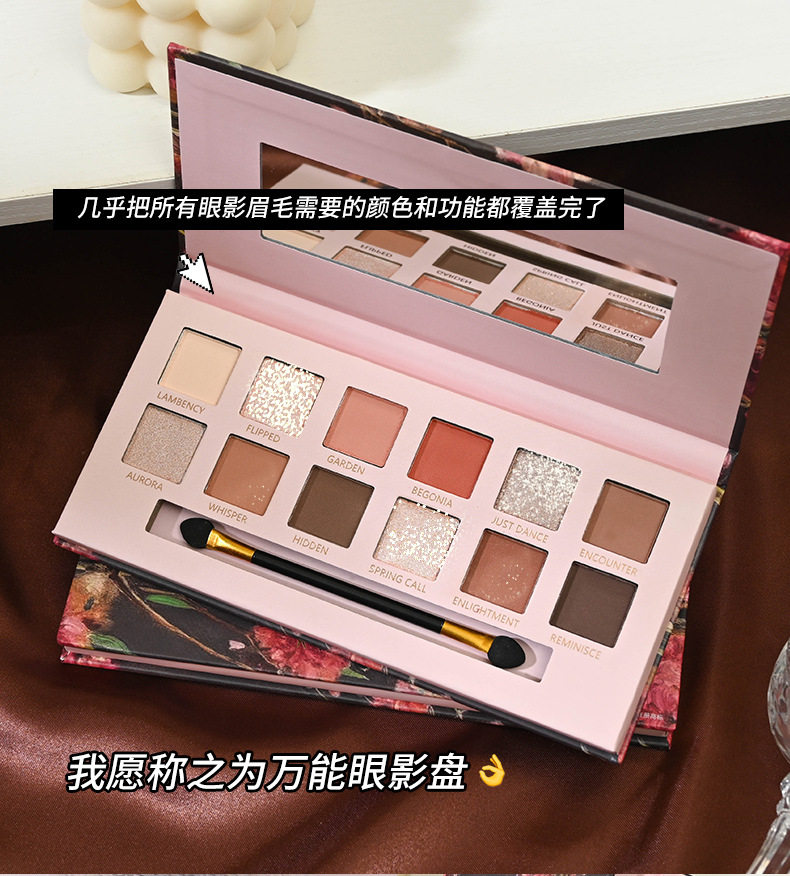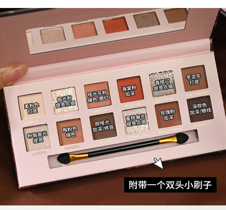 Yeni 12 rəngli begonia çiçəyi yağlı boya üslubunda çəhrayı və qəhvəyi göz kölgəsi palitrası, mat, mirvari rəngli, incə parıltılı, torpaq tonu aşağı doymuş göz kölgəsi palitrası