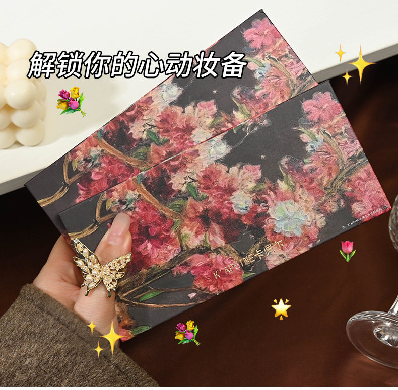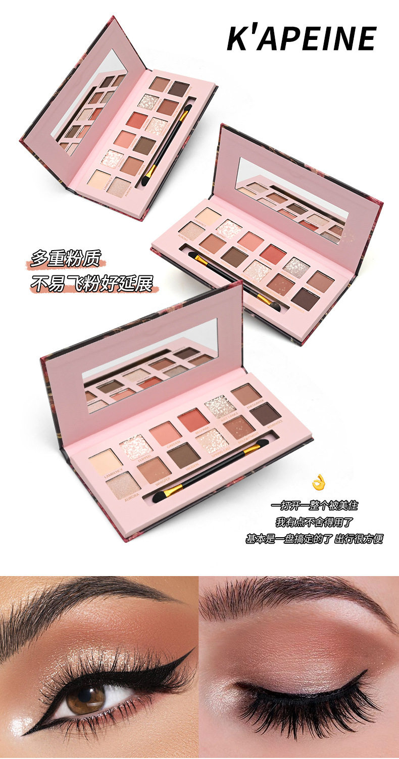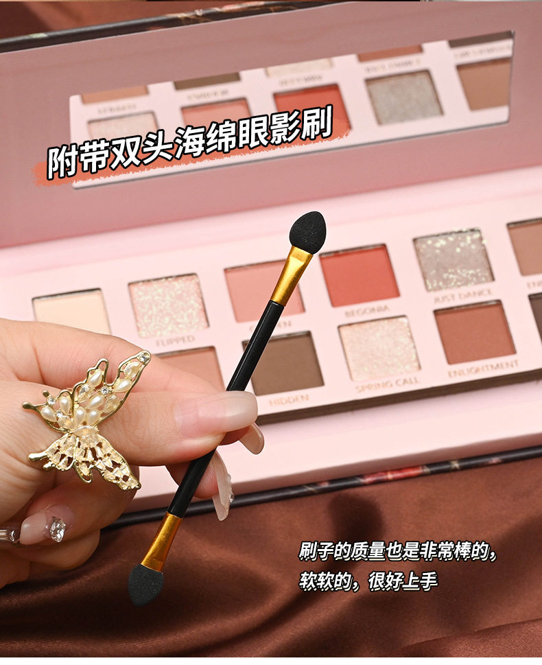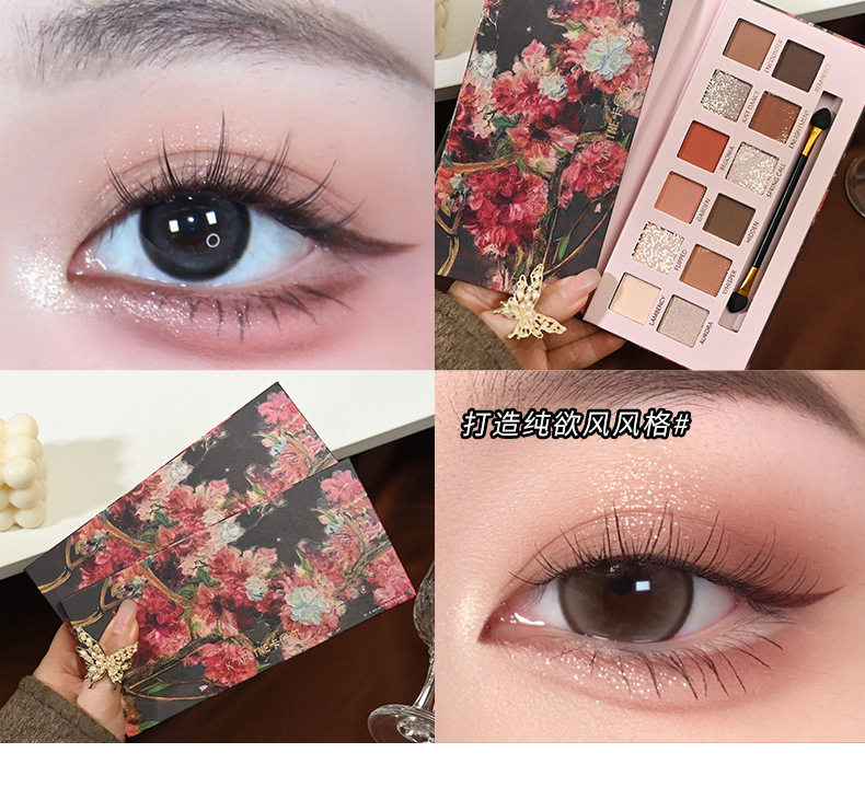 Yeni 12 rəngli begonia çiçəyi yağlı boya üslubunda çəhrayı və qəhvəyi göz kölgəsi palitrası, mat, mirvari rəngli, incə parıltılı, torpaq tonu aşağı doymuş göz kölgəsi palitrası