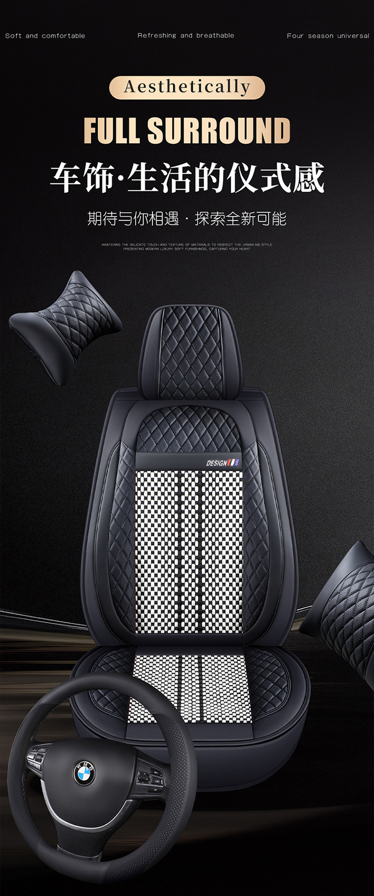 New, all-season breathable leather ice silk car seat covers, full-cover car seat cushions, summer seat cushions