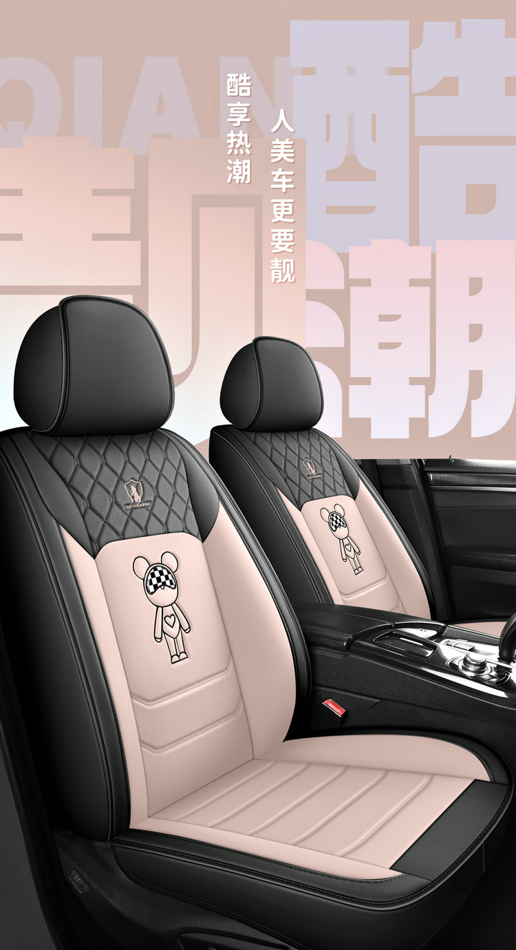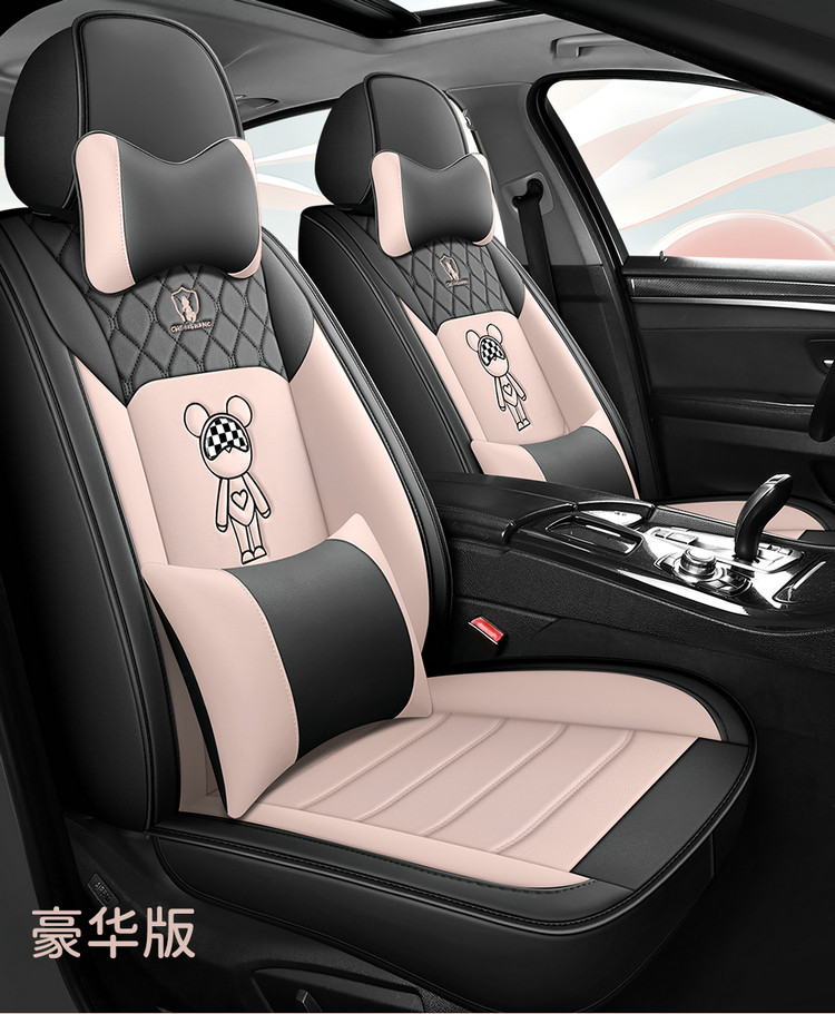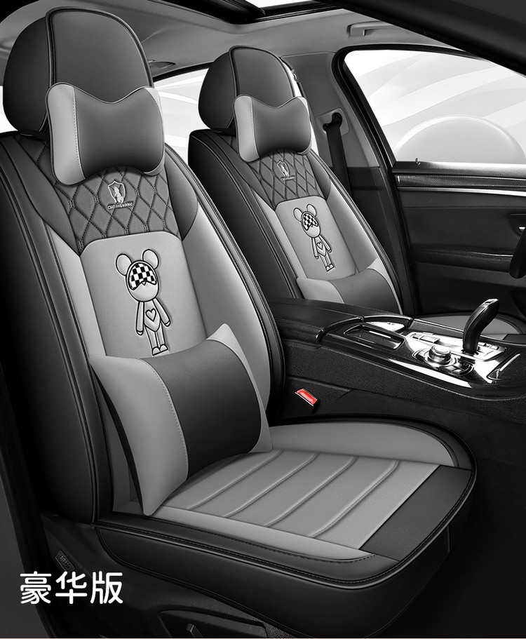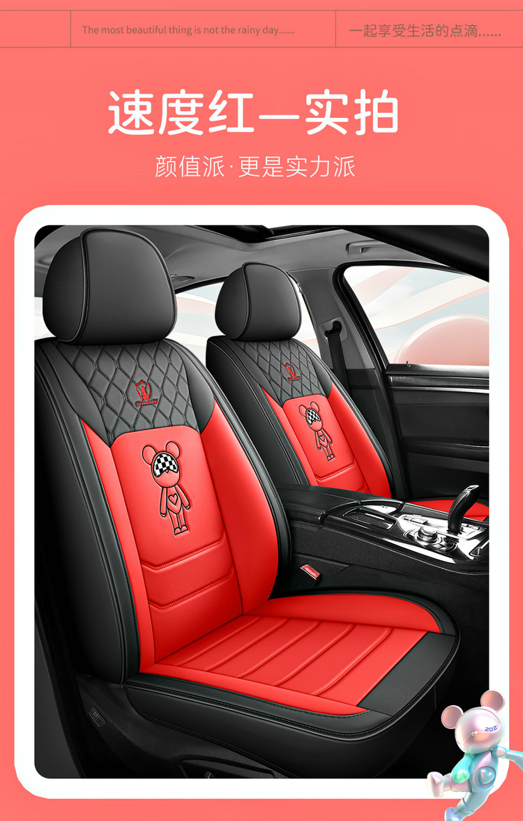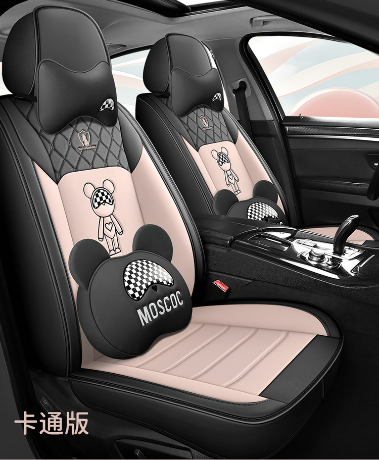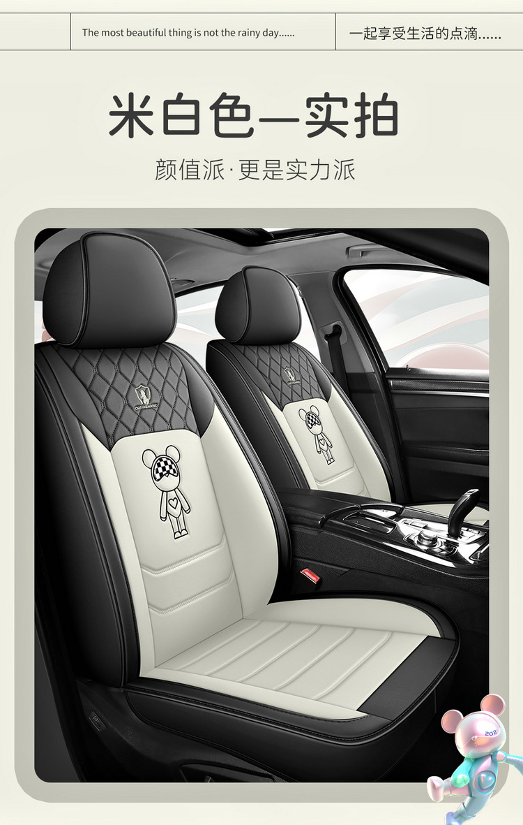 Yeni cizgi filmi avtomobil oturacaq üzlükləri, bütün fəsillər üçün, aşınmaya davamlı, tam dəri oturacaq yastıqları, şirin ayı, tam örtüklü oturacaq üzlükləri.
