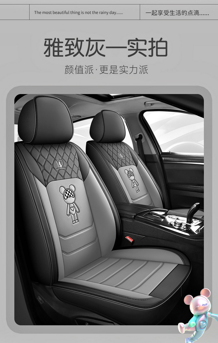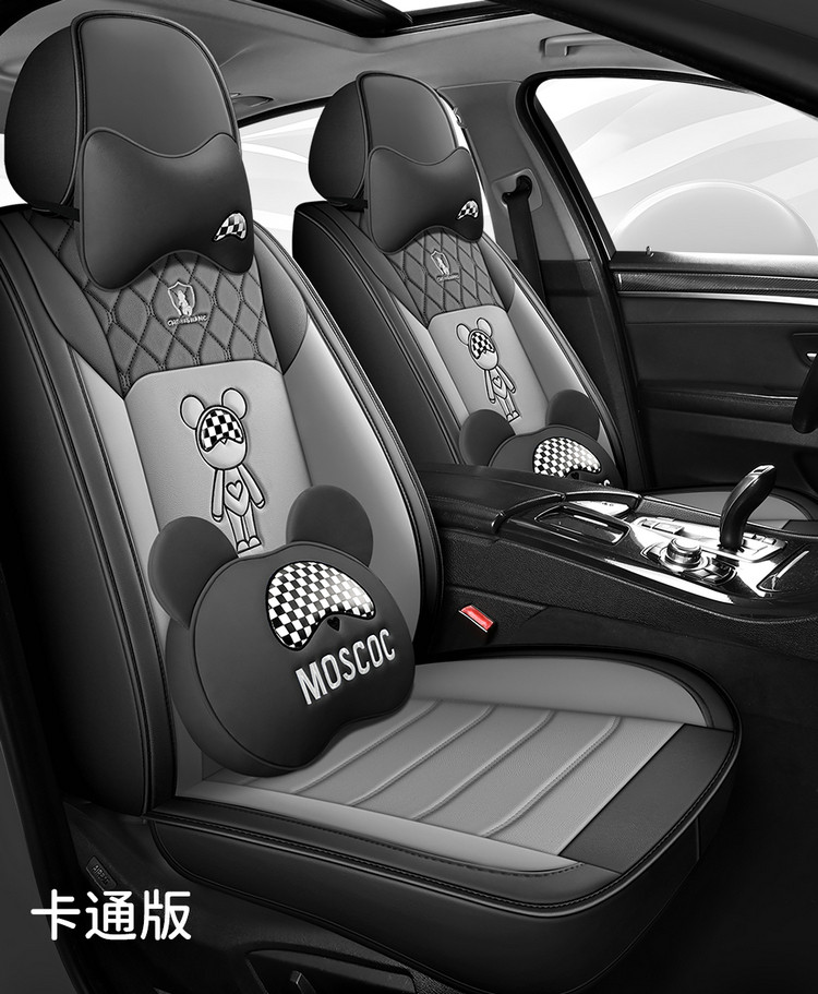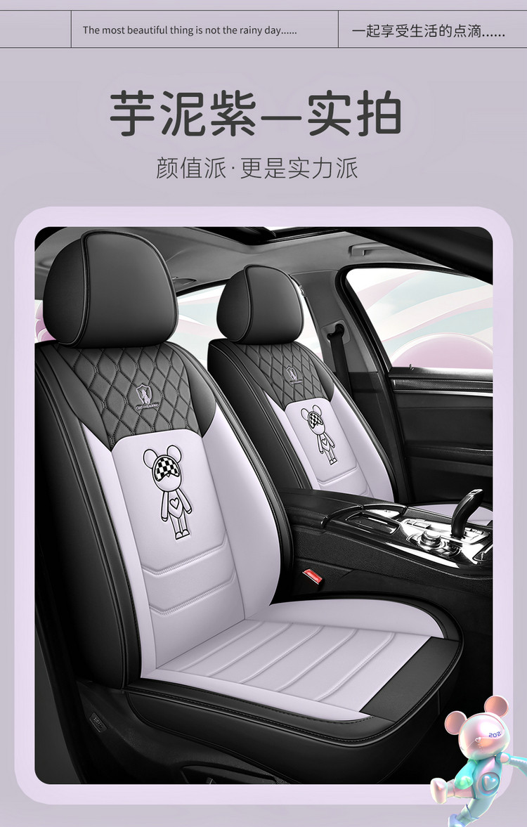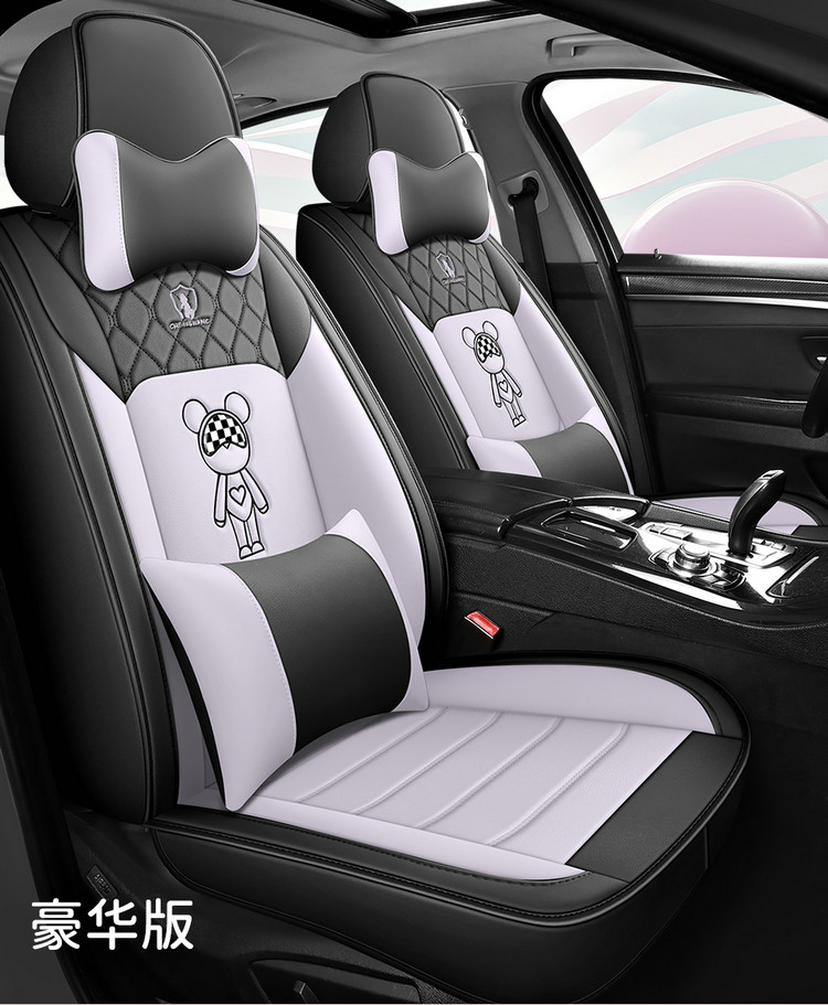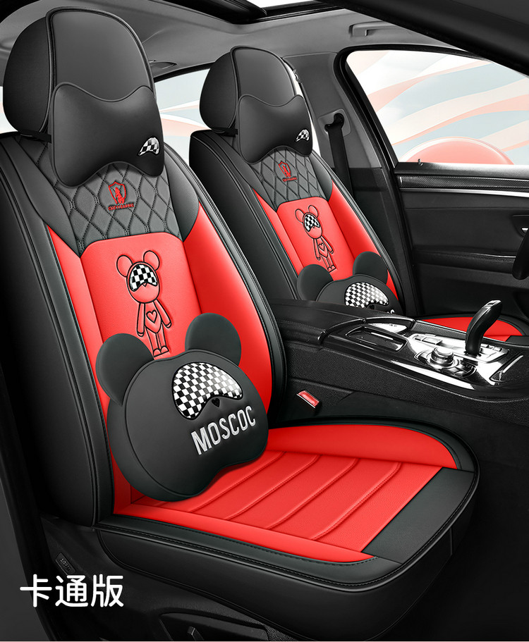 Yeni cizgi filmi avtomobil oturacaq üzlükləri, bütün fəsillər üçün, aşınmaya davamlı, tam dəri oturacaq yastıqları, şirin ayı, tam örtüklü oturacaq üzlükləri.