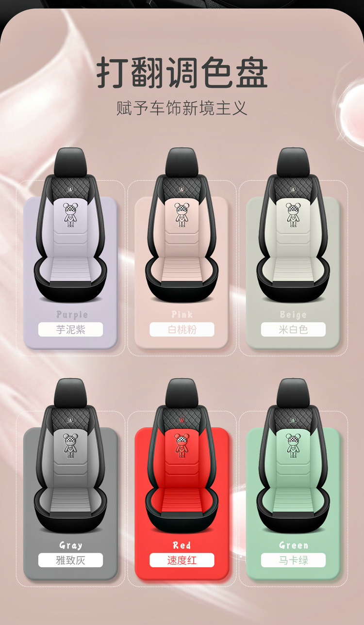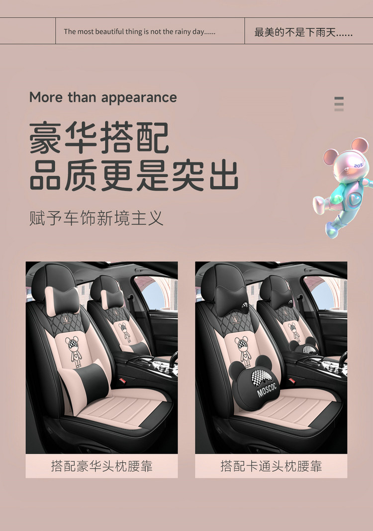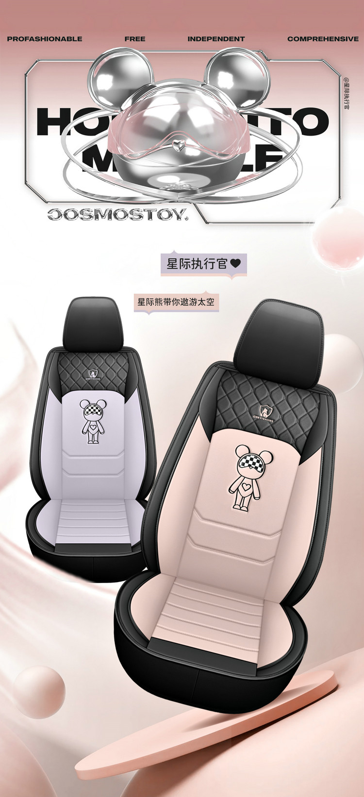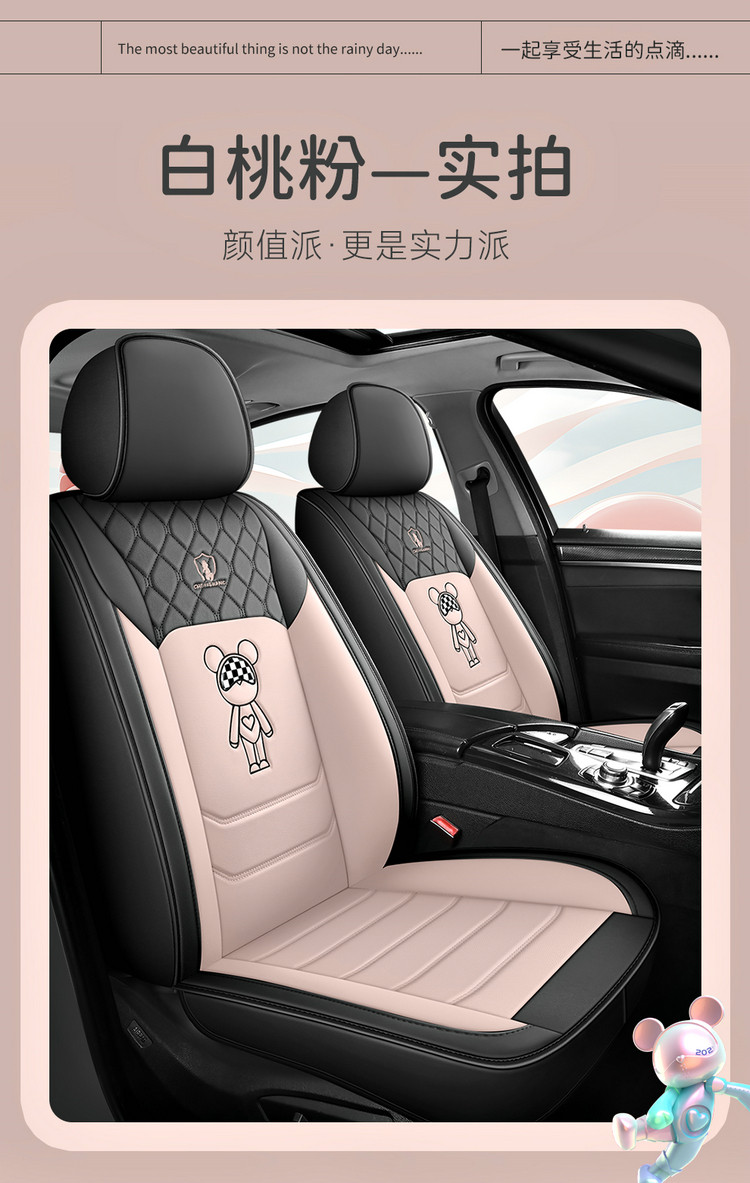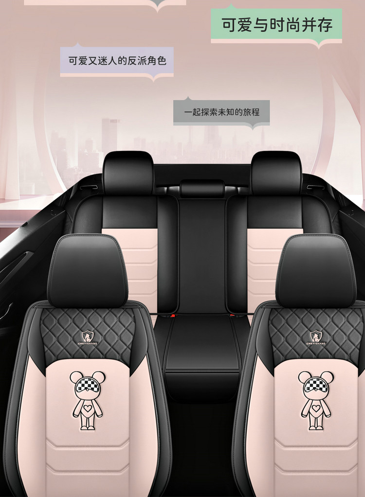 Yeni cizgi filmi avtomobil oturacaq üzlükləri, bütün fəsillər üçün, aşınmaya davamlı, tam dəri oturacaq yastıqları, şirin ayı, tam örtüklü oturacaq üzlükləri.