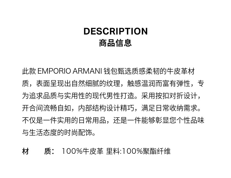 [Yeni il hədiyyəsi] EMPORIO ARMANI Kişilər üçün dana dərisindən hazırlanmış fermuarlı pul kisəsi/kart tutacağı
