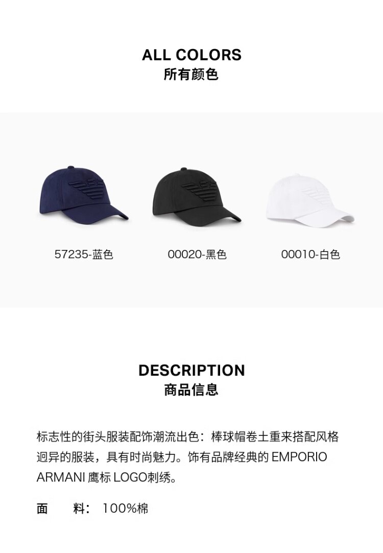 [New Year's gift] EMPORIO ARMANI Men's pure cotton baseball cap (official)