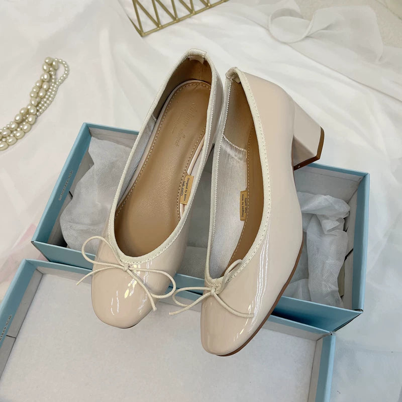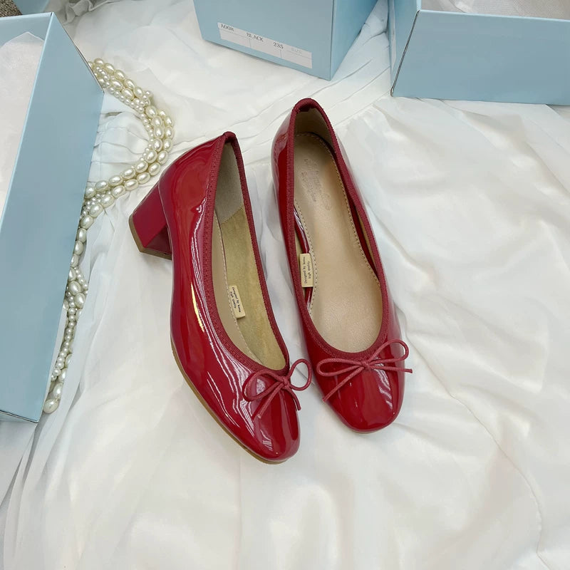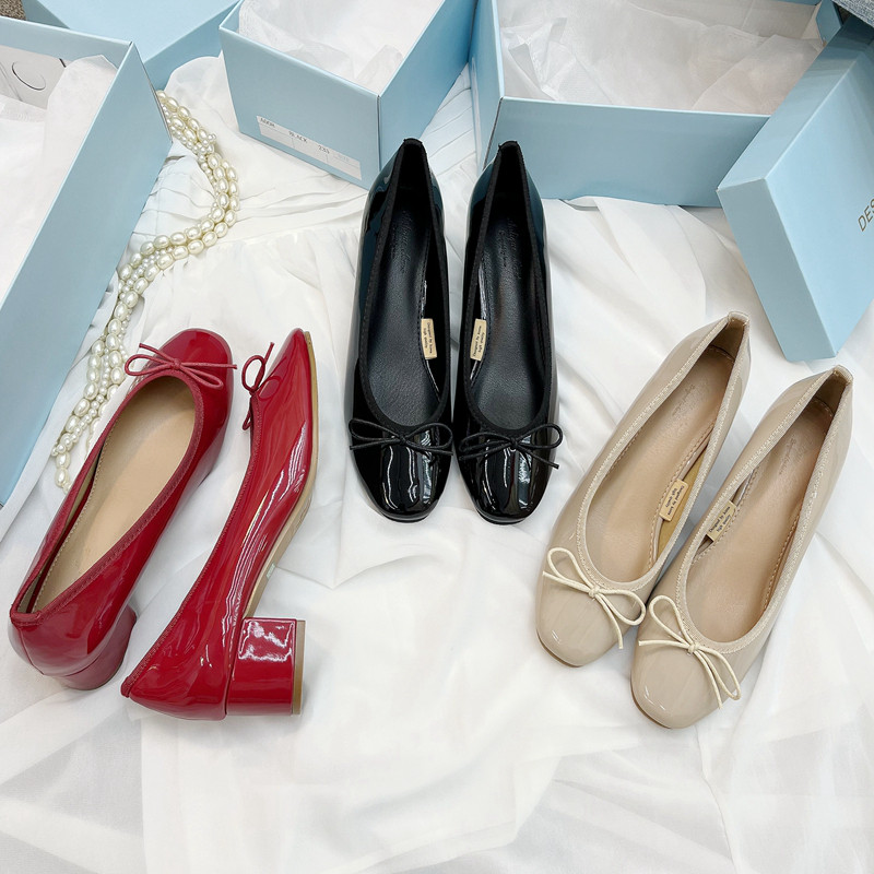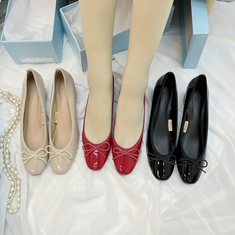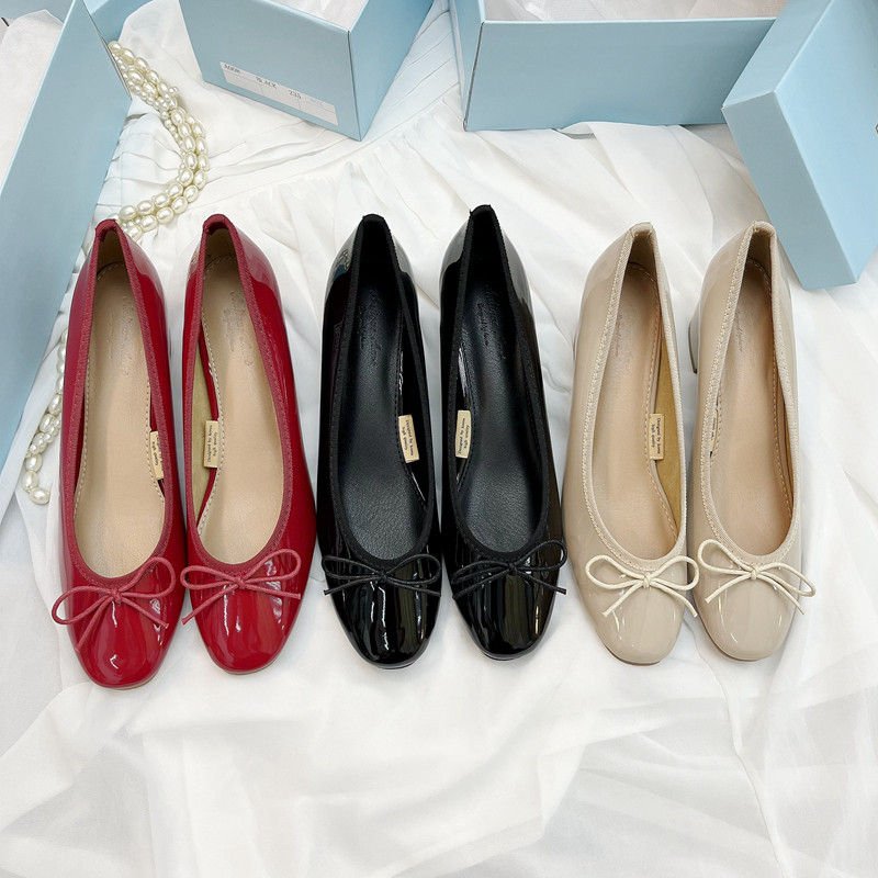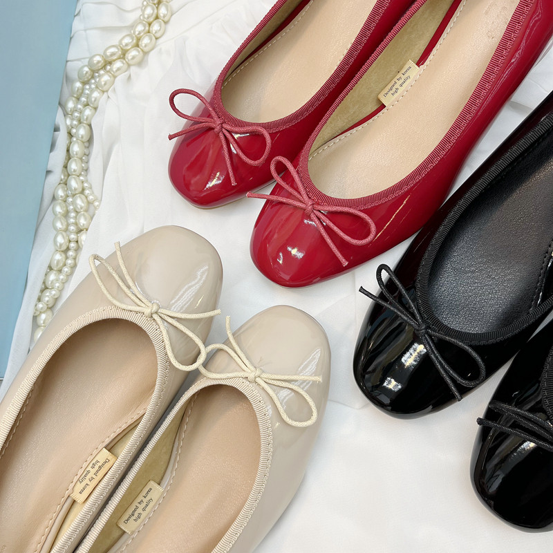 Yeni Koreya üslubunda ~ Balet bantlı ayaqqabı ~ Qalın daban, dairəvi burunlu, aşağı kəsikli, yumşaq laklı dəri, rezin altlıq, yaz və payız üçün idealdır.