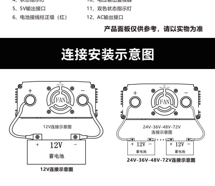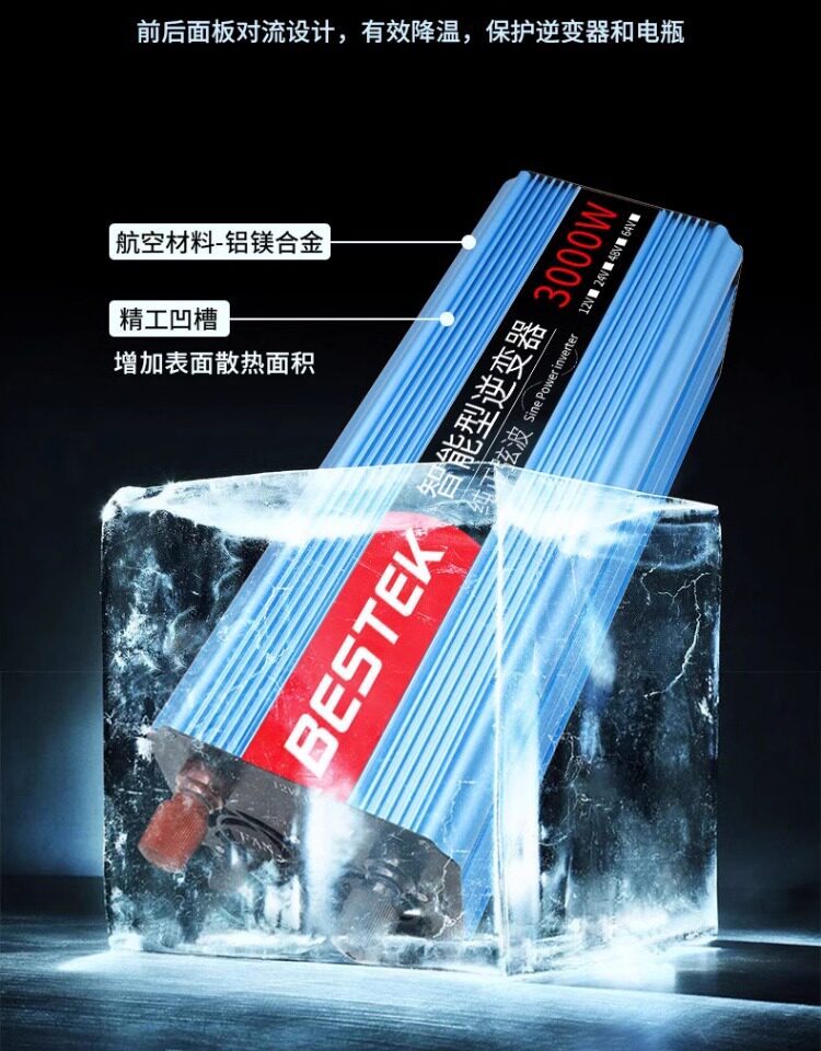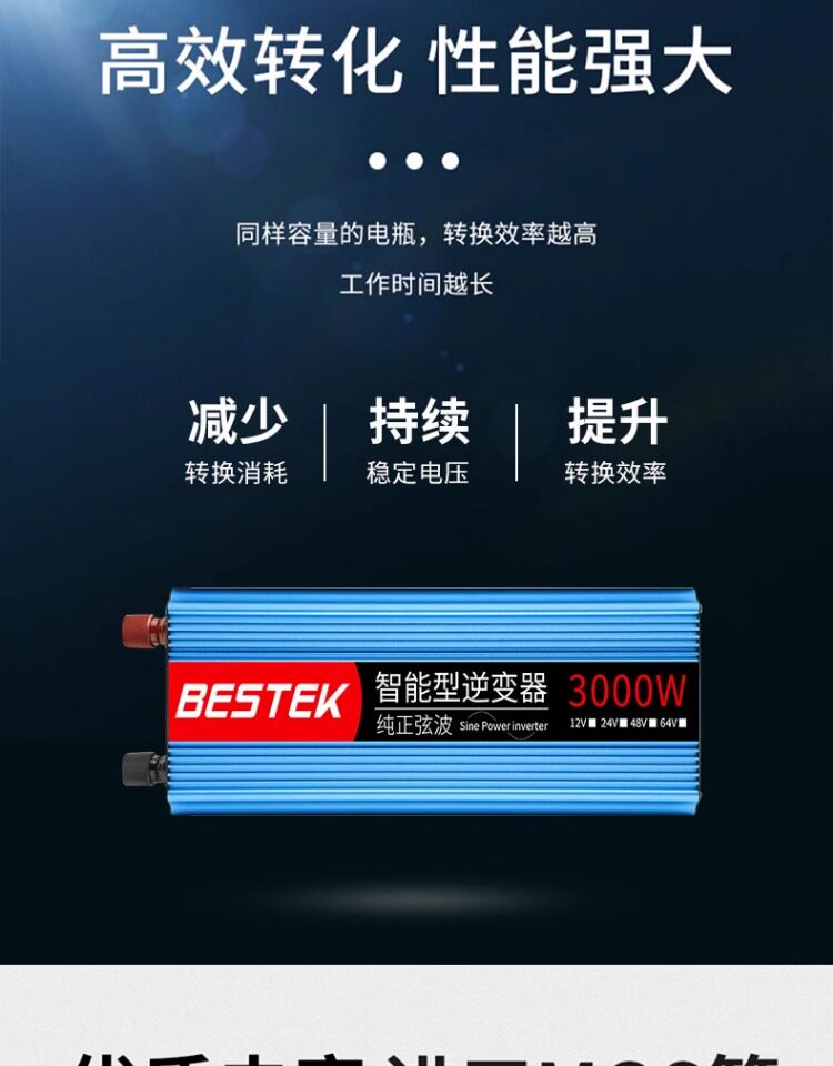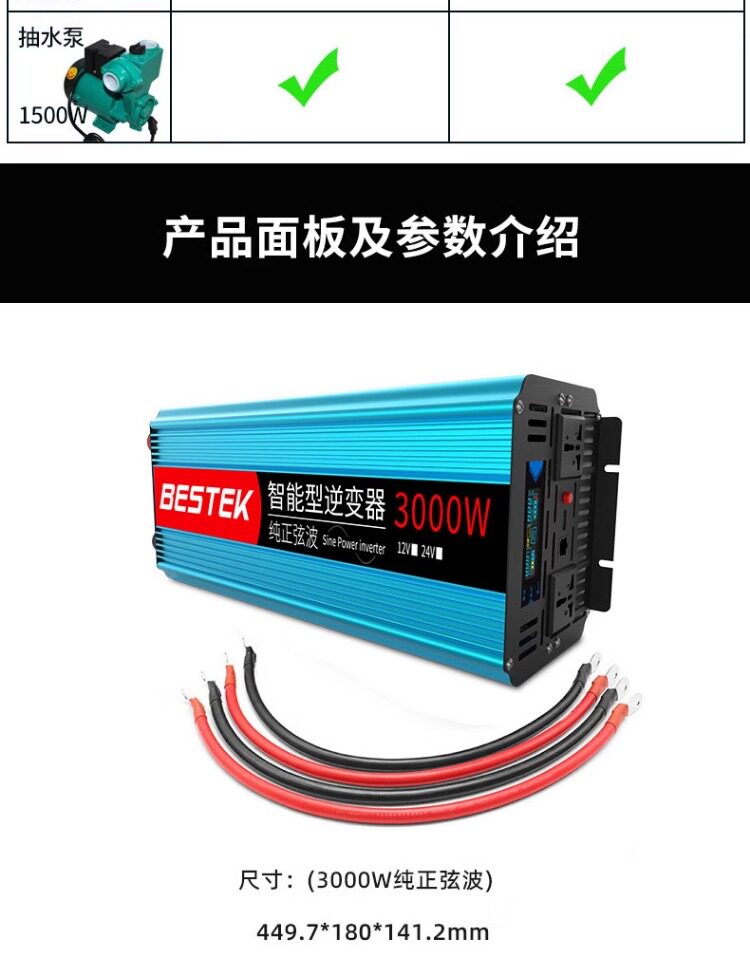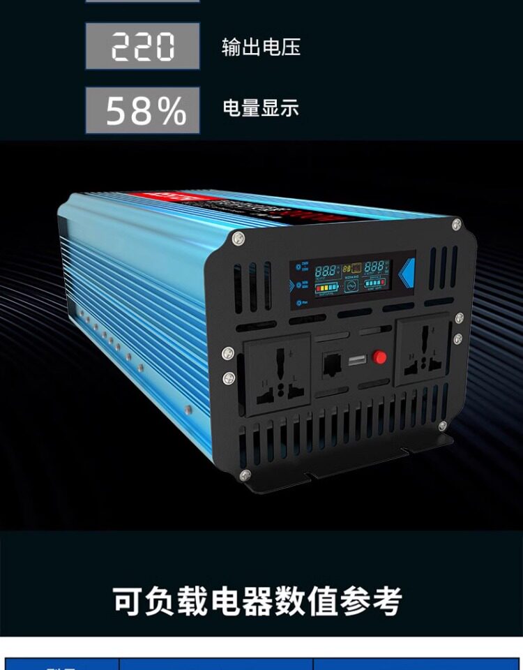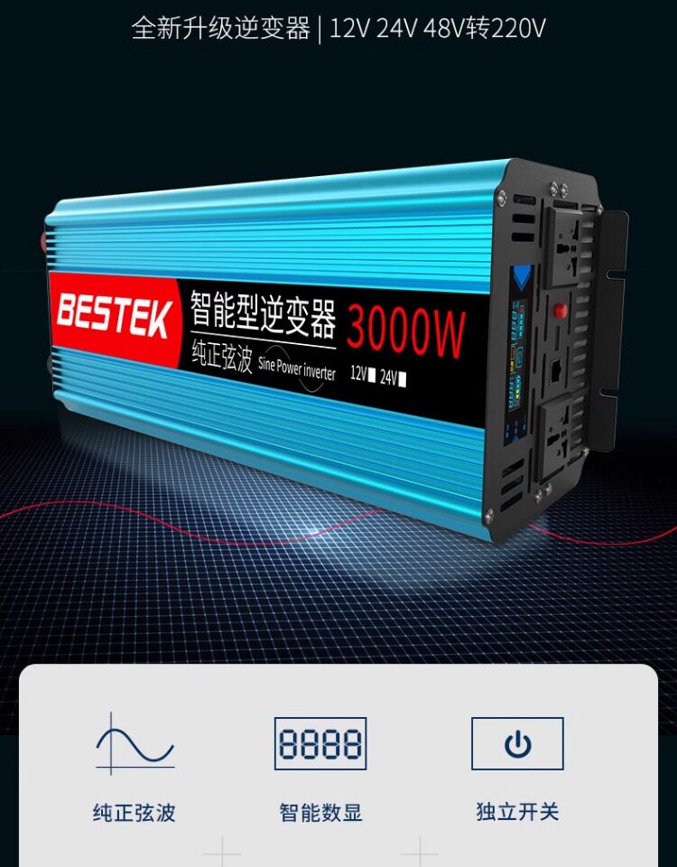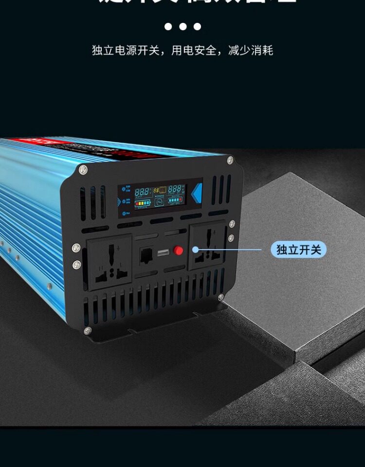 Yük maşınları və evlər üçün təmiz sinus dalğalı 12V/24V/48V-dən 220V-a qədər yüksək güclü batareya enerjisi çeviricisi.