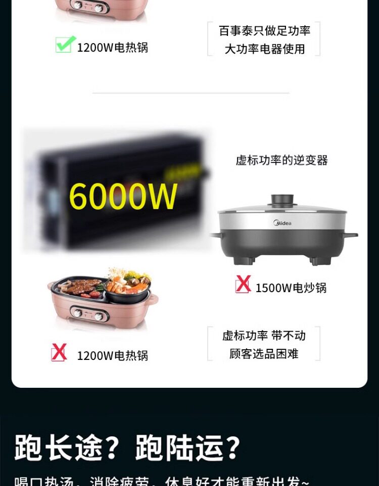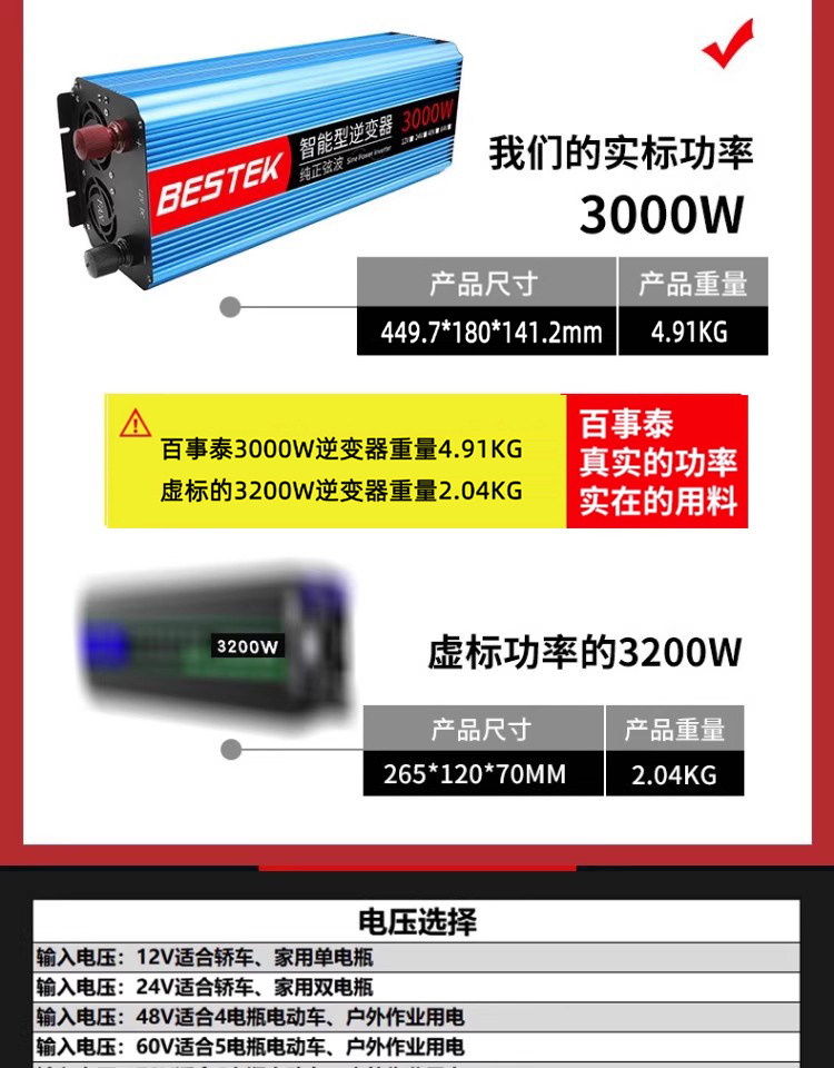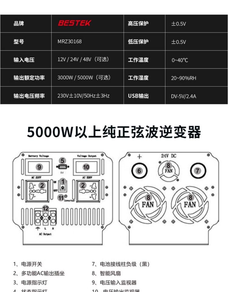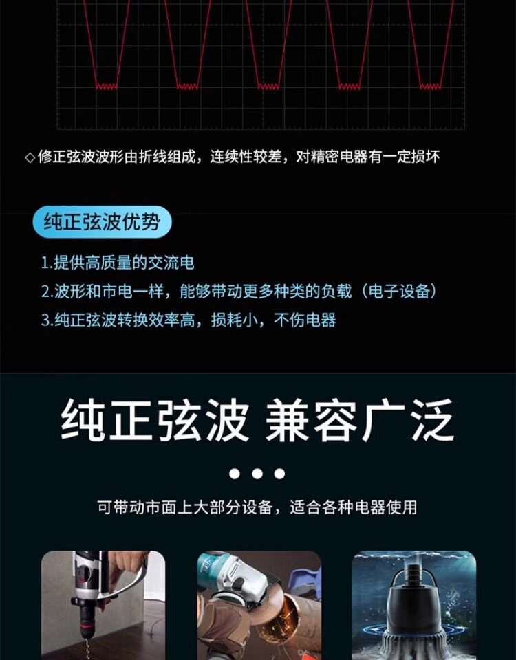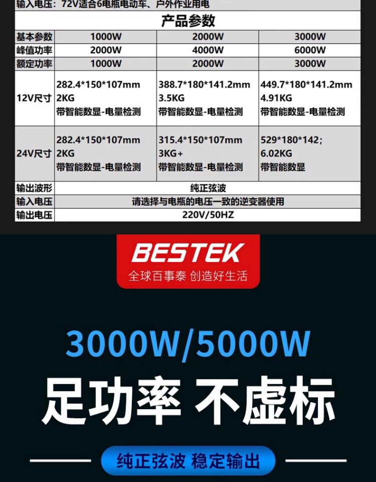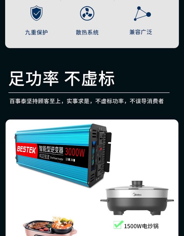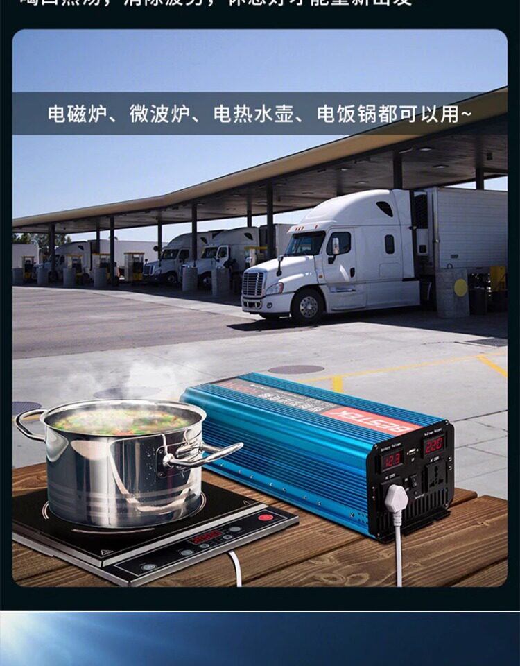 Yük maşınları və evlər üçün təmiz sinus dalğalı 12V/24V/48V-dən 220V-a qədər yüksək güclü batareya enerjisi çeviricisi.