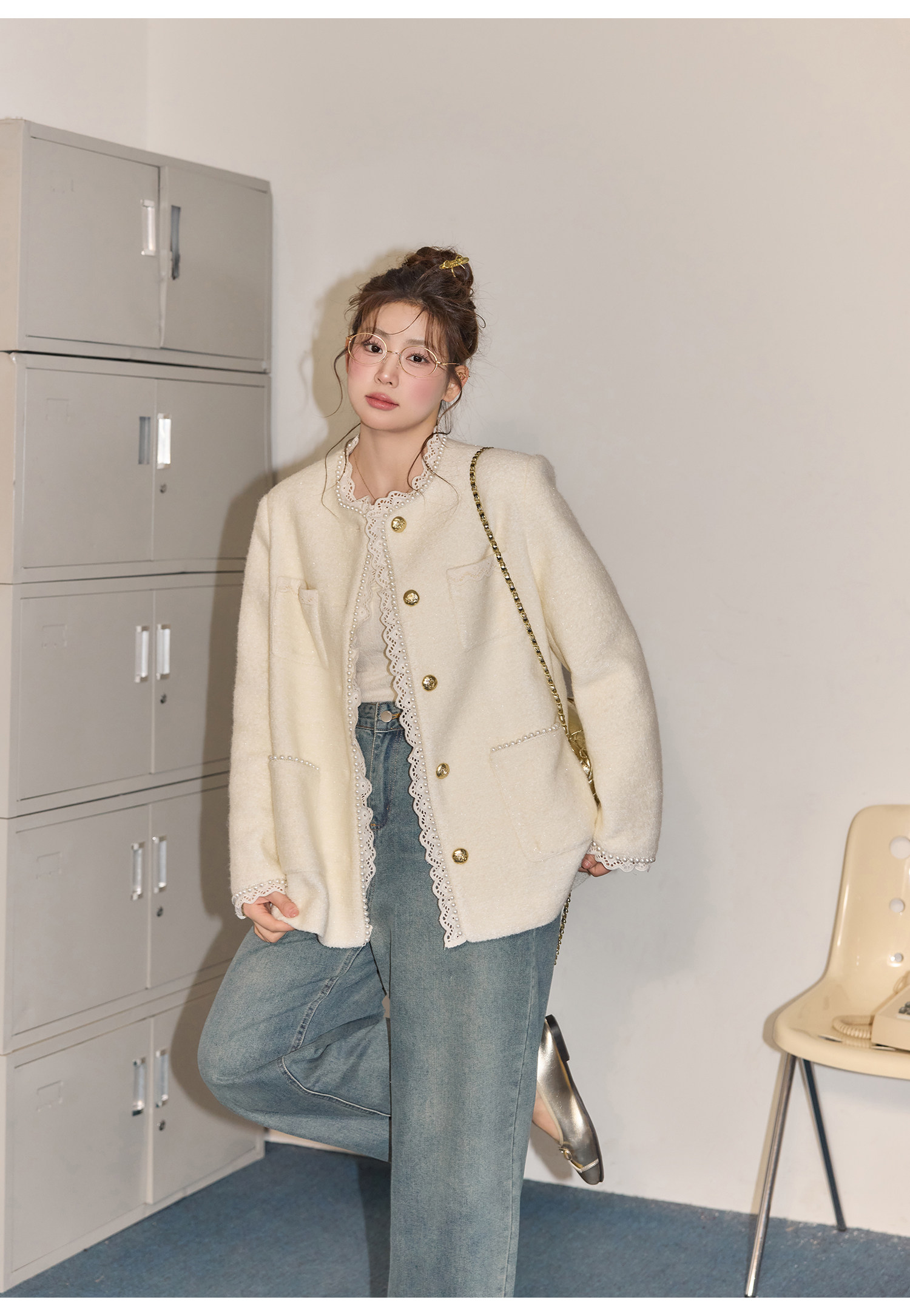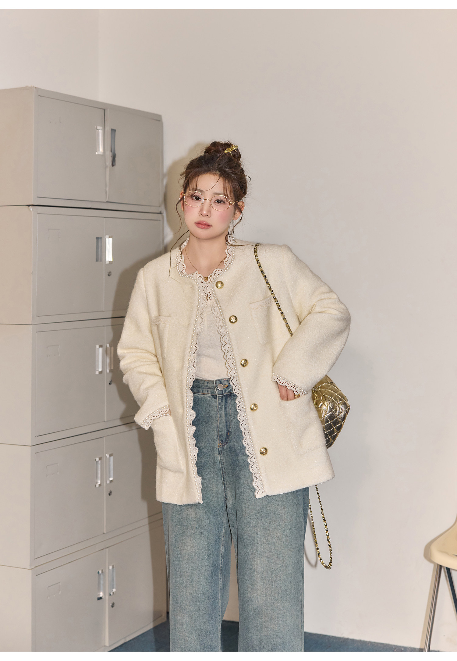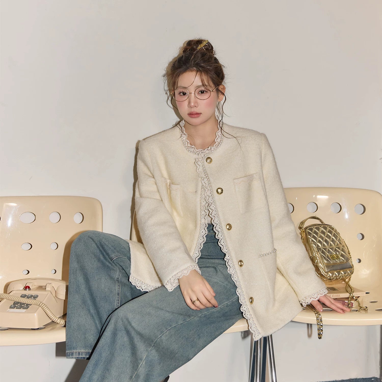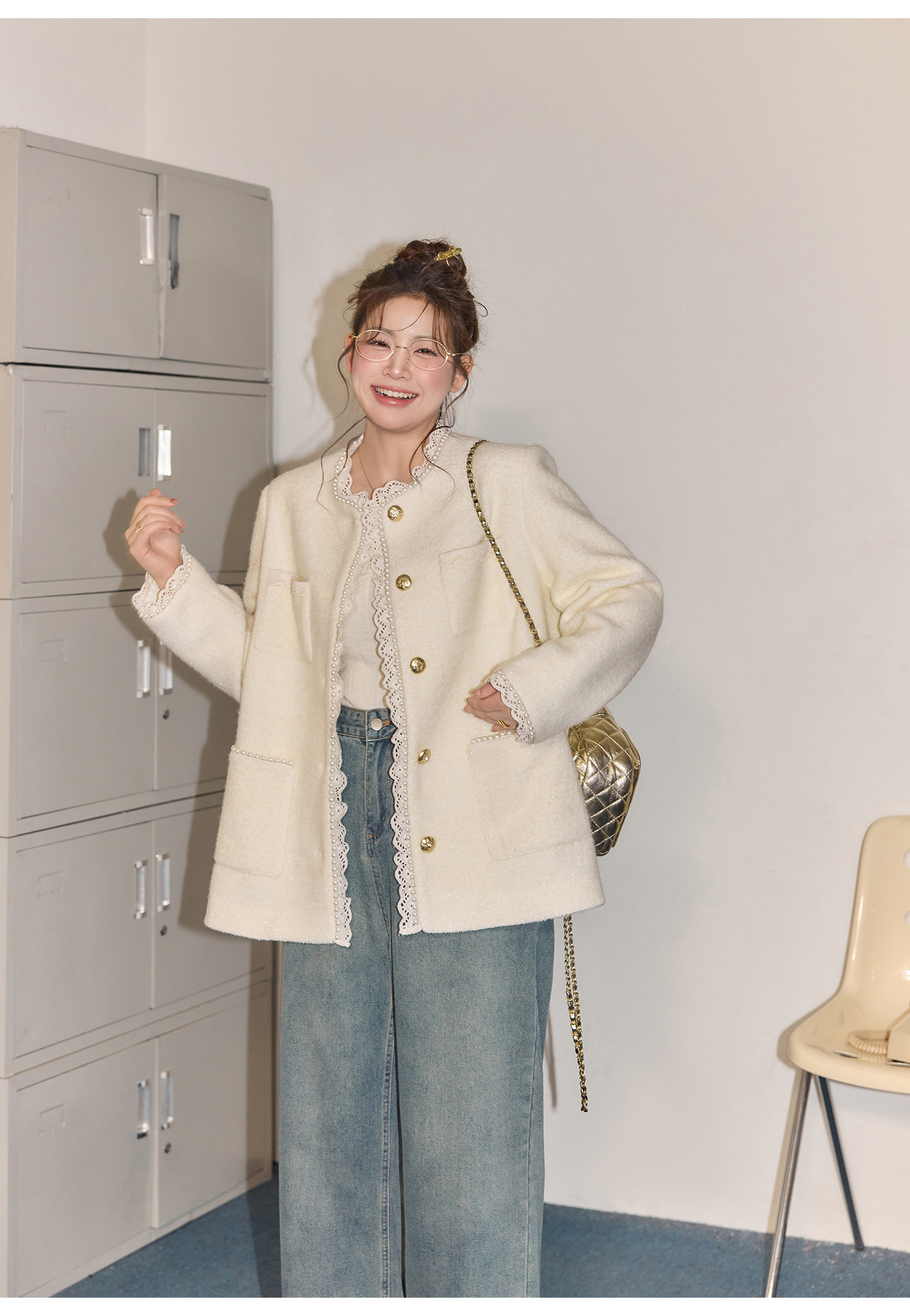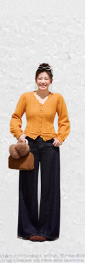 Zhang Daren Böyük Ölçülü Qadın Geyim Dəsti - Fransız Qəşəng Chanel Üslubunda Gödəkçə, Geniş Ayaqlı Şalvar və Cins Şalvar