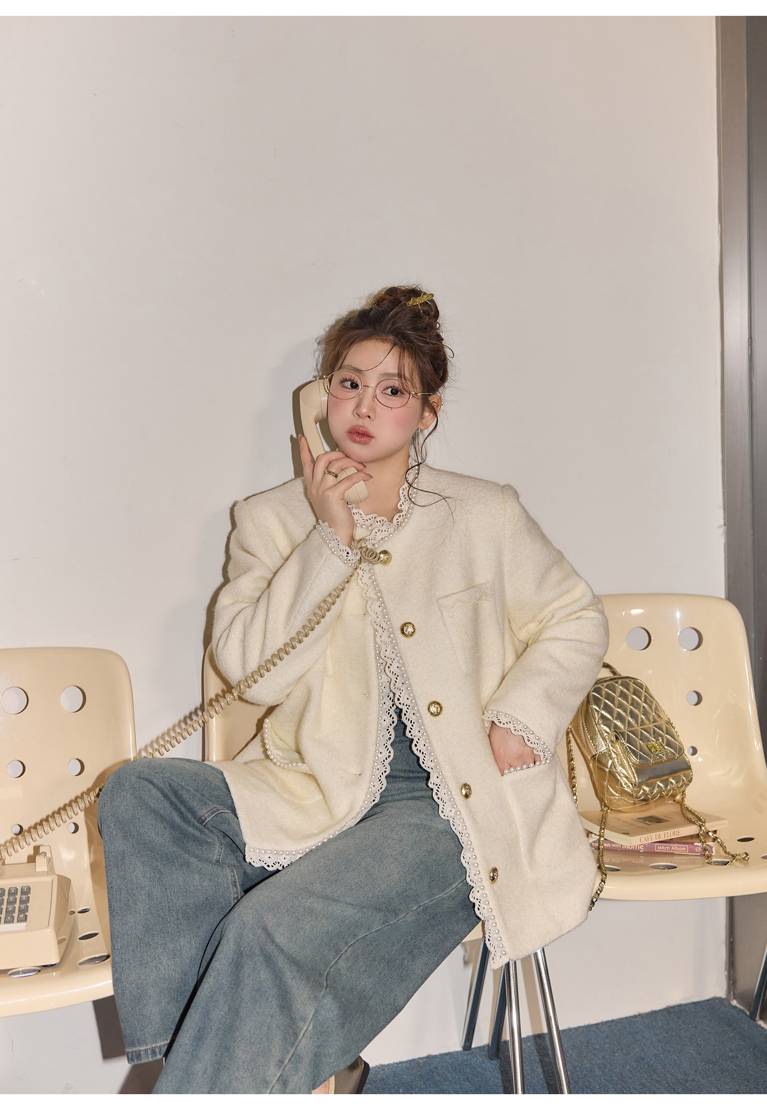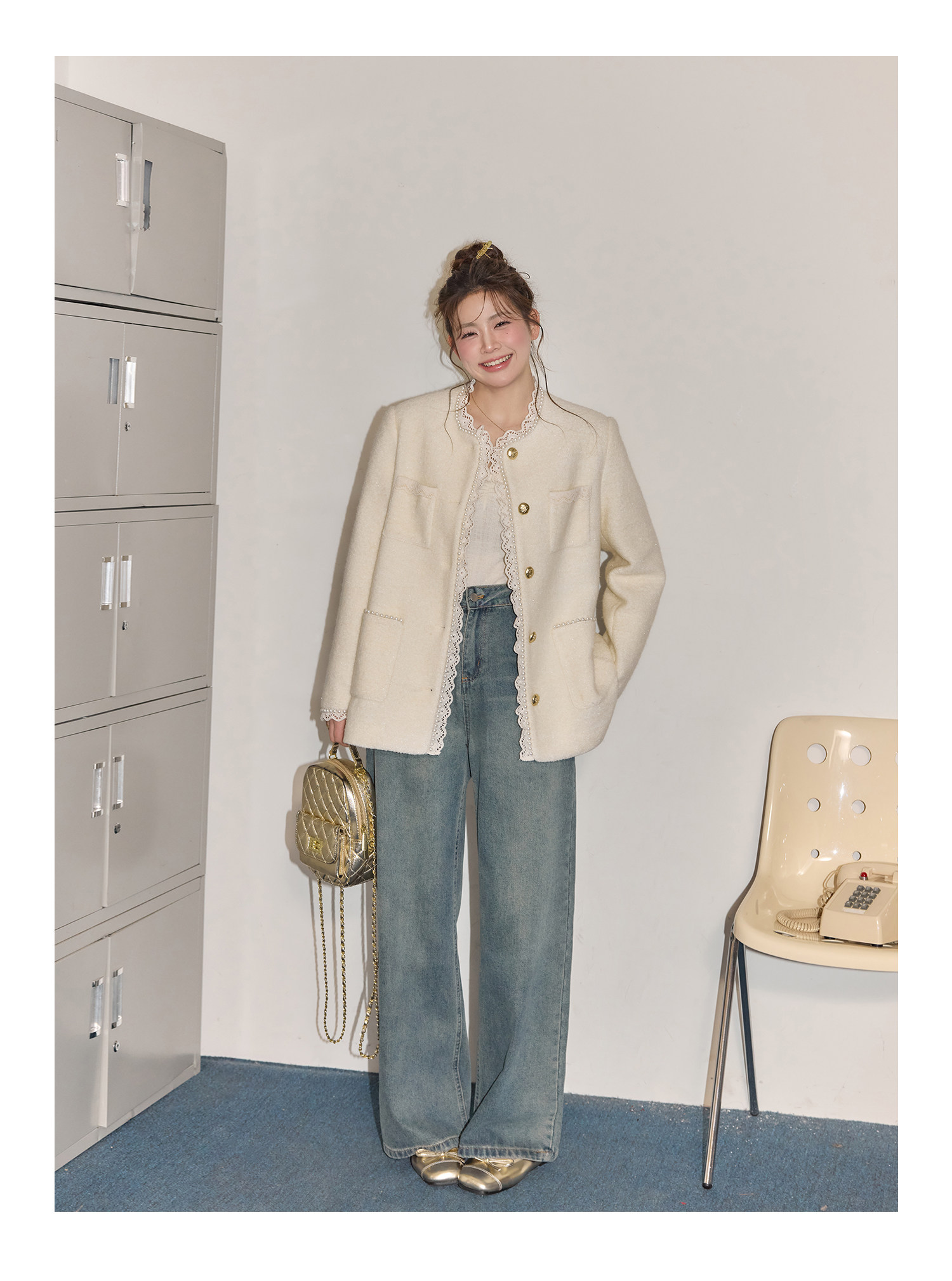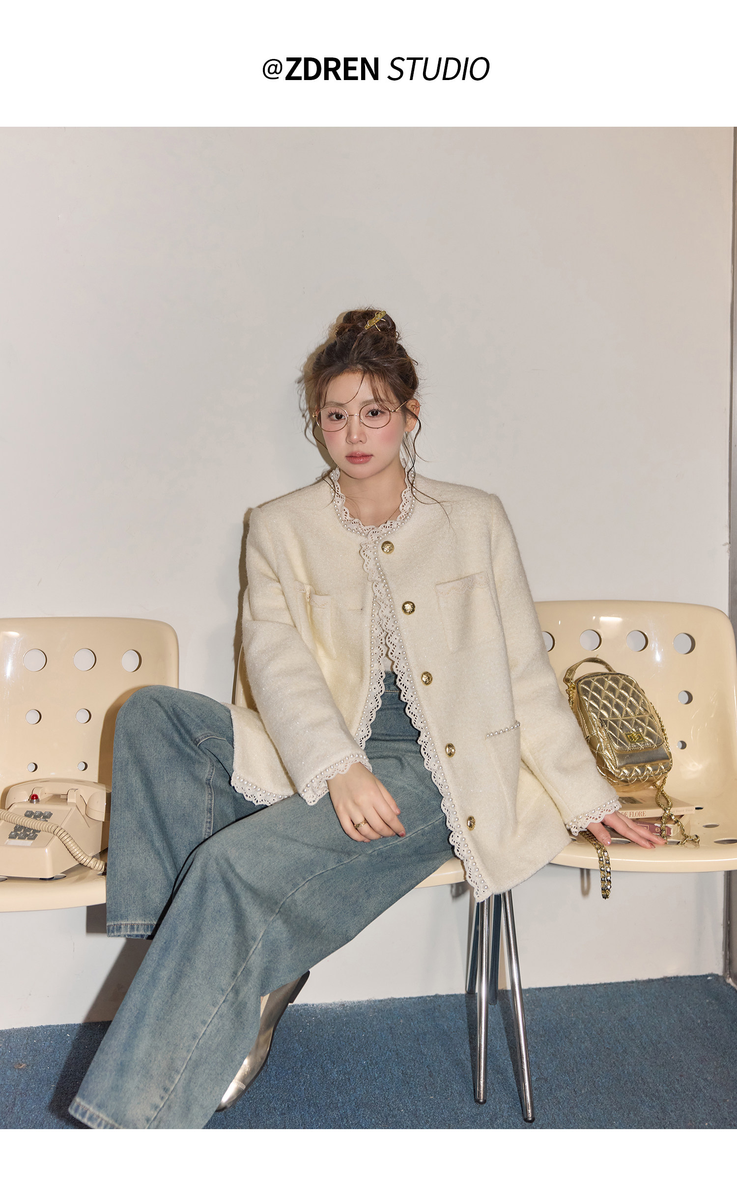 Zhang Daren Böyük Ölçülü Qadın Geyim Dəsti - Fransız Qəşəng Chanel Üslubunda Gödəkçə, Geniş Ayaqlı Şalvar və Cins Şalvar