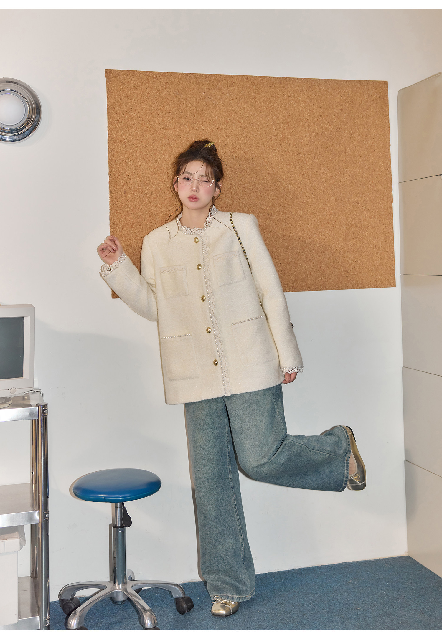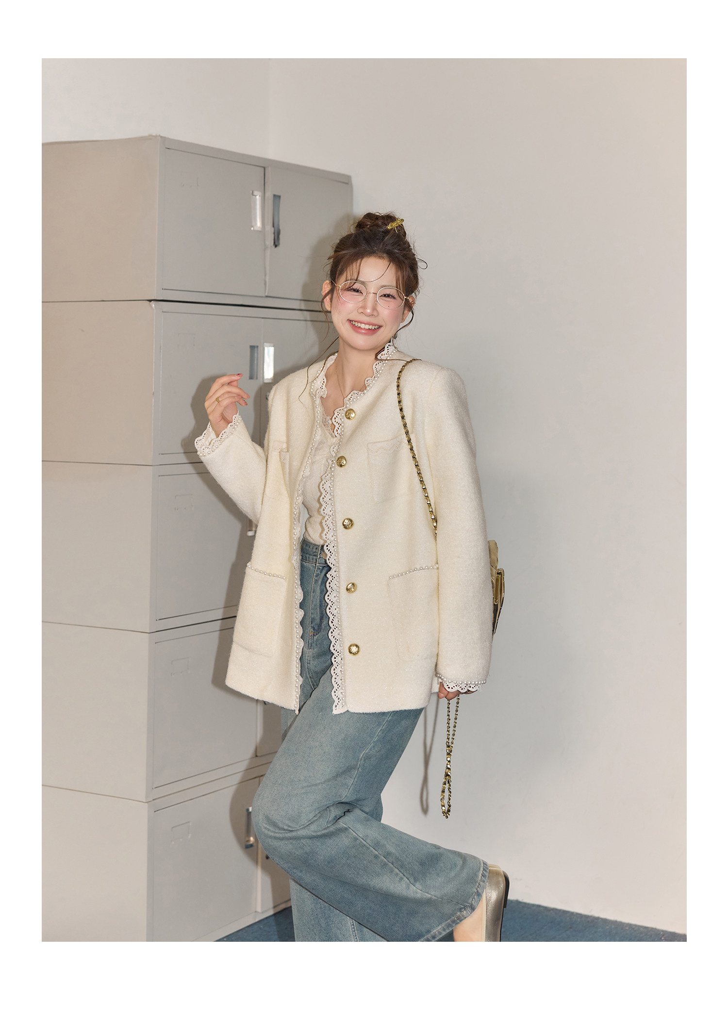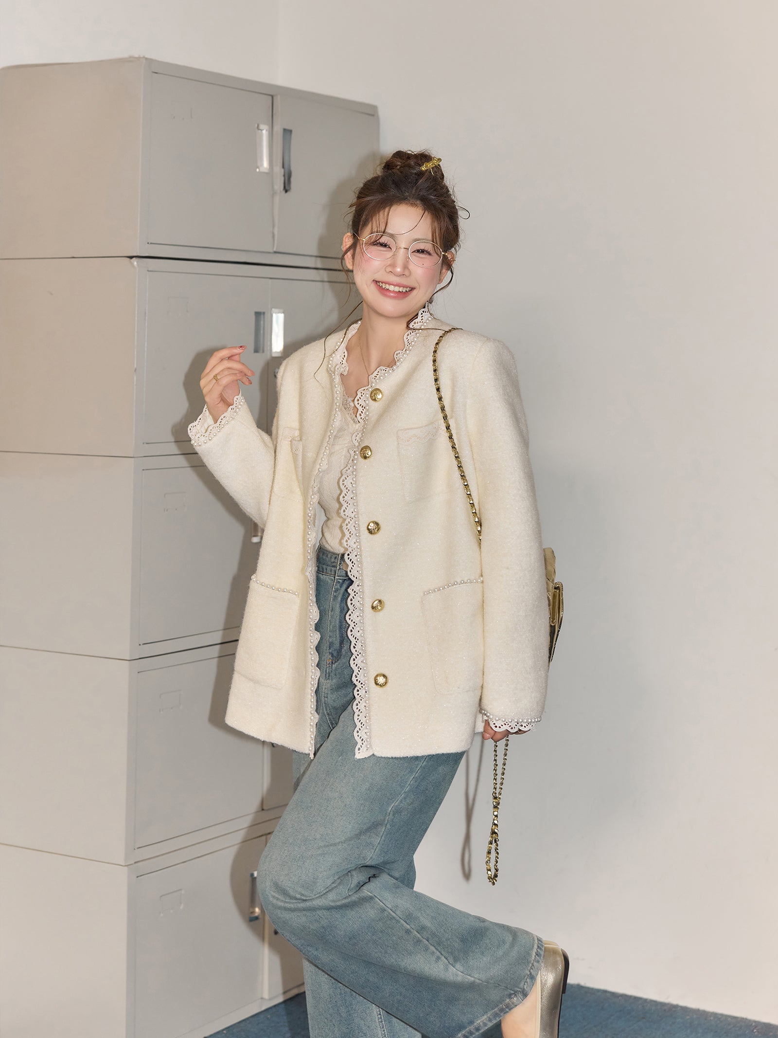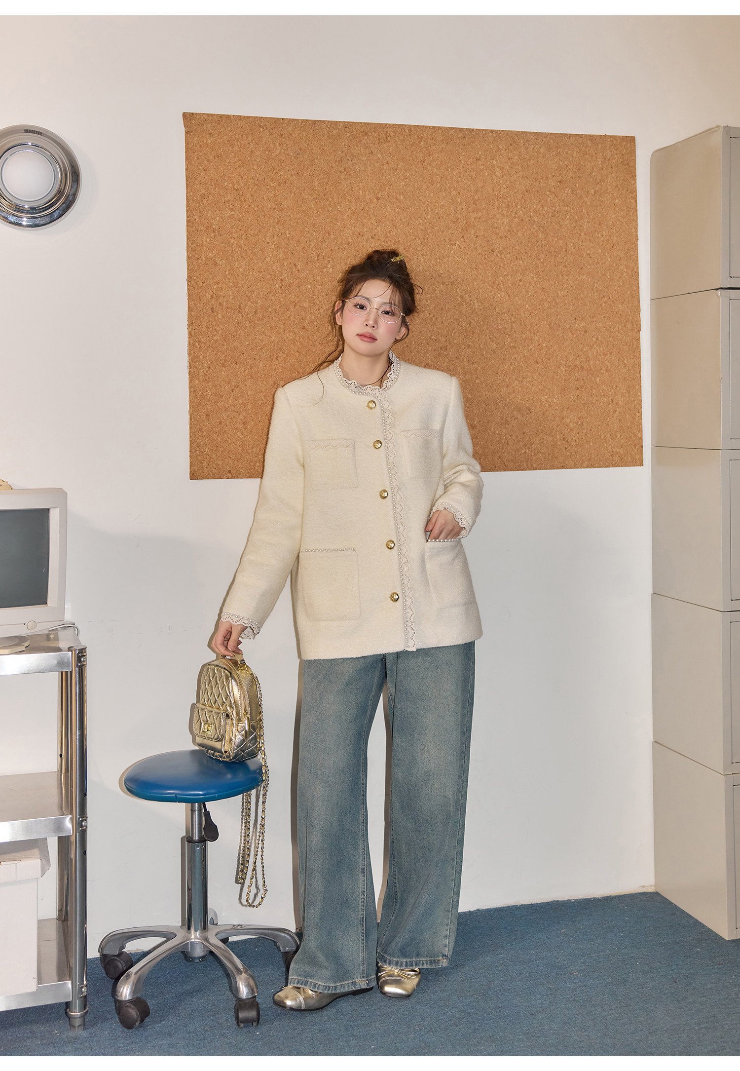 Zhang Daren Böyük Ölçülü Qadın Geyim Dəsti - Fransız Qəşəng Chanel Üslubunda Gödəkçə, Geniş Ayaqlı Şalvar və Cins Şalvar