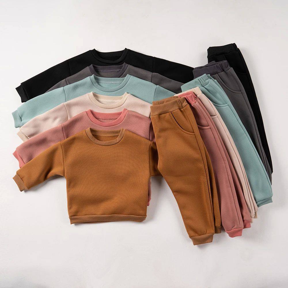2 ədəd Uşaq Geyim Dəstləri Bərk Qalınlaşdırıcı Yun İsti Sweatshirt