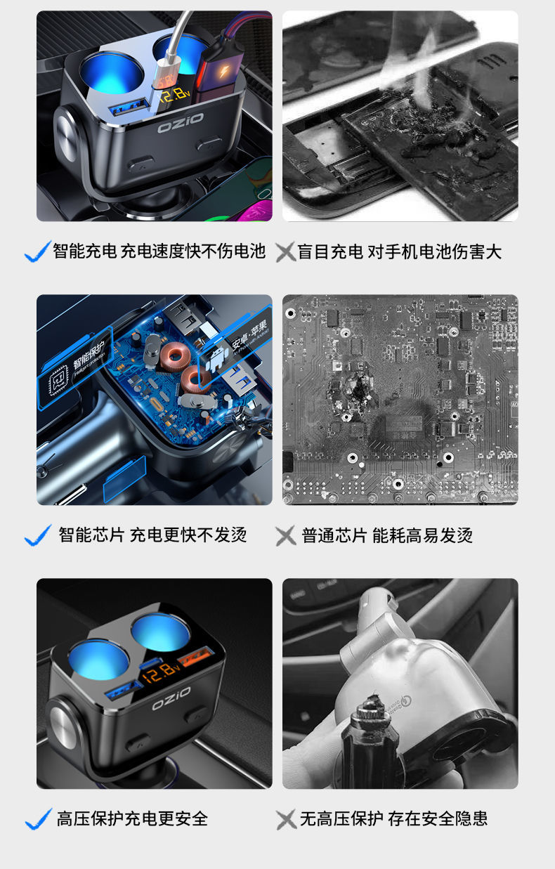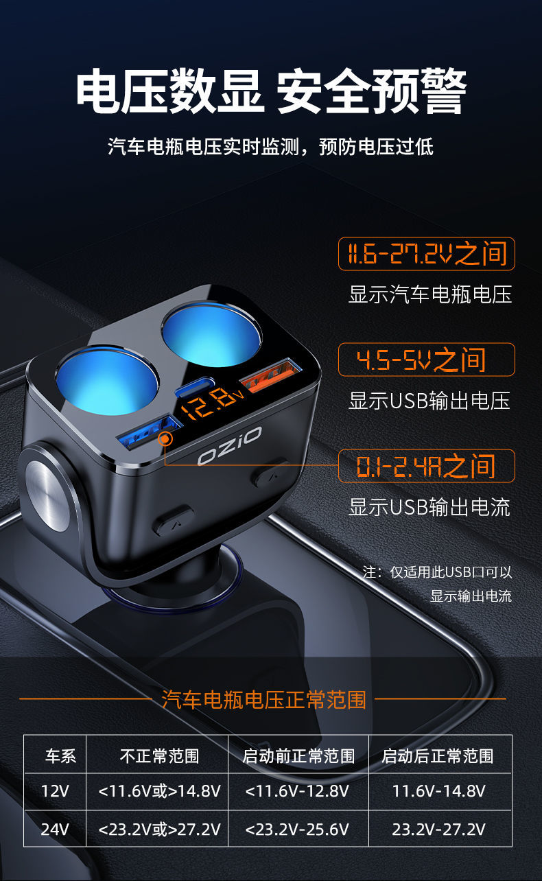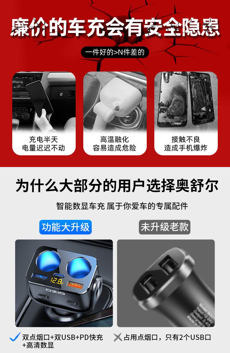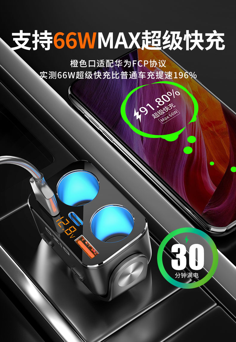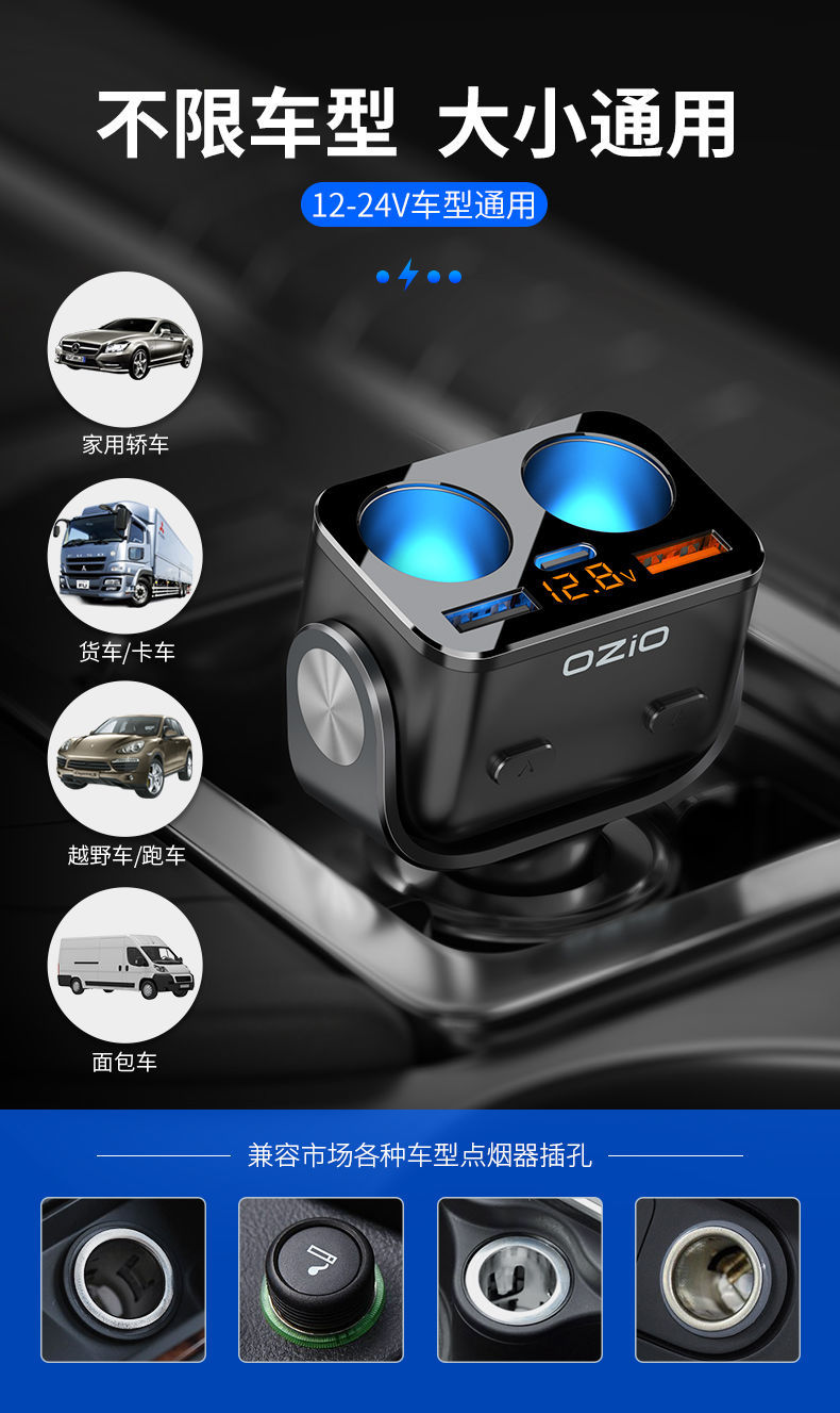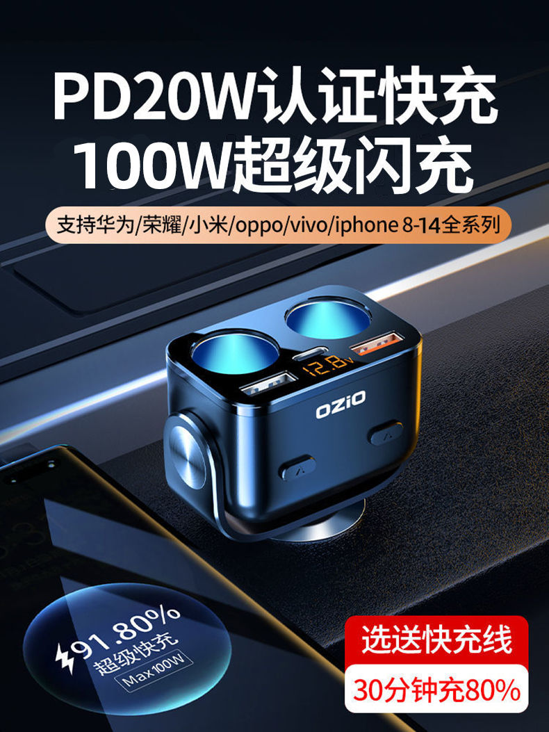 200W Avtomobil Şarj Cihazı Oshur Avtomobil Çoxfunksiyalı Bir İki Siqaret Çakmağı Dönüştürücü Mobil Telefon Super Fleş Doldurucu