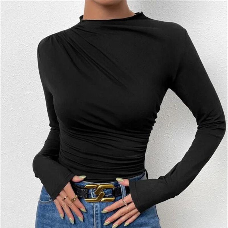 2023 Rəngli İncə Uyğun Baza Laylı Çoxfunksiyalı Qatlı Uzun Qollu Qadın Köynəyi