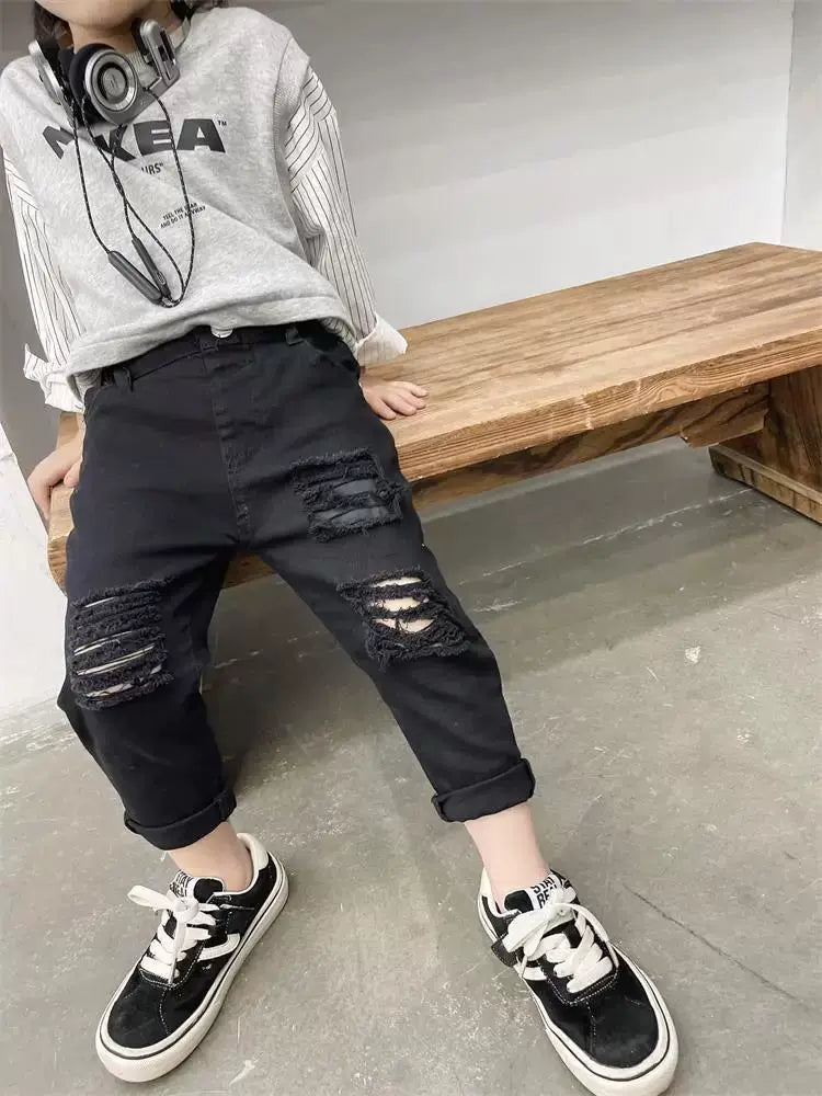 2023 Uşaq Oğlanlar Cins Şalvarları Moda Geyimləri Gündəlik Şalvar Denim Clot