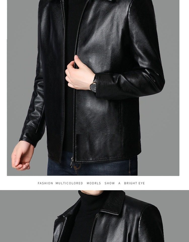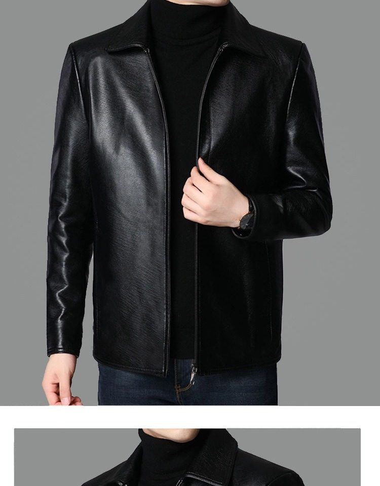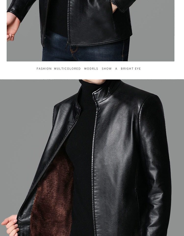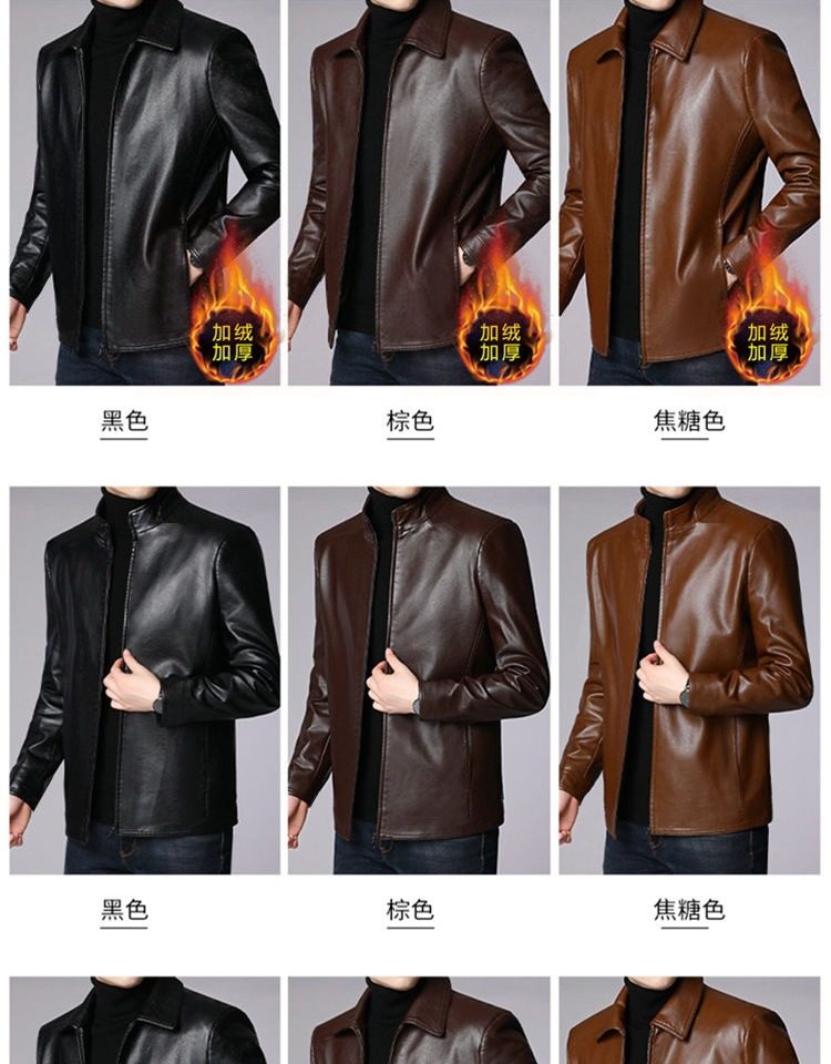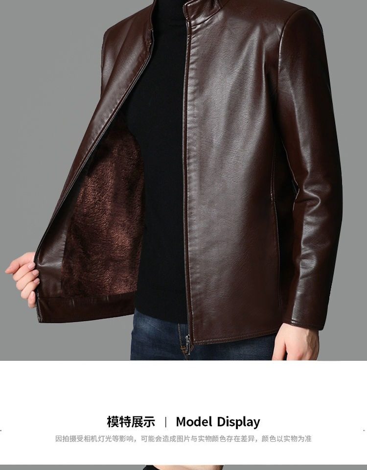 Qəhvəyi dəri gödəkçə, yaxalıqla (qalın flis astar + sərbəst xəz yaxalıq) / 175 sm/88 sm üçün tövsiyə olunan çəki A: 120-135 kq