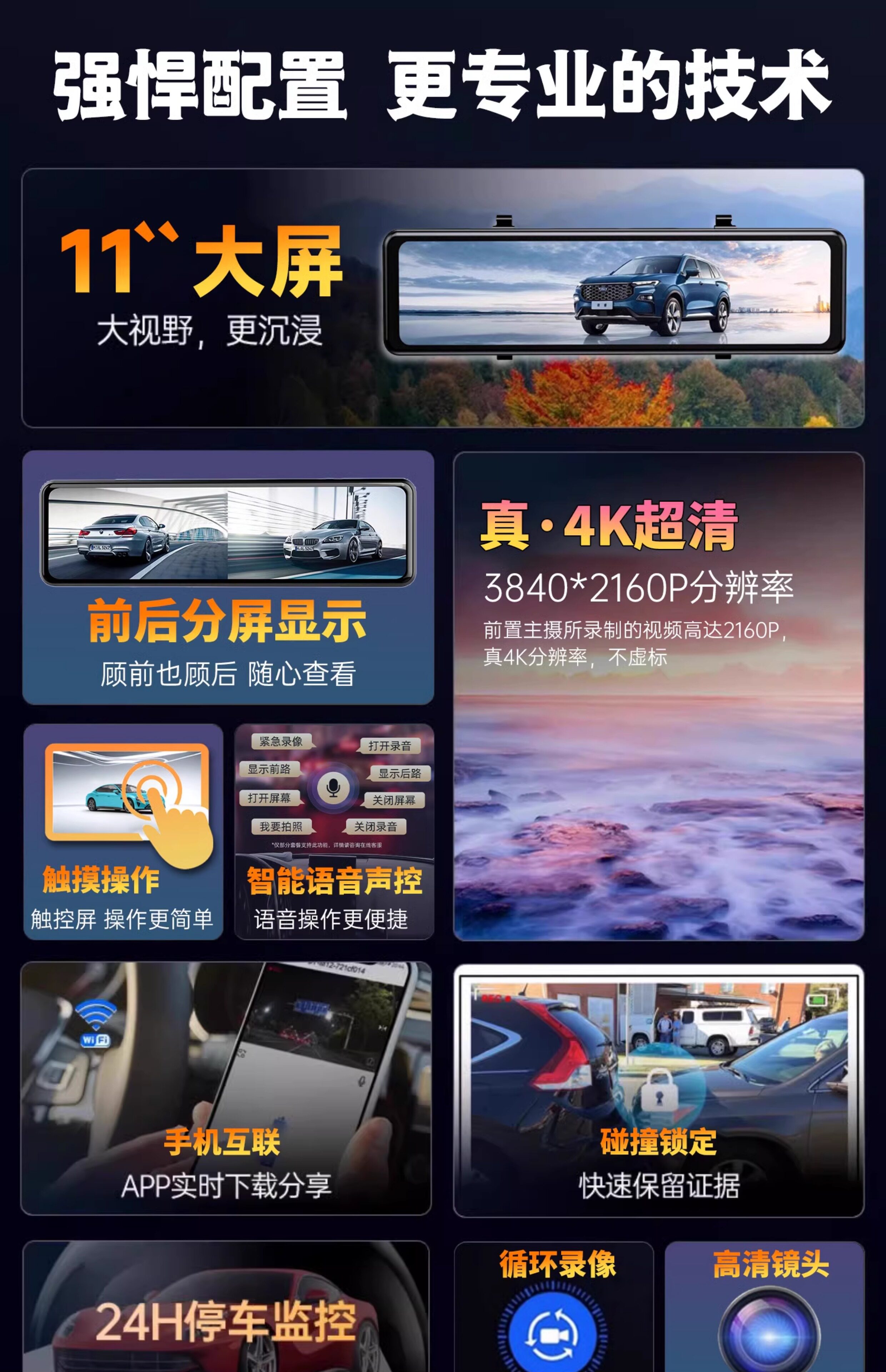 | 2025 Geely Star Wish Panda Mini Avtomobil DVR Xüsusi Yayım Mediası Arxa Görünüş Güzgü 4K Yüksək Çözünürlüklü Gecə Görünüşü 24 Saat Ekranı