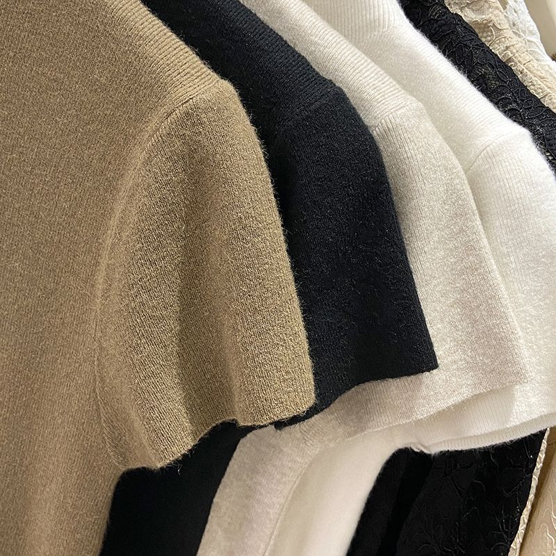 2025 Payız Yeni Gəlişi Yarım Hündür Yaxalı Yumşaq Qısa Qollu T-Shirt Trikotaj Qadınlar üçün İncə Uyğun Dayanacaqlı Yaxalıqlı Üst Qat