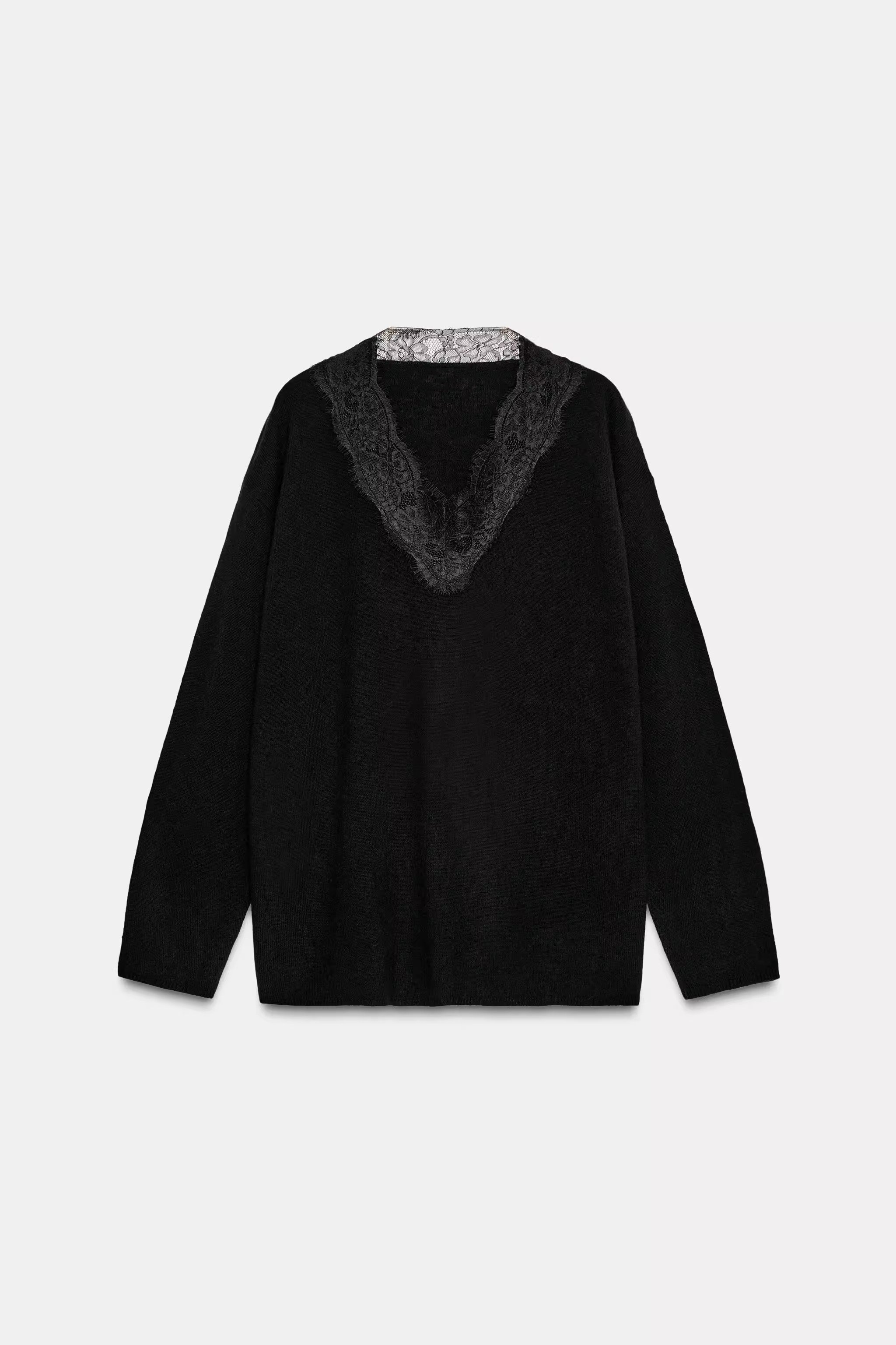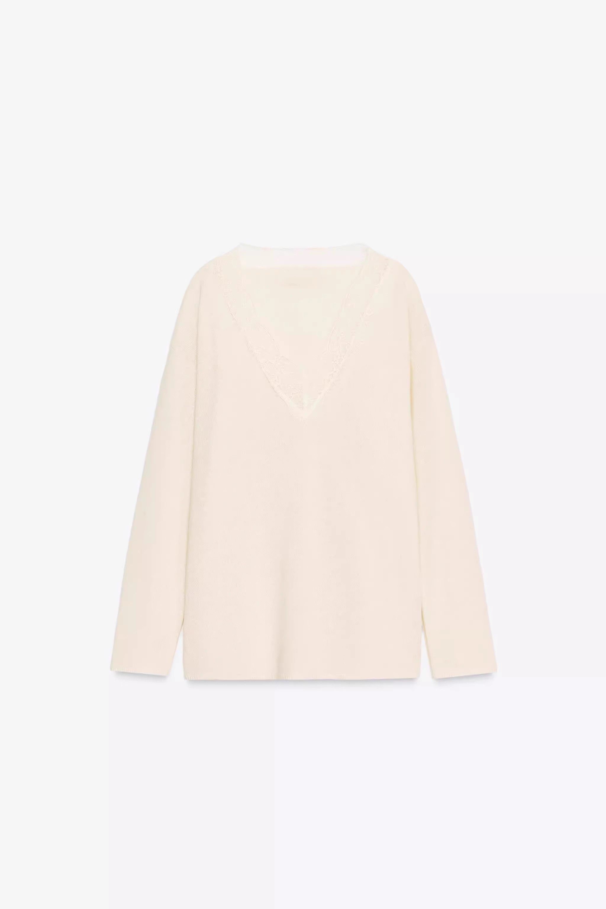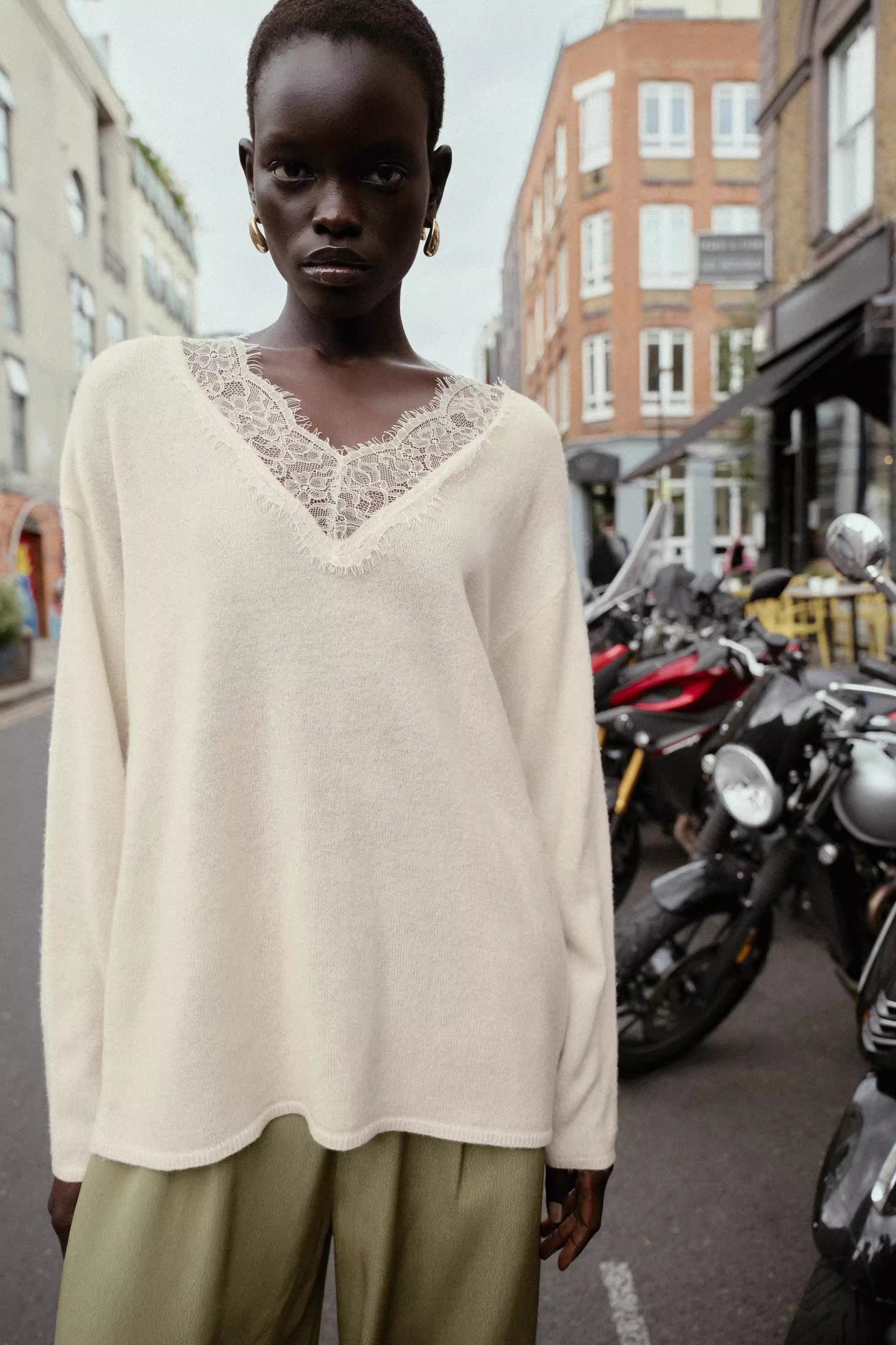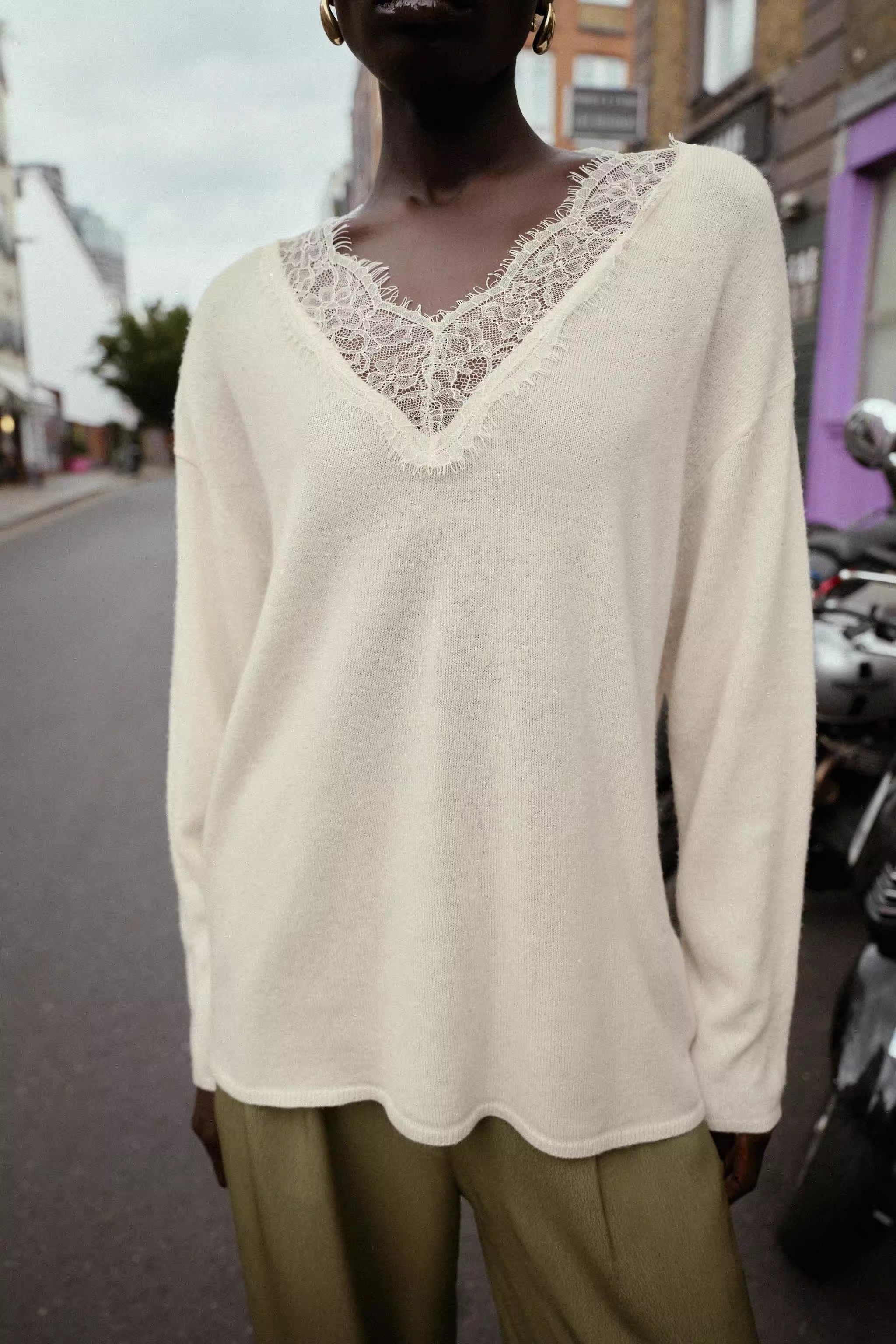 2025 Qış Yeni Gəliş Qadın Gündəlik Qarışıq Boş Sviter Uzun Qollu V-Yaxalı Krujeva ilə Bükülmüş Trikotaj Geyim 5755125