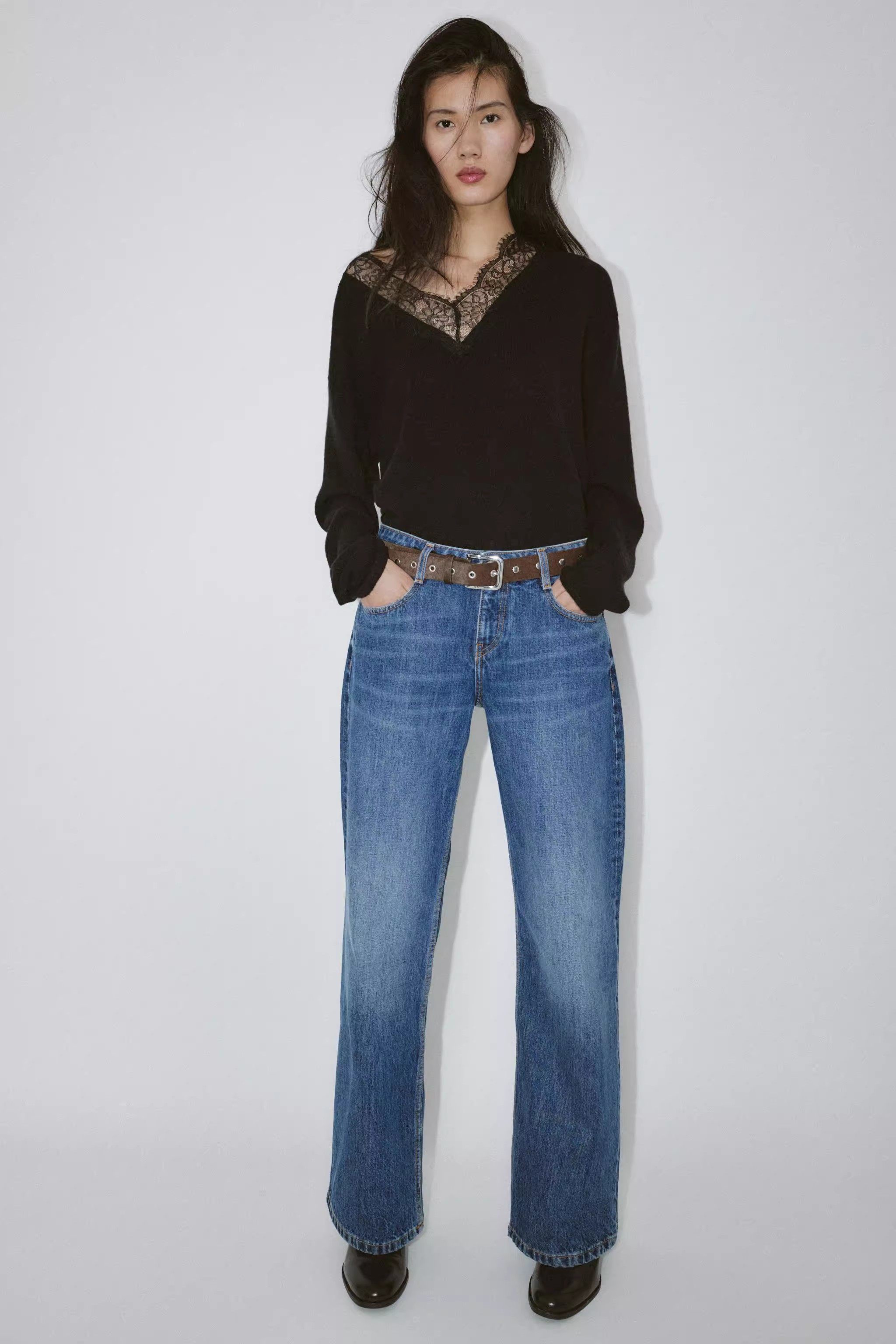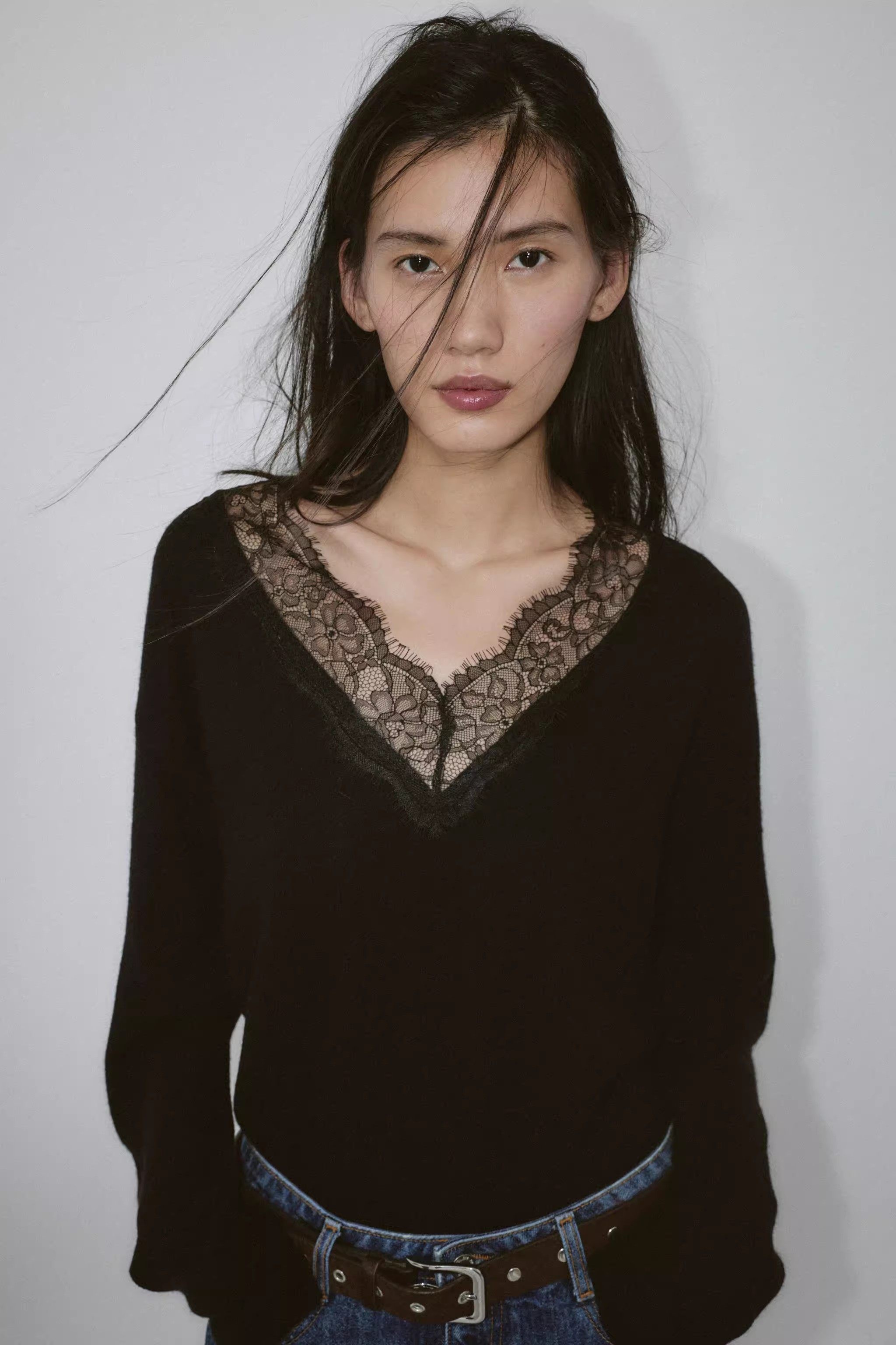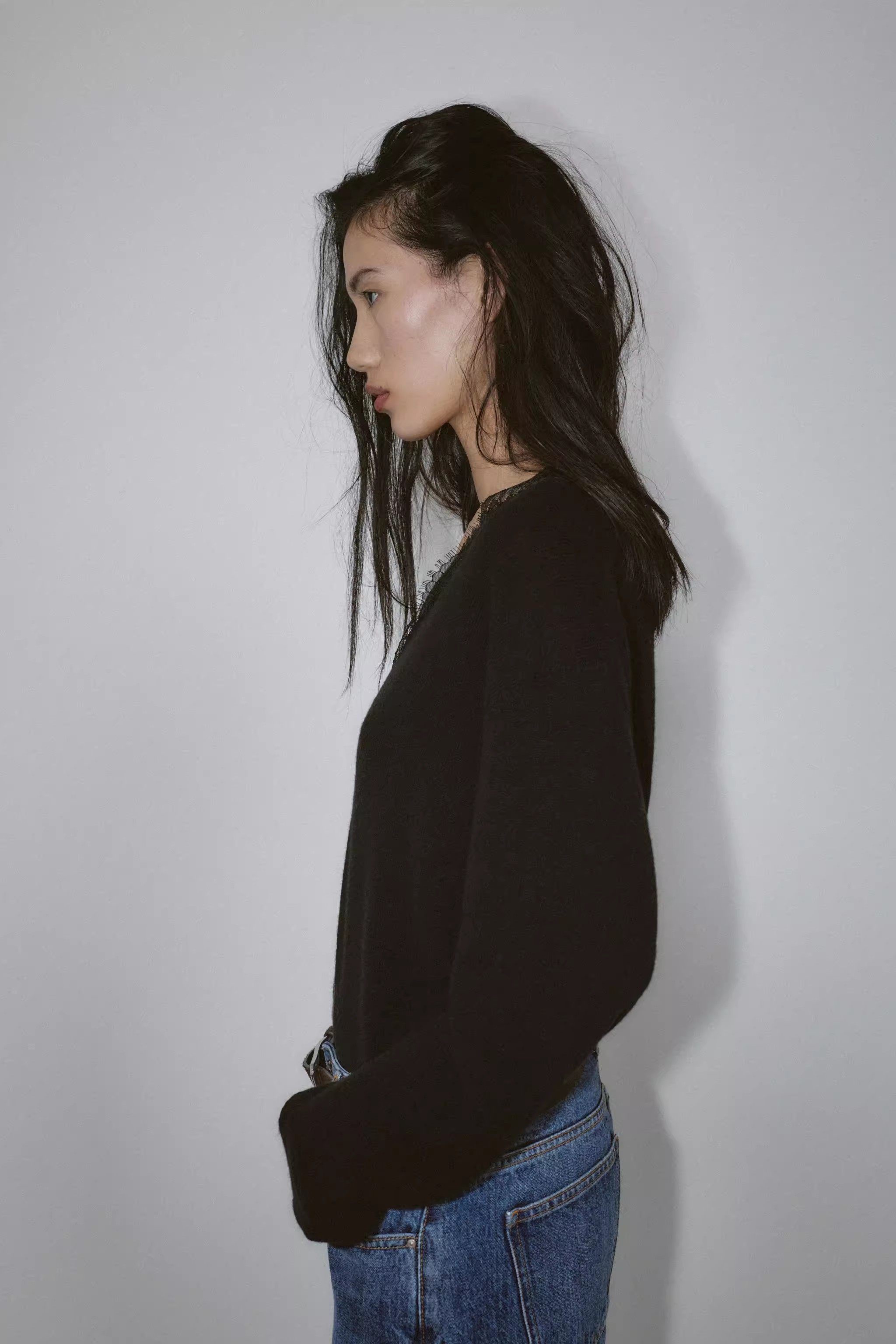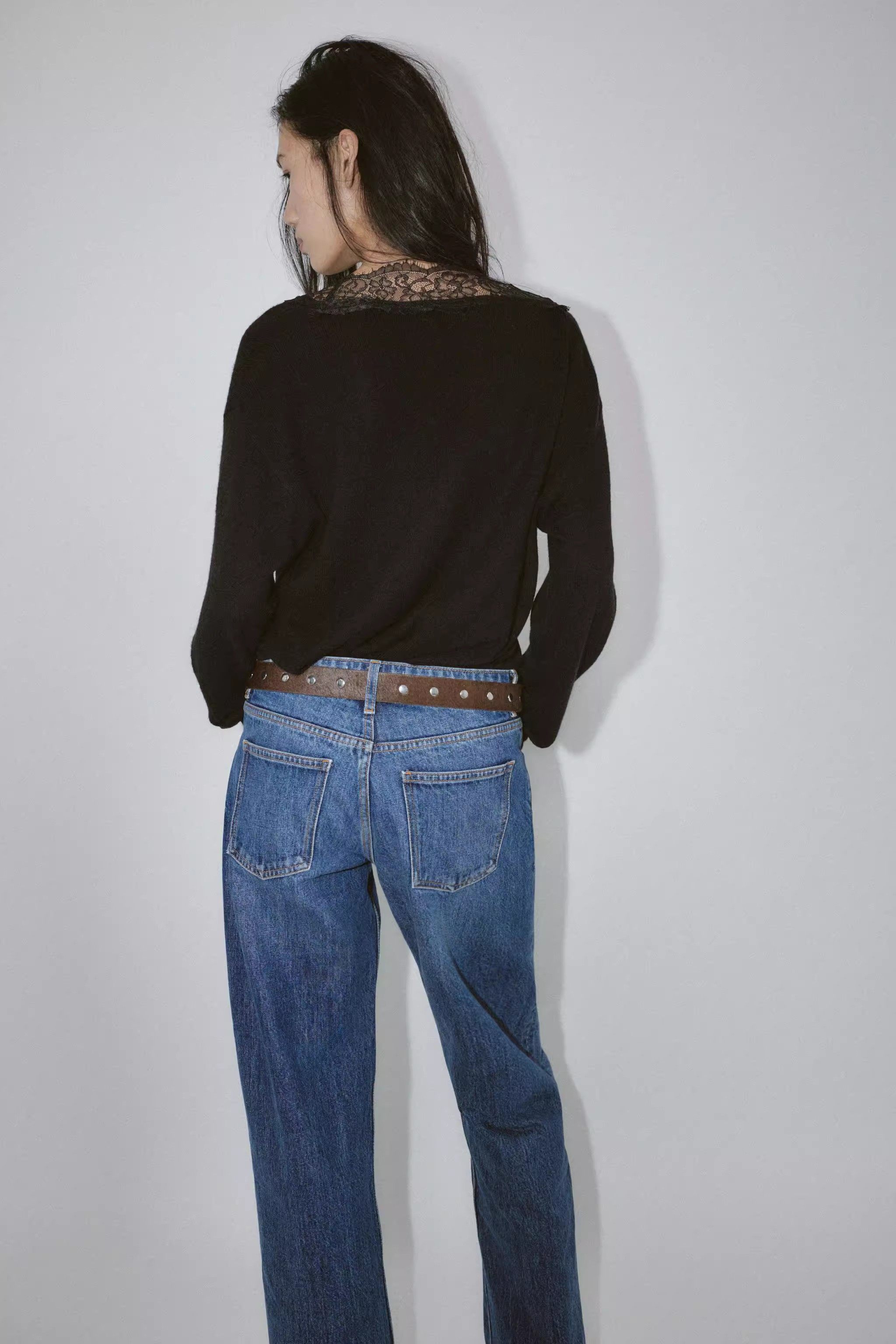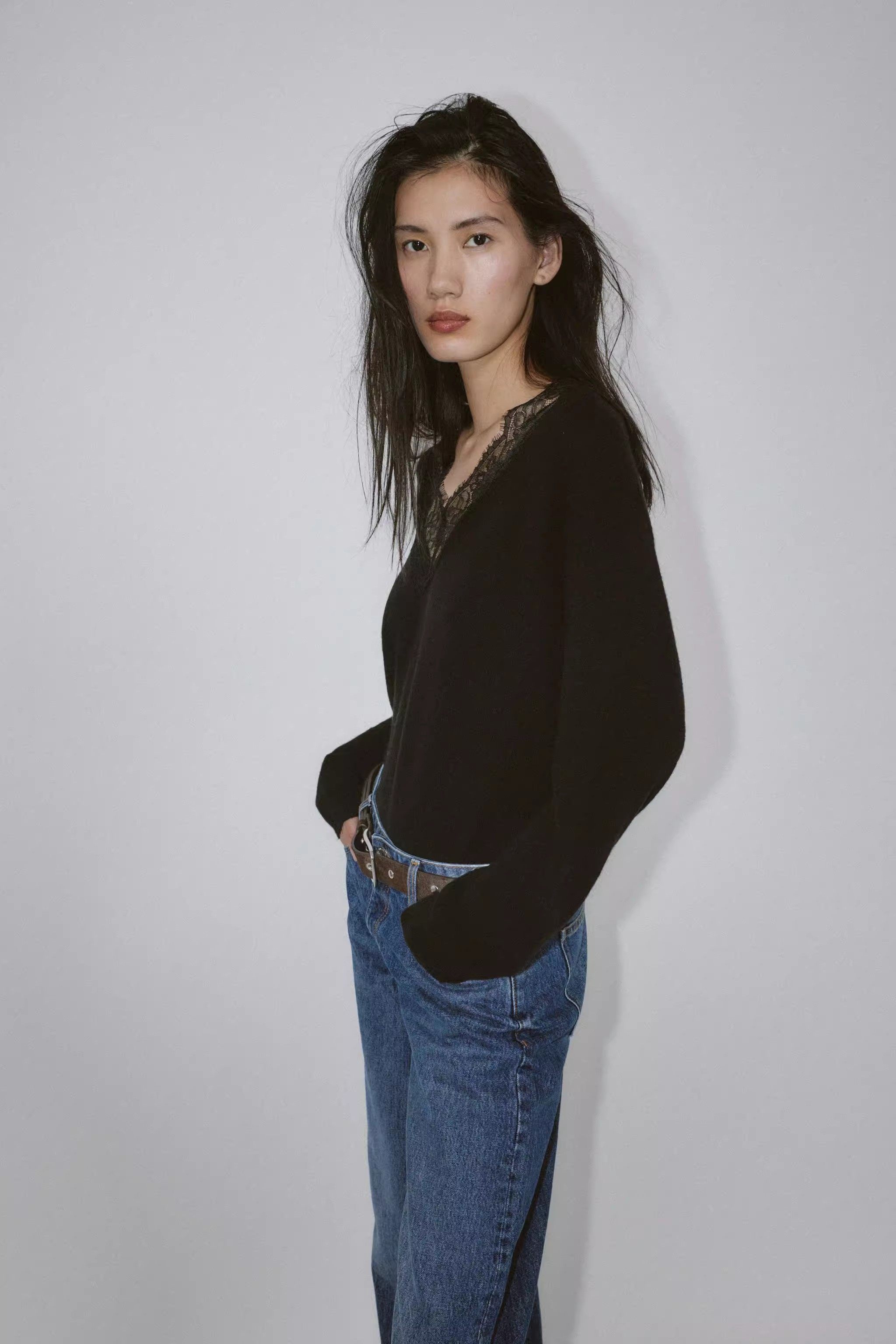 2025 Qış Yeni Gəliş Qadın Gündəlik Qarışıq Boş Sviter Uzun Qollu V-Yaxalı Krujeva ilə Bükülmüş Trikotaj Geyim 5755125