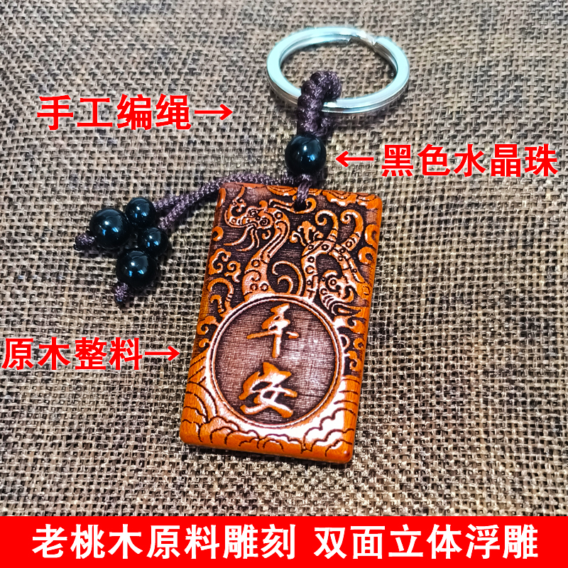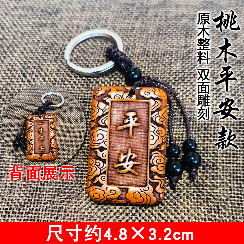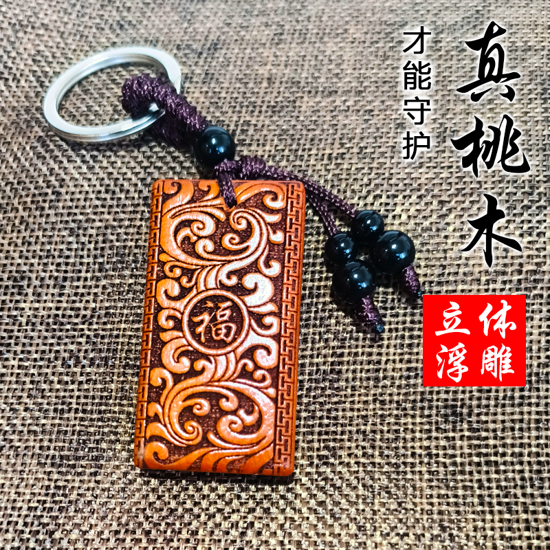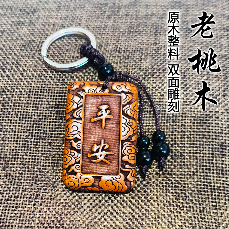 Təbii Qədim Şaftalı Ağacı Təhlükəsizlik Kartı Açarlığı [Dostluq Modeli]