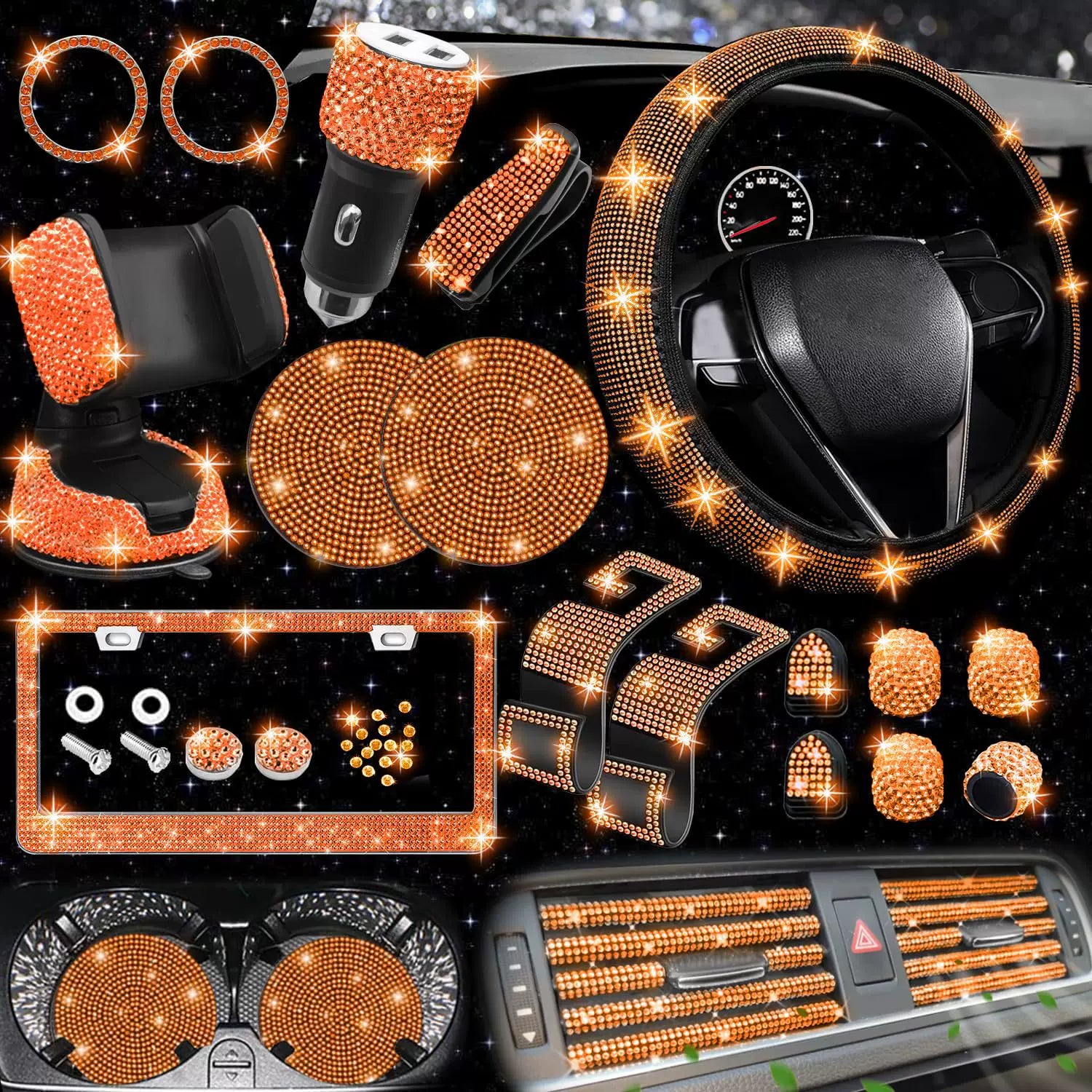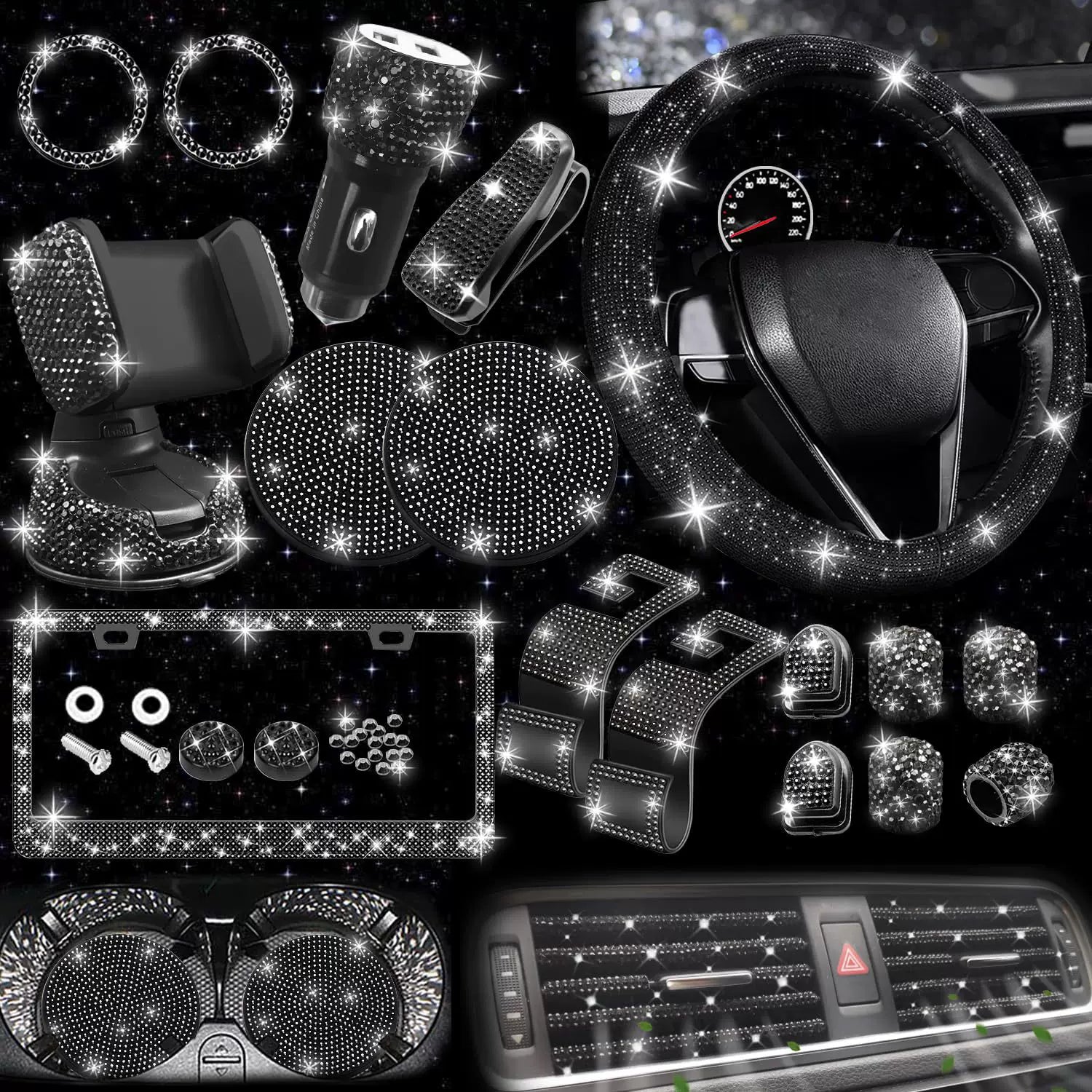 27 ədəd Bling Avtomobil Aksesuarları Dəsti, Sükan Çarxı Qapağı Dəsti