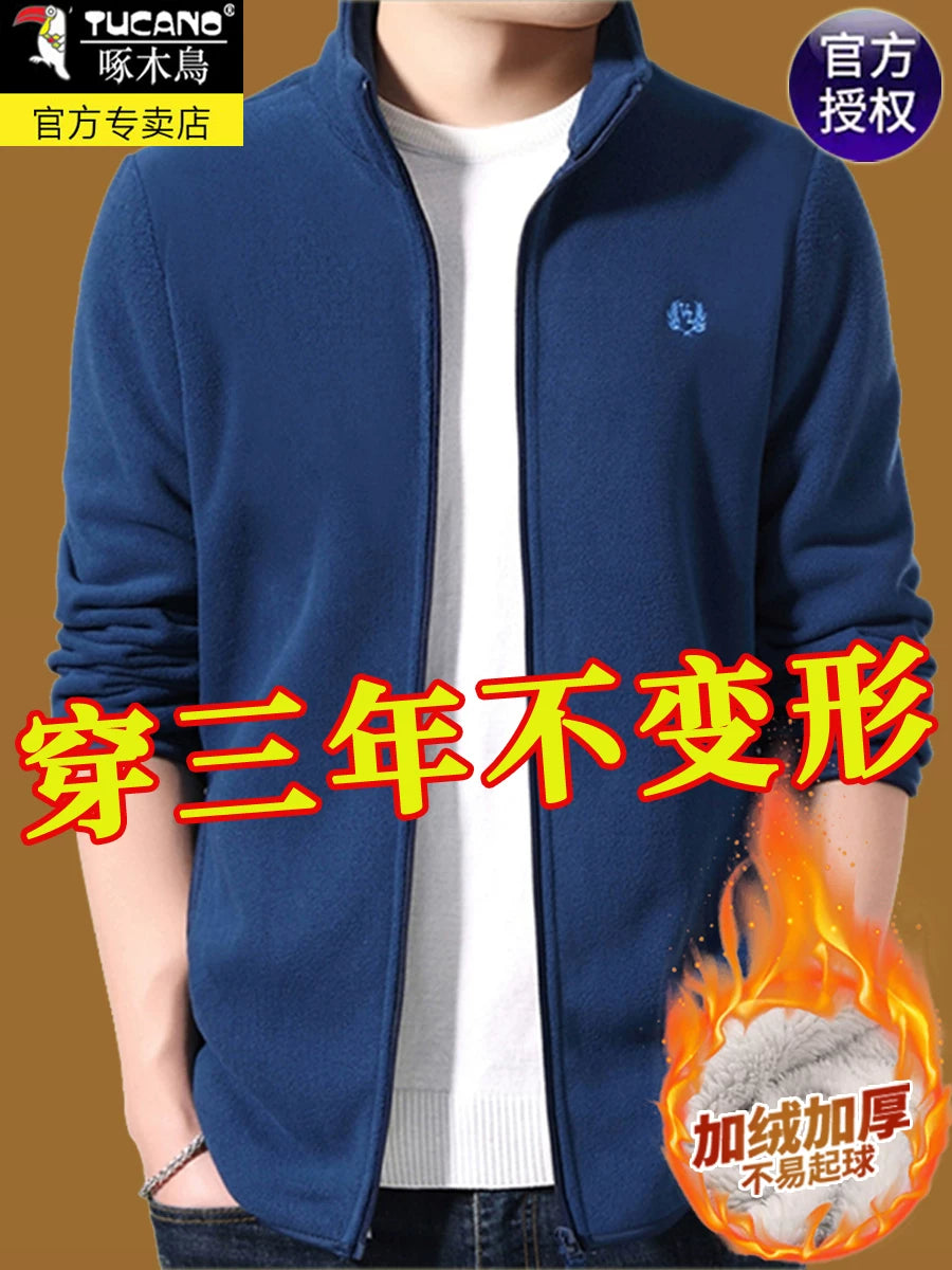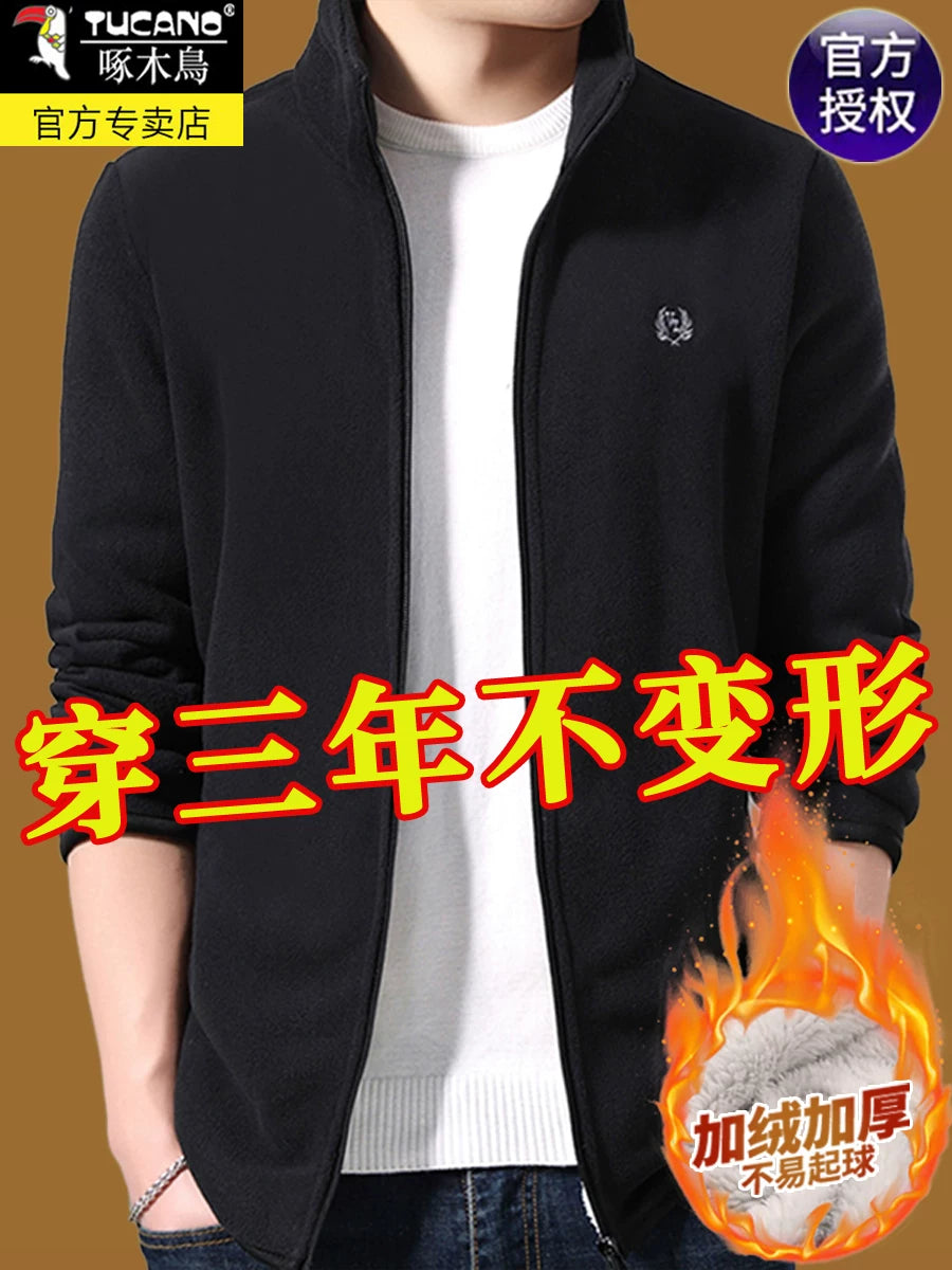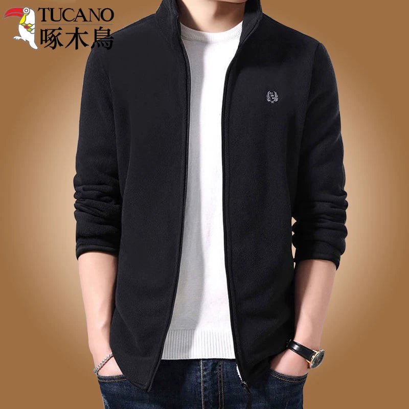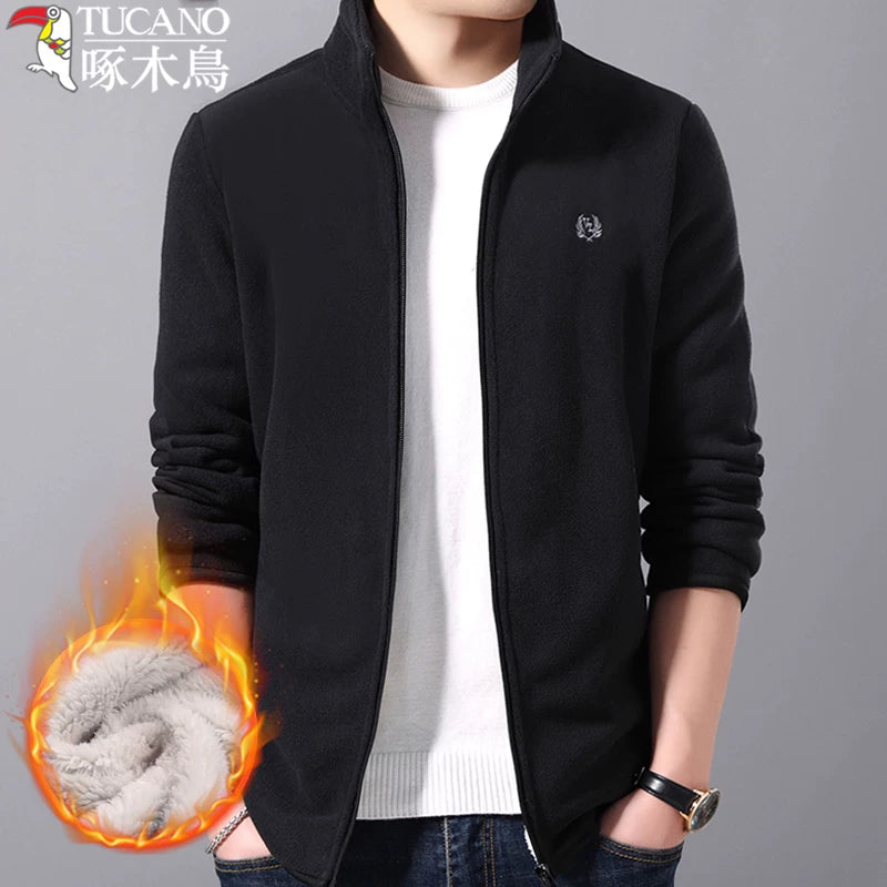 Ağacdələn kişi üçün flis gödəkçə, payız və qış üslubunda, dayaq yaxalı gödəkçə, flis astarlı və qalınlaşdırılmış flis sviter, kişi üst geyimi hırka
