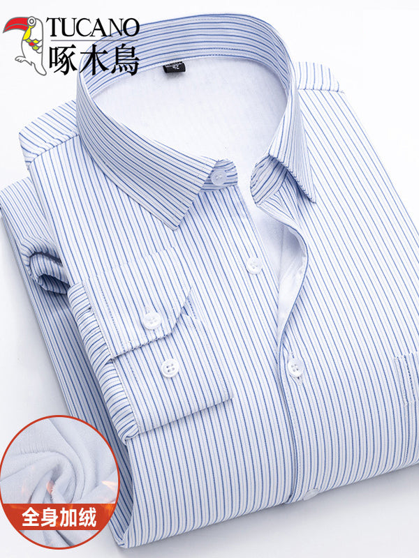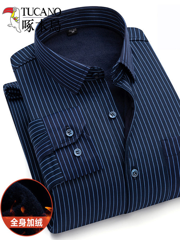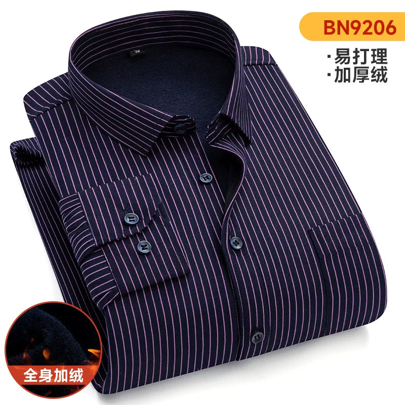 Ağacdələn Qış Kişi İsti Köynəyi, Yun astarlı, Qalın, Orta Yaşlı, Uzunqol Zolaqlı İsti Köynək, Ata Geyimi