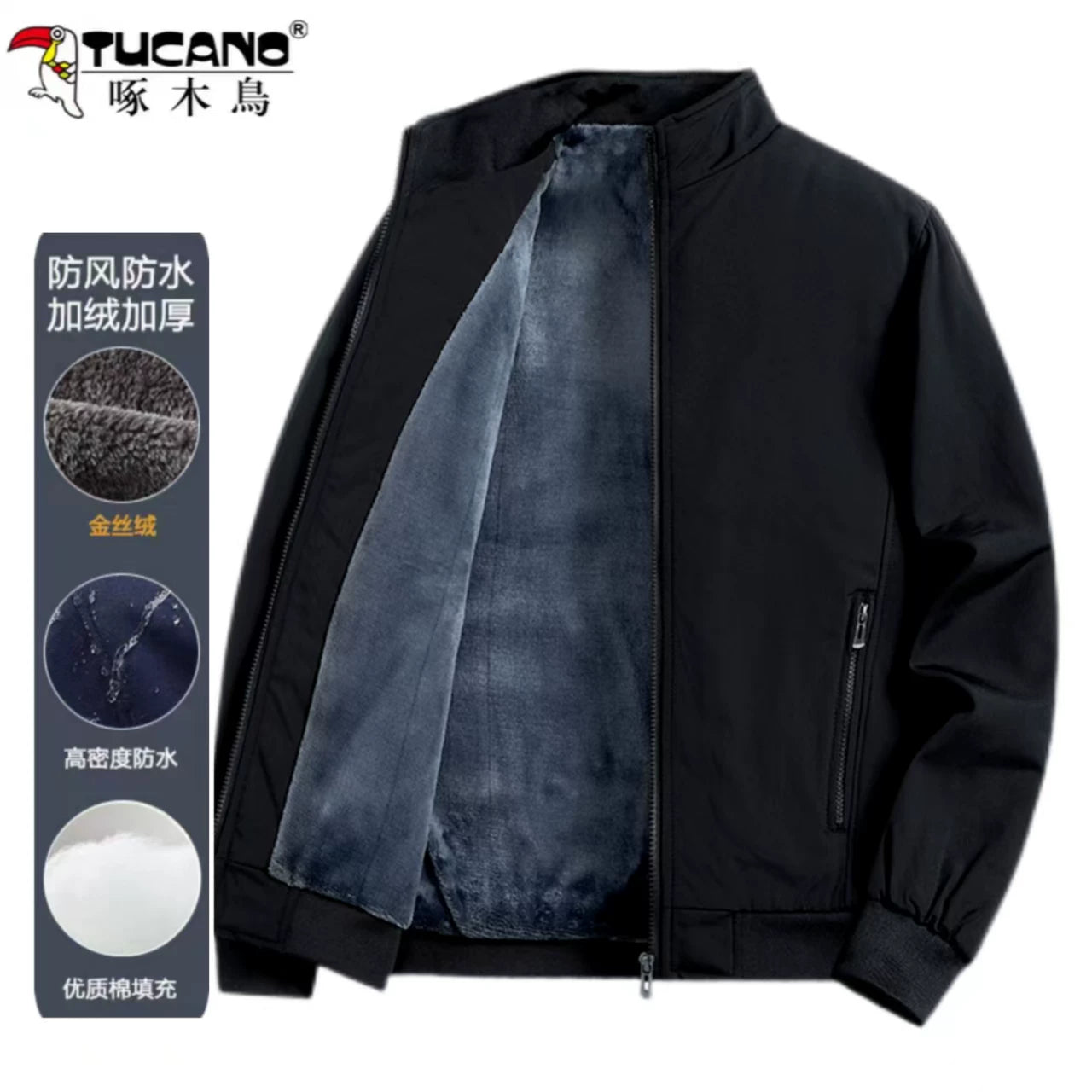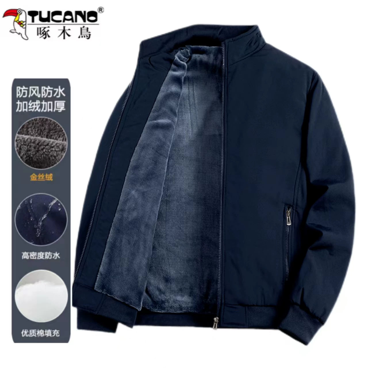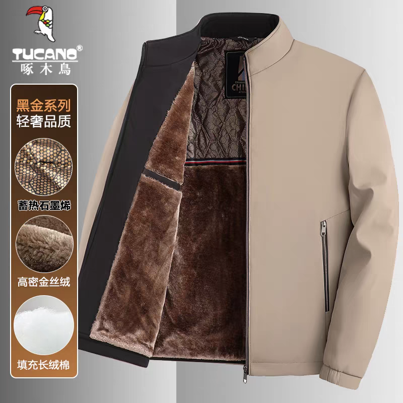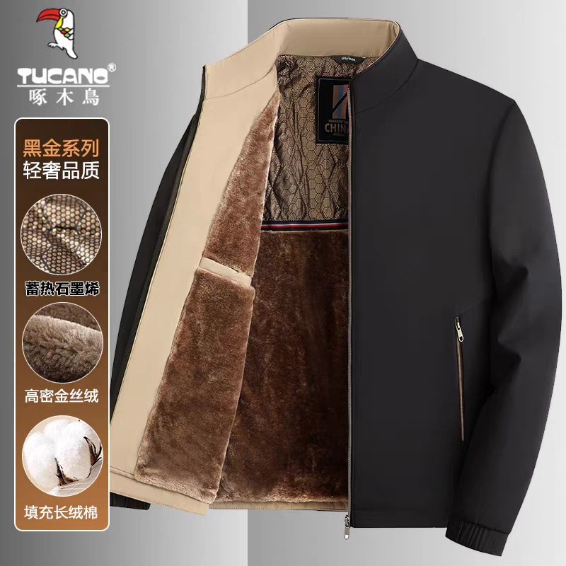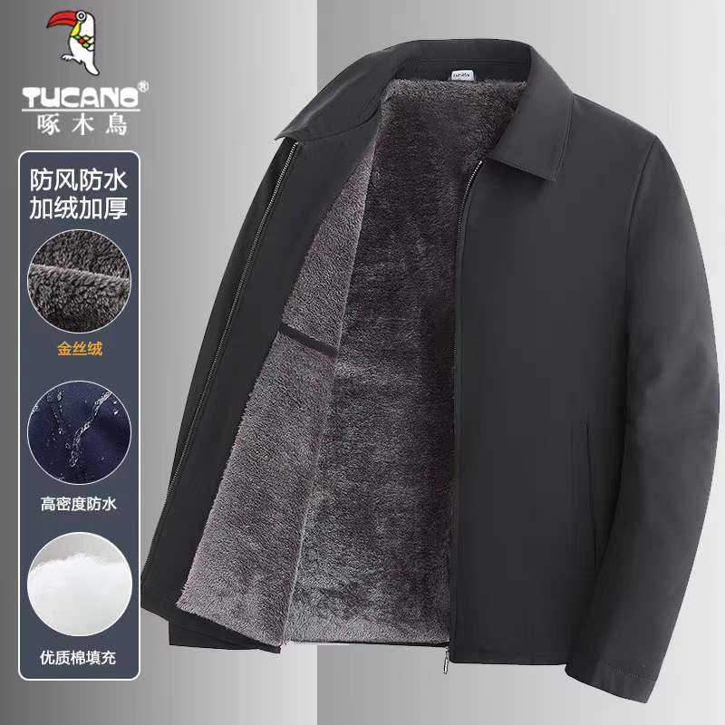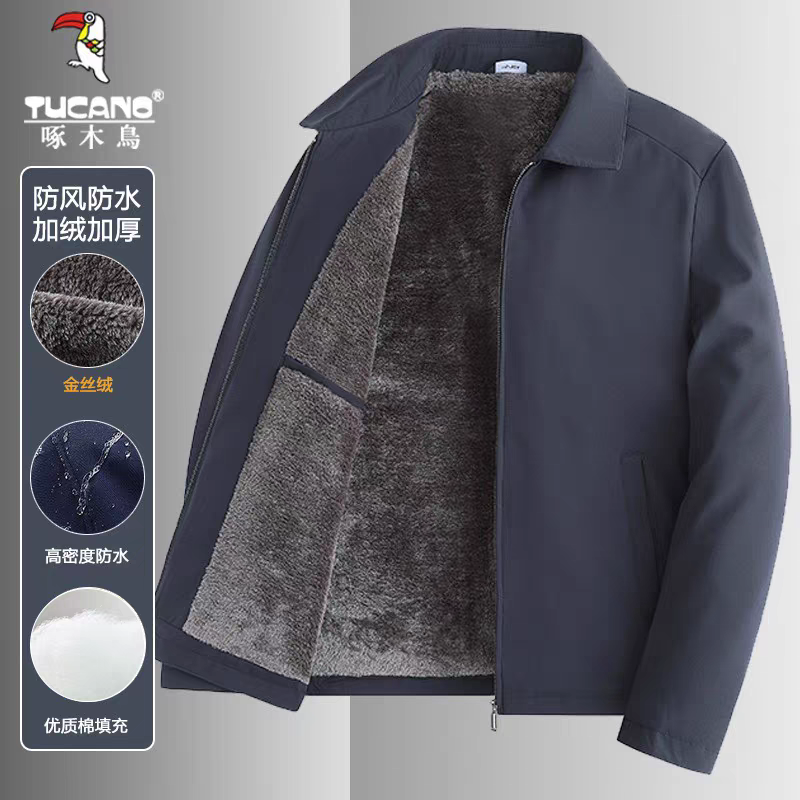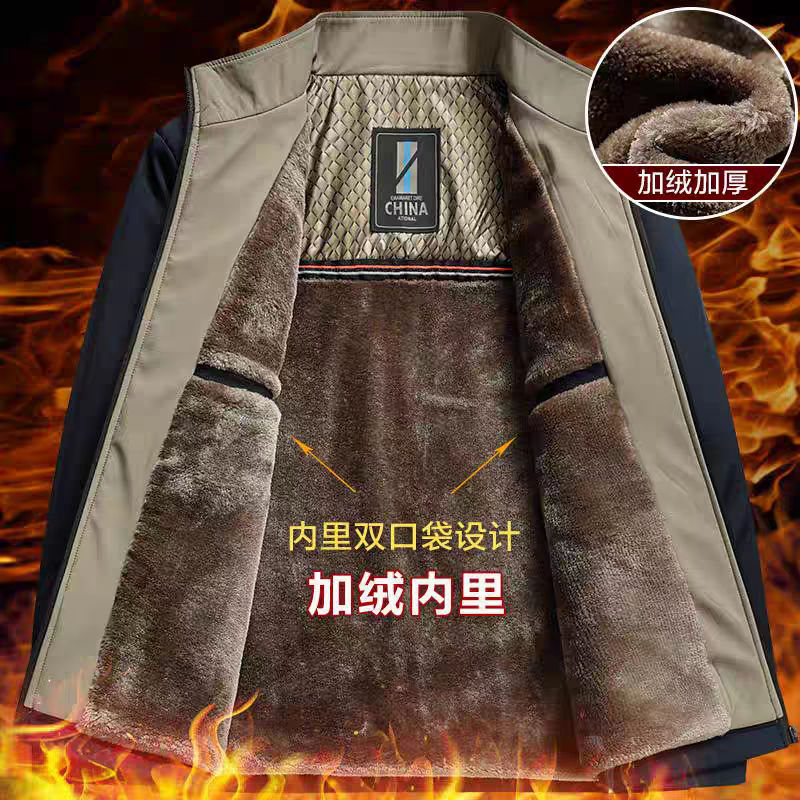 Ağacdələn Qış Yeni Yaxalıqlı Gödəkçə Kişilər üçün Orta Yaşlı və Yaşlılar üçün Yun Astarlı Qalın İsti Pambıq Gödəkçə Atalar üçün Qış Üst Geyimi