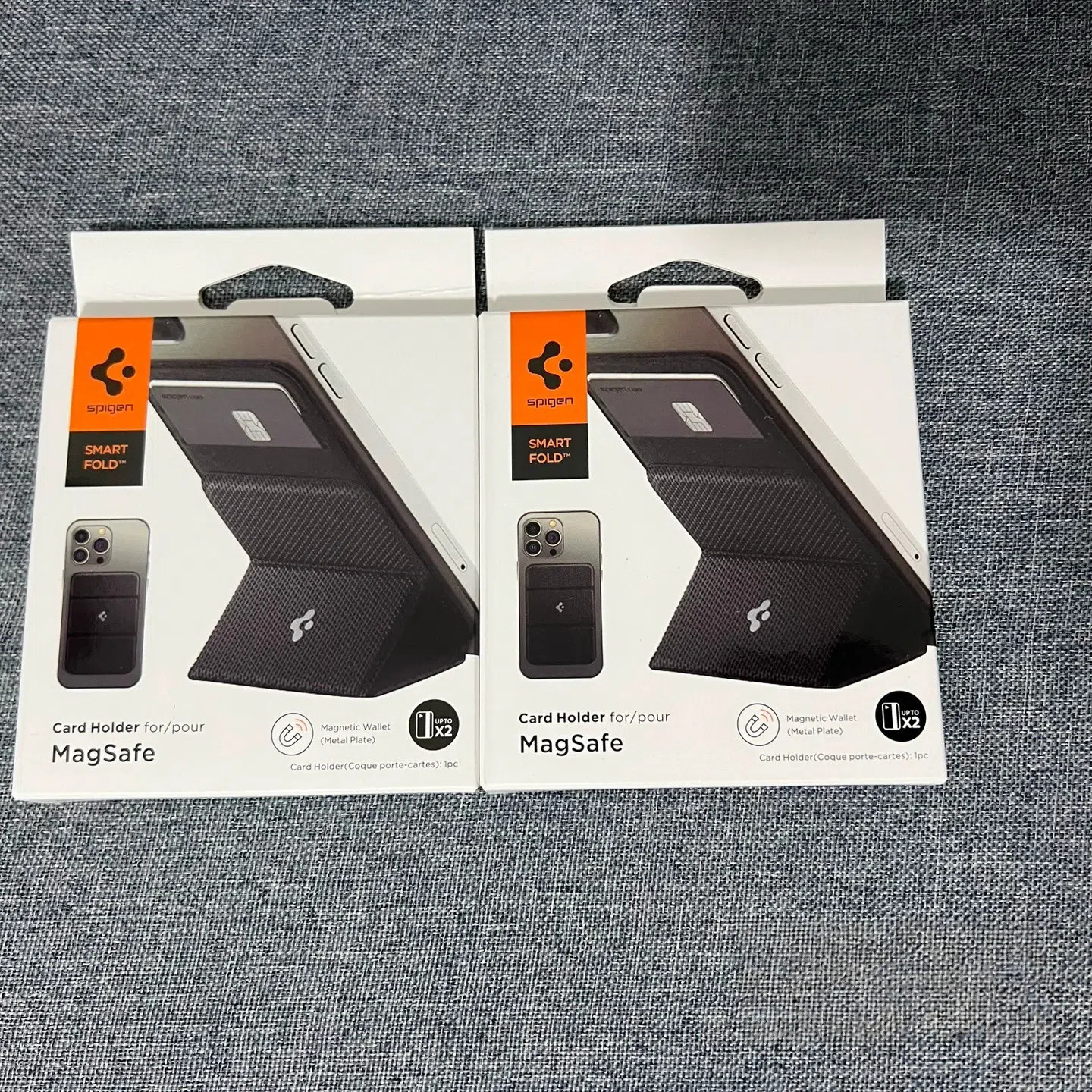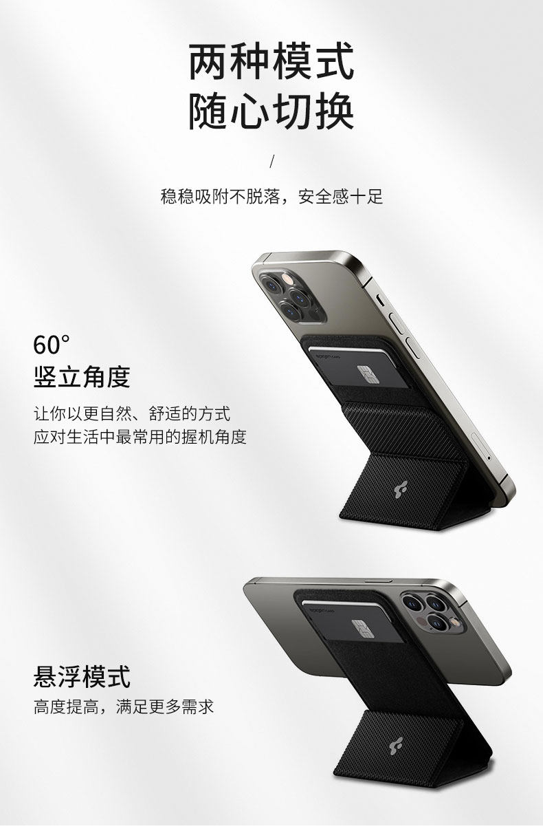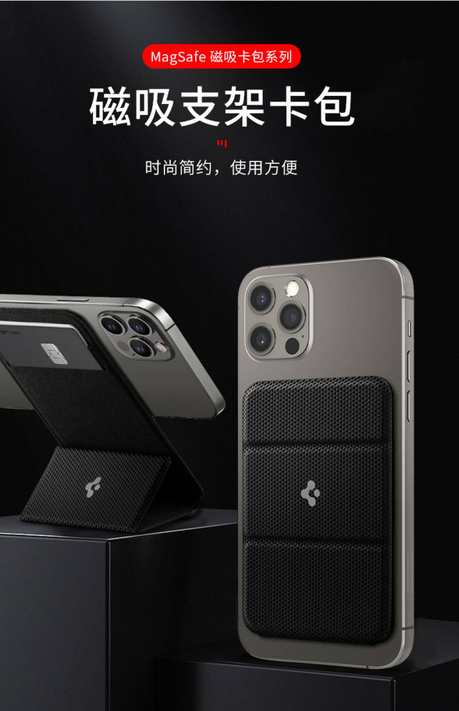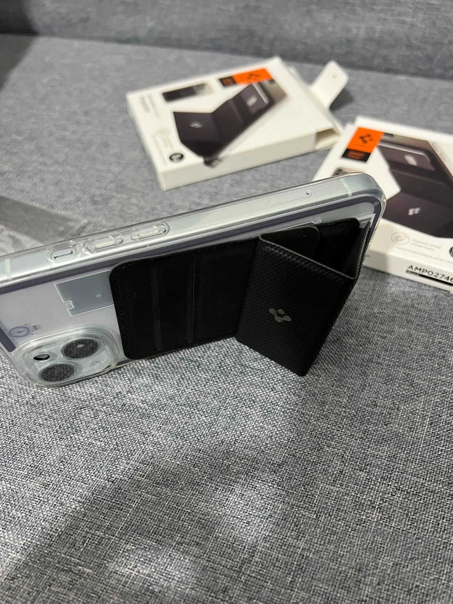 Apple iPhone 16/15/14/13 ilə uyğun Spigen maqnit kart tutacağı/telefon dayağı, portativ arxaya quraşdırıla bilən kart tutacağı.