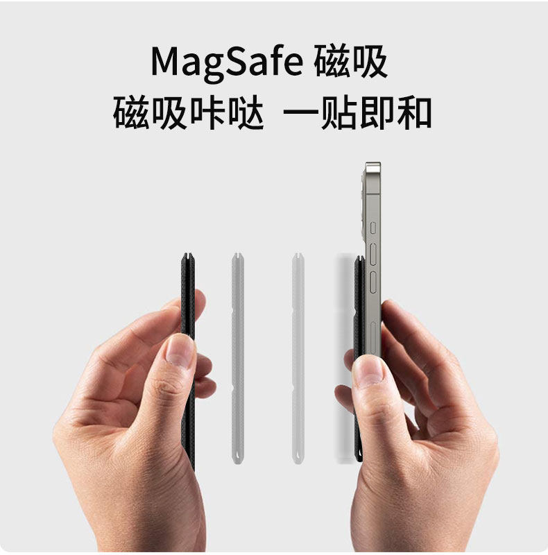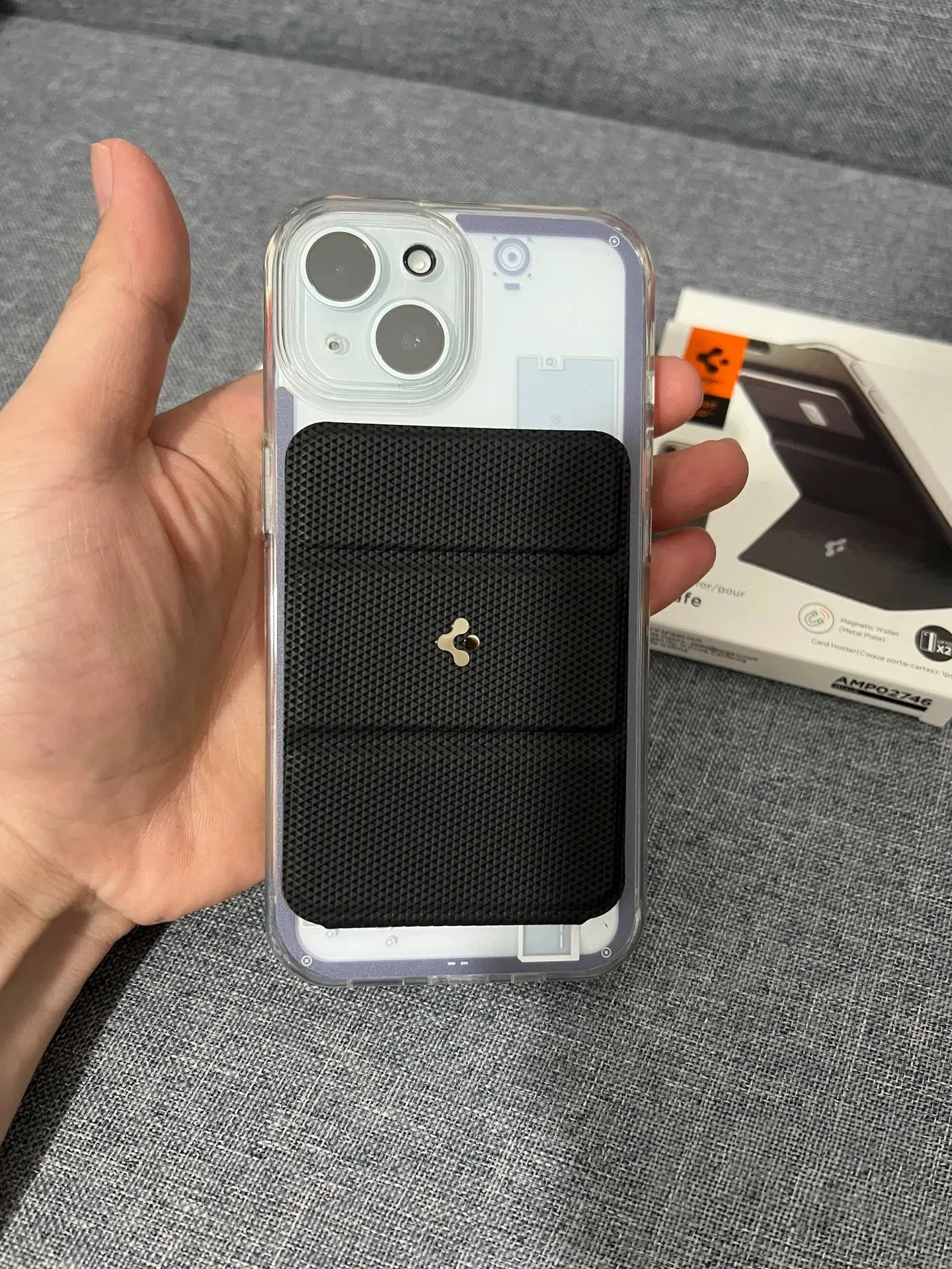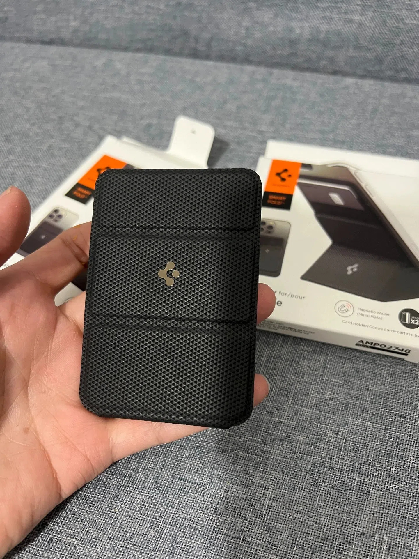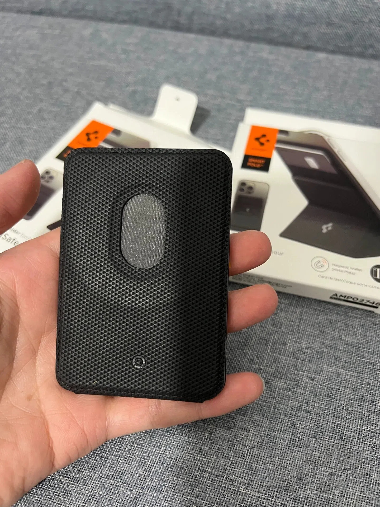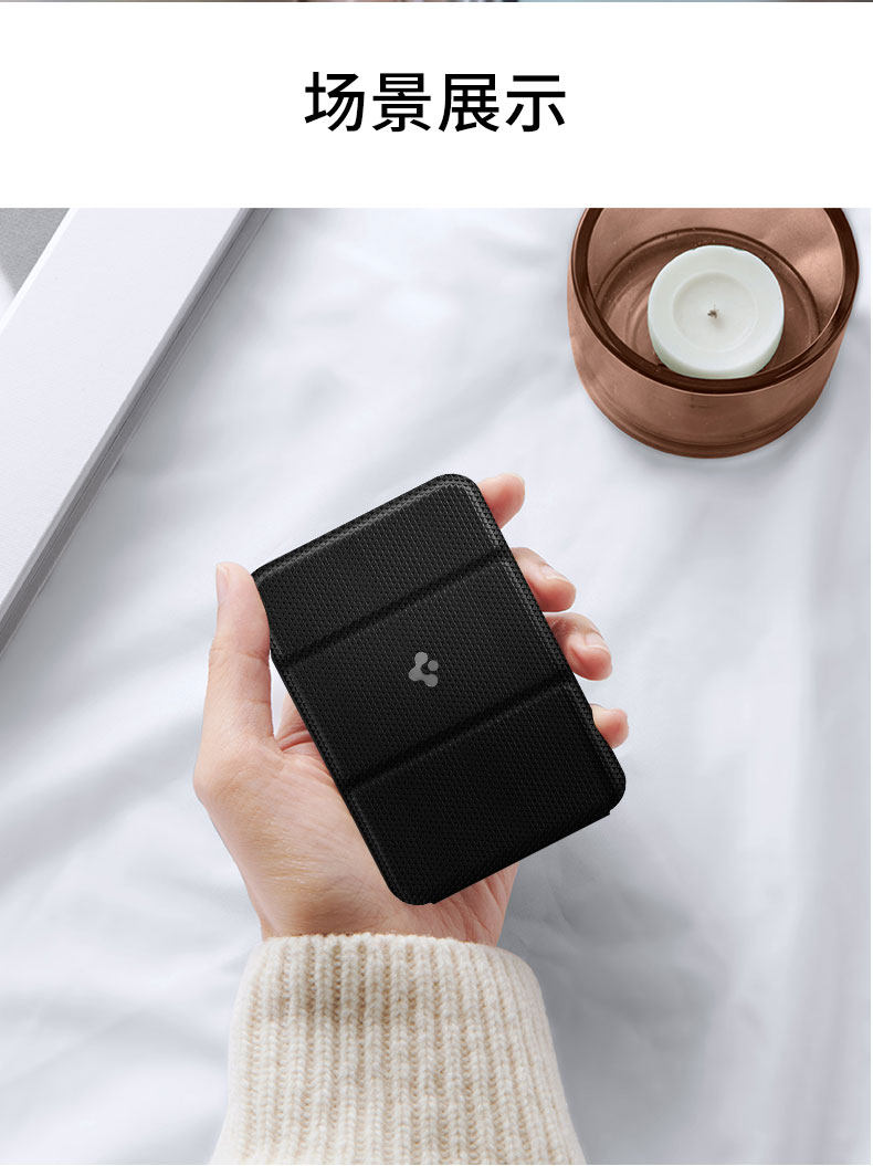 Apple iPhone 16/15/14/13 ilə uyğun Spigen maqnit kart tutacağı/telefon dayağı, portativ arxaya quraşdırıla bilən kart tutacağı.