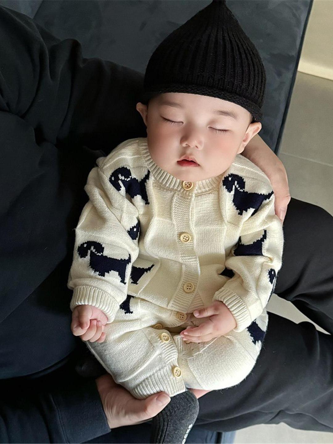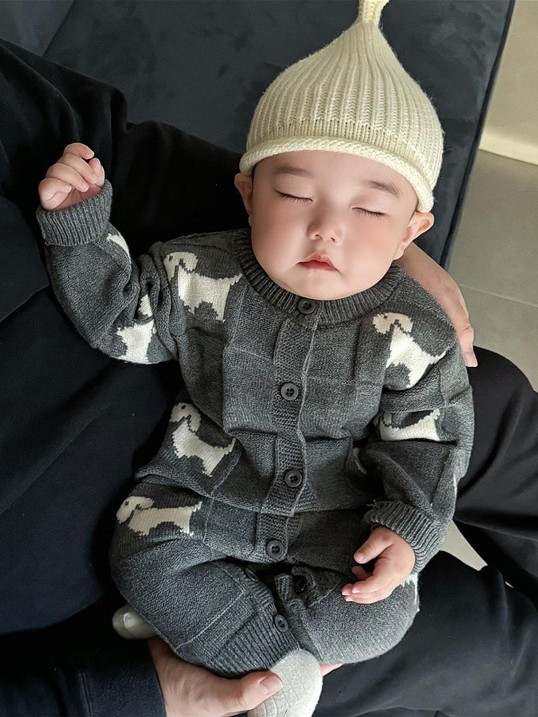 ARIELLE DE PINTO Oğlanlar üçün Fransız Yaz/Payız Körpə Trikotaj Onesie Sviter, Dolunay Çəkilişi/Sürünmə Kostyum