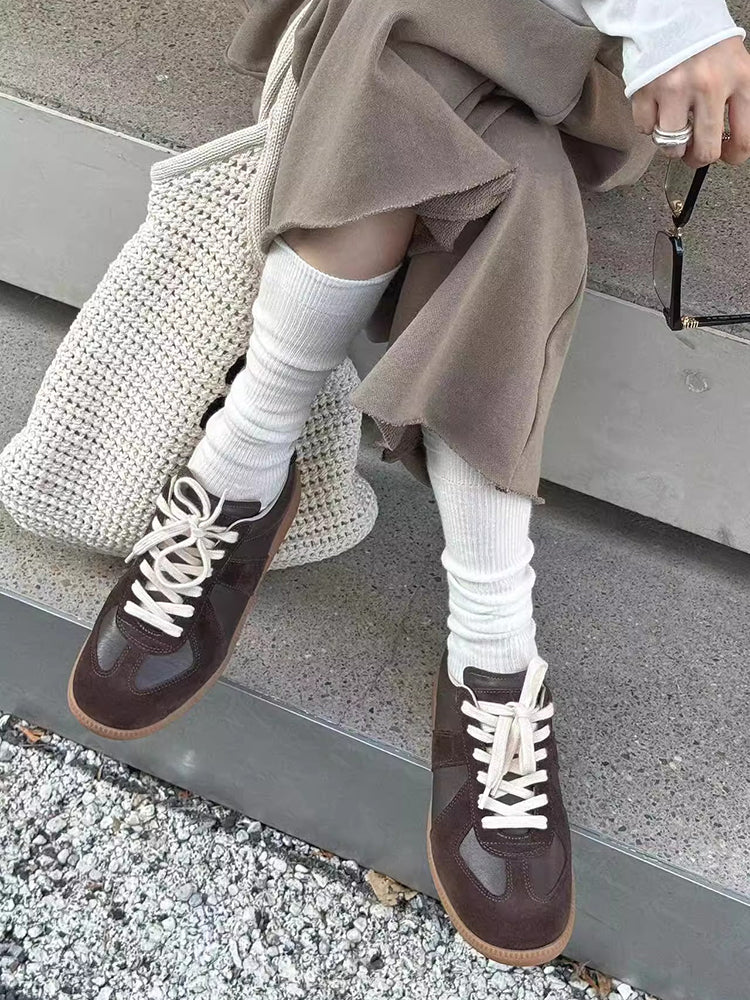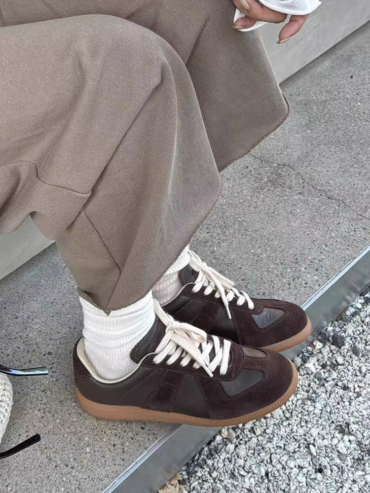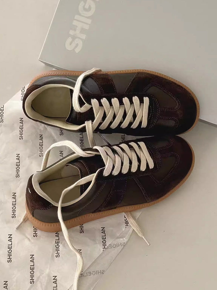 Avropa üslubunda orijinal dəridən hazırlanmış krujevalı retro alman məşq ayaqqabıları qadın 2025 yaz/payız yeni düz idman təsadüfi idman ayaqqabıları