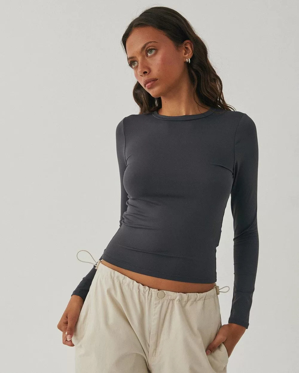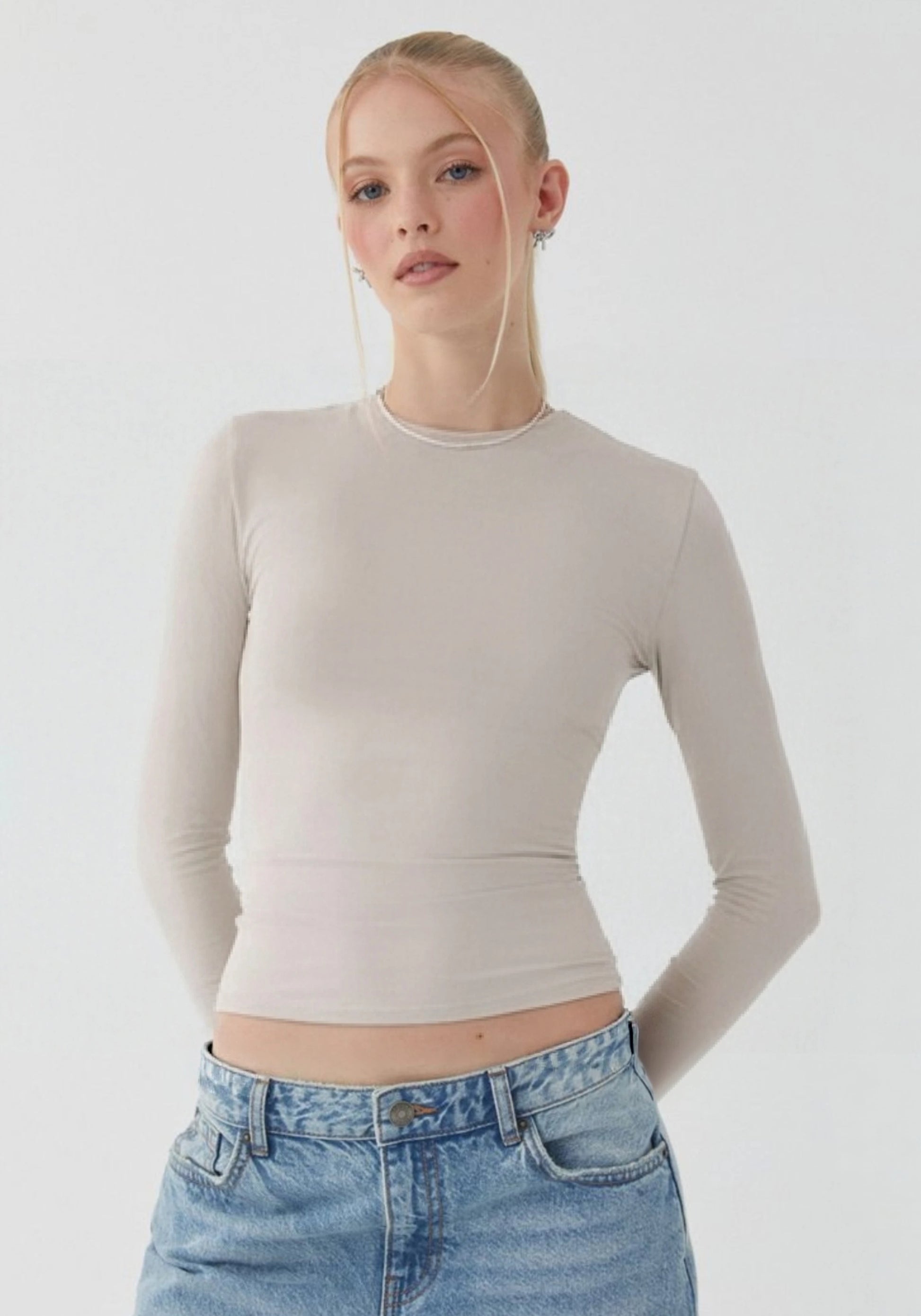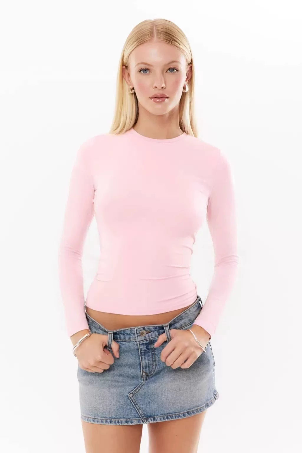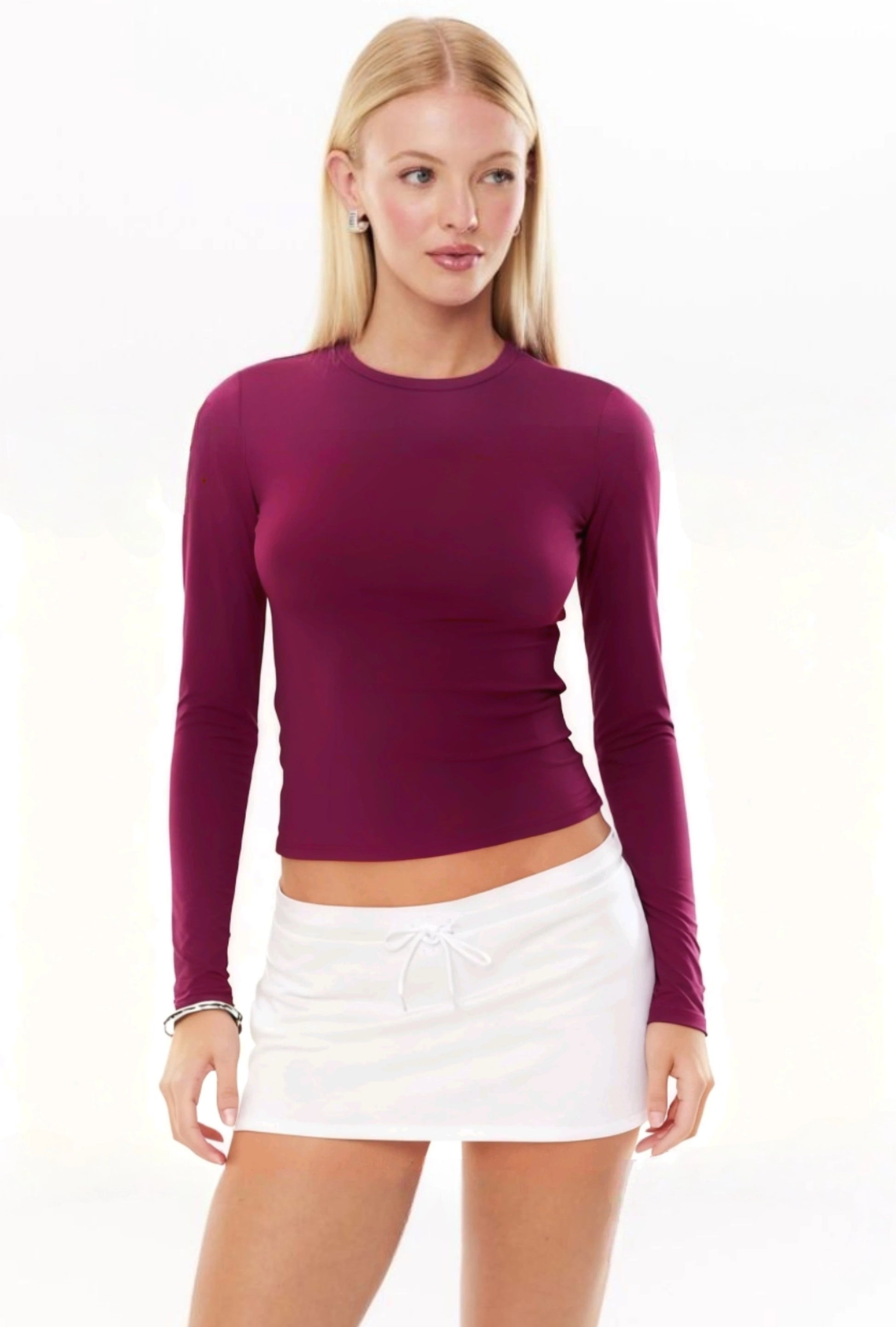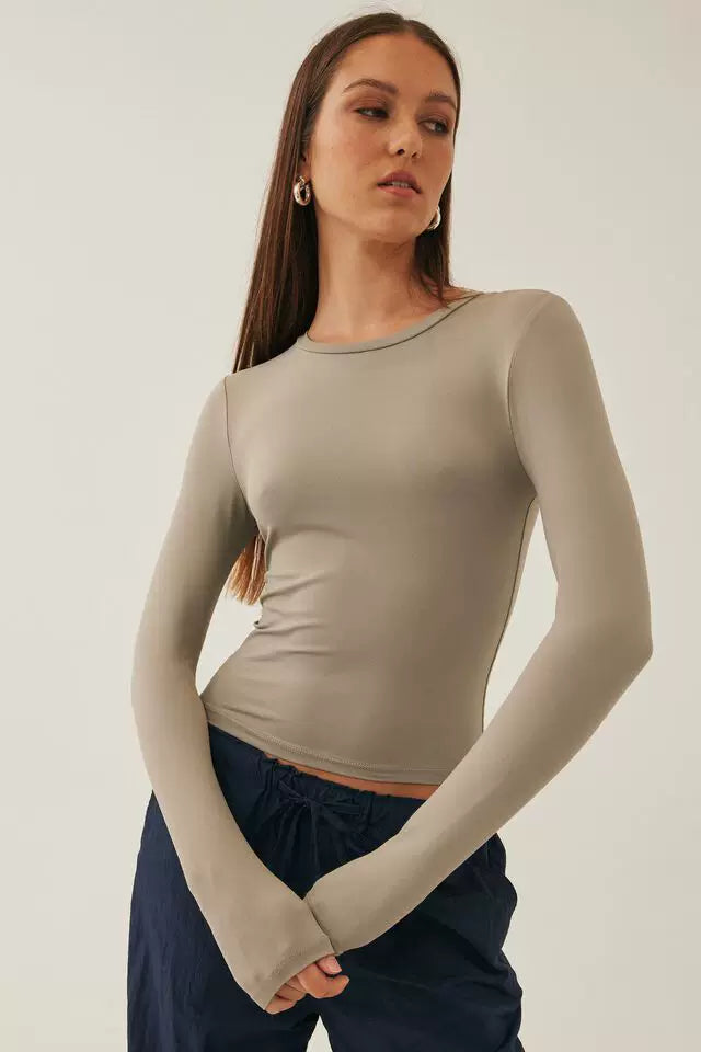 Avstraliya S-brendli SK*M dupe! Qadınlar üçün düz rəngli, tikişsiz, uzanan uzunqol köynək, seksual üslublu top, ixrac keyfiyyəti.