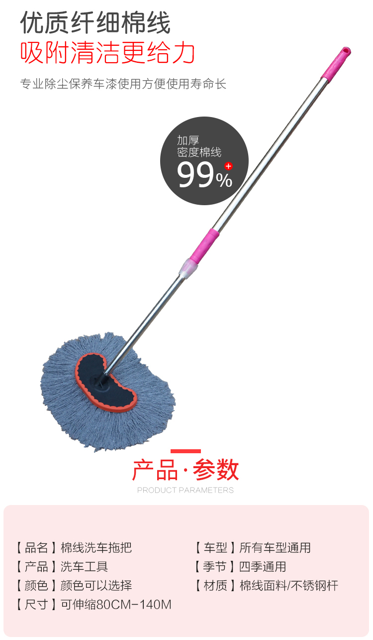 Avtomobil Yuma Fırçası Paslanmayan Polad Teleskopik Uzun Fırça Sahibi Uzun Saplı Avtomobil Su Fırçası Yumşaq Kürk Təmiz Pambıq Telli Avtomobil Yuma Mop Təmizləmə Xüsusi
