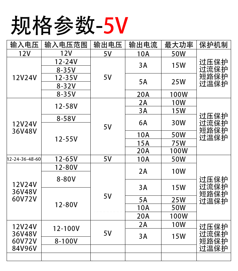 Avtomobilin LED displeyi Dc84v72v60v48v36v24v12v - 5vdc pilləli aşağı modul güc adapteri