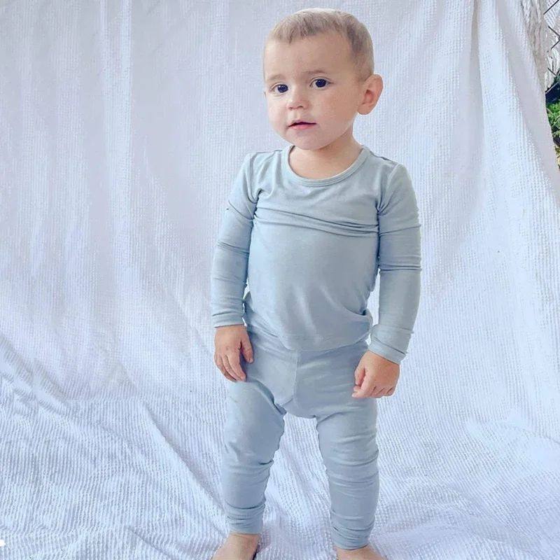 Bamboo Fiber Toddler Kids Pajamas Clothes Solid Hight Elasticity Breathable Sleepwear Set For 9M-7T Boy Girl Loungewear