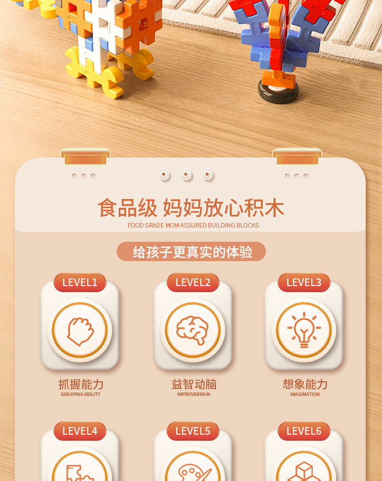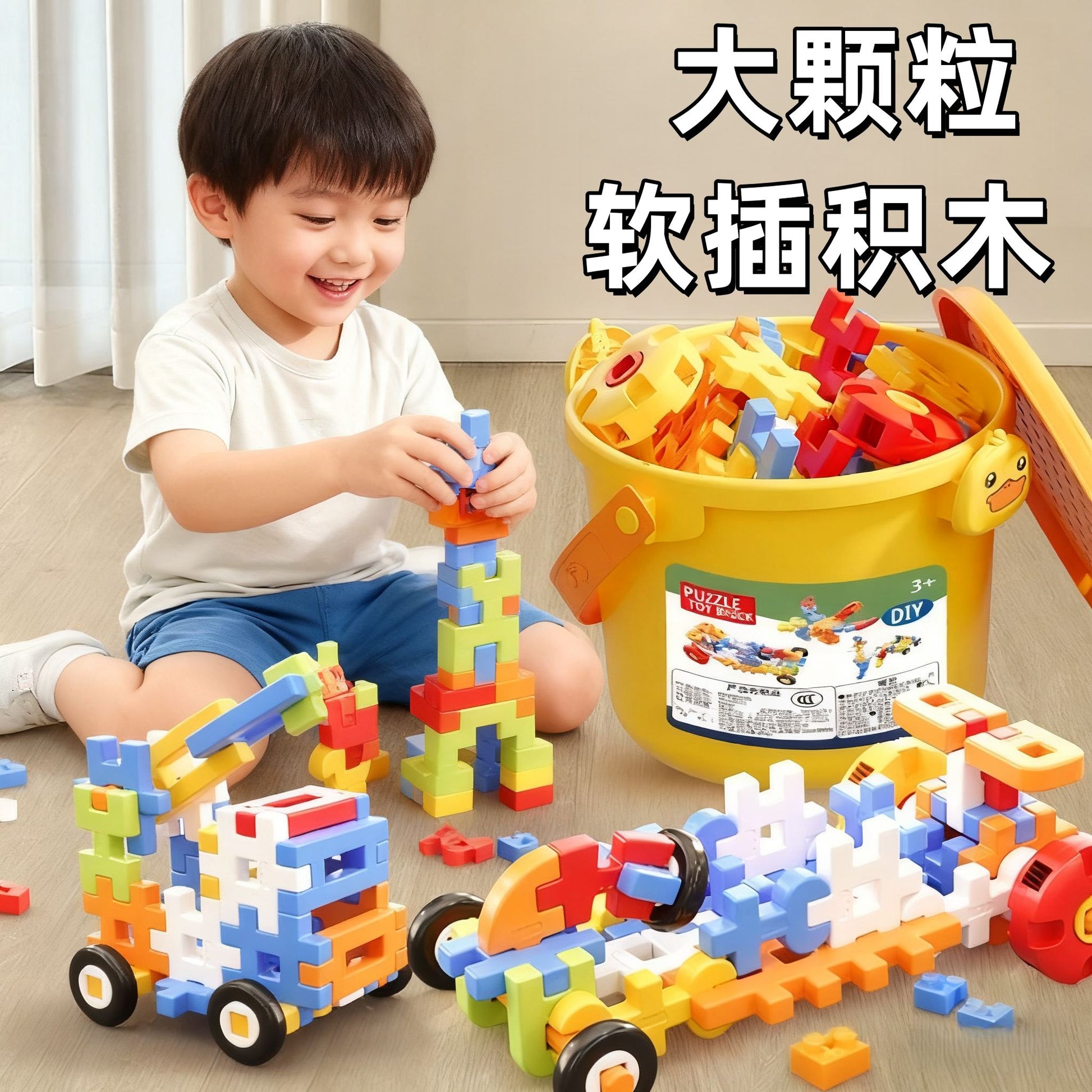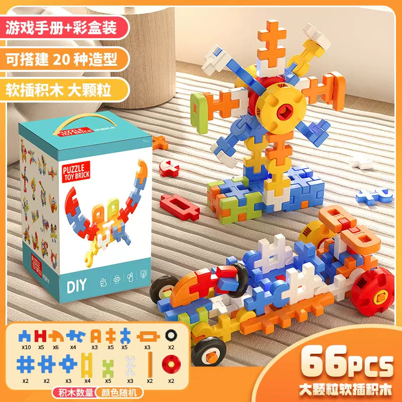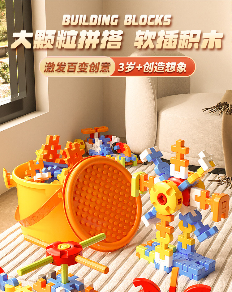 Bimising uşaqlar üçün böyük, yumşaq, bir-birinə bağlı tikinti blokları oyuncağı, 5 yaş (0-3 yaş), 6 ədəd təhsil oyuncağı.