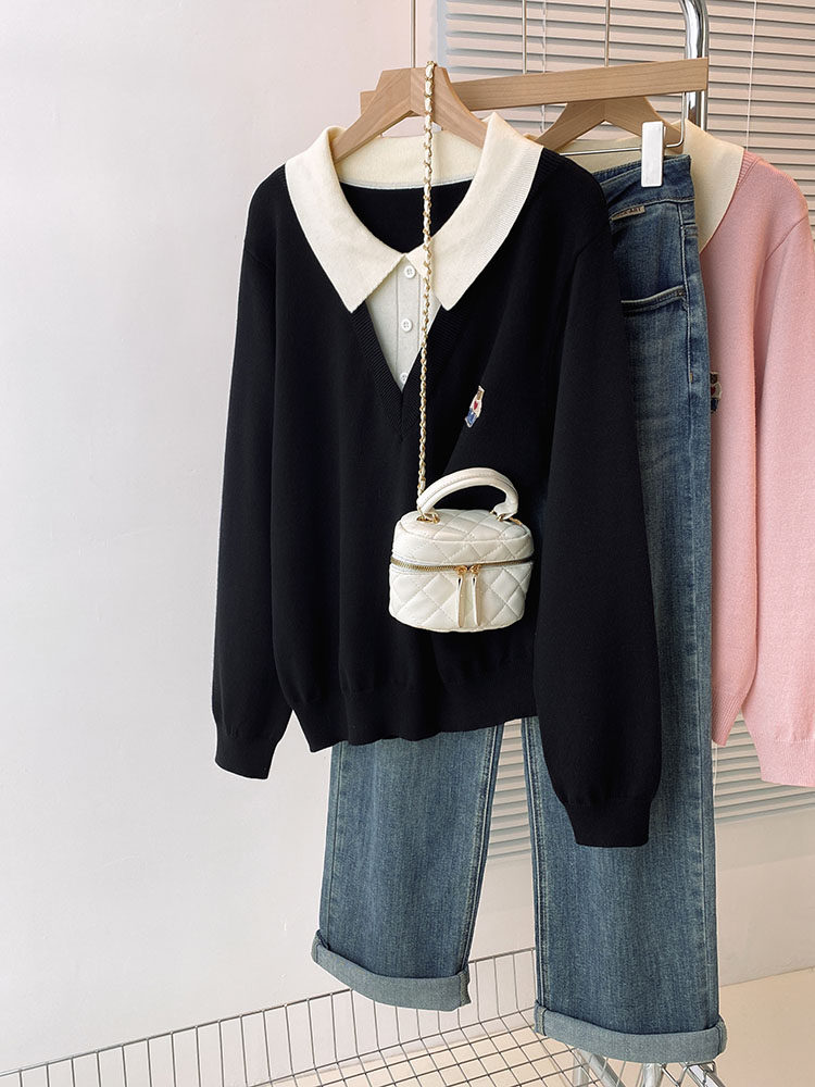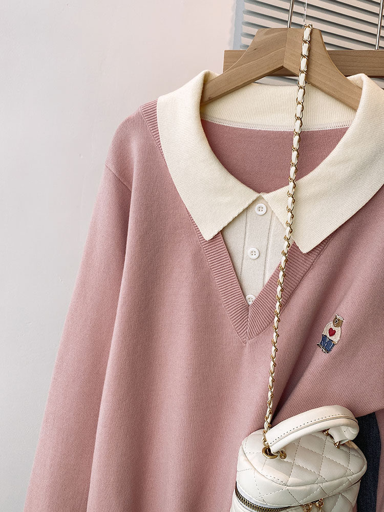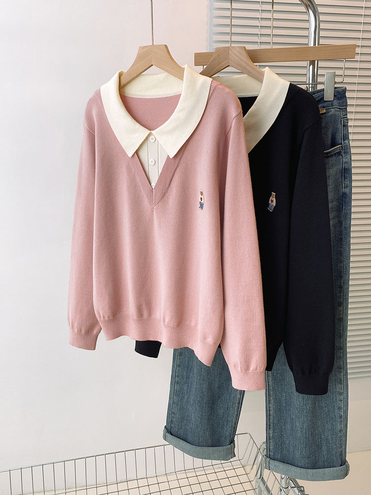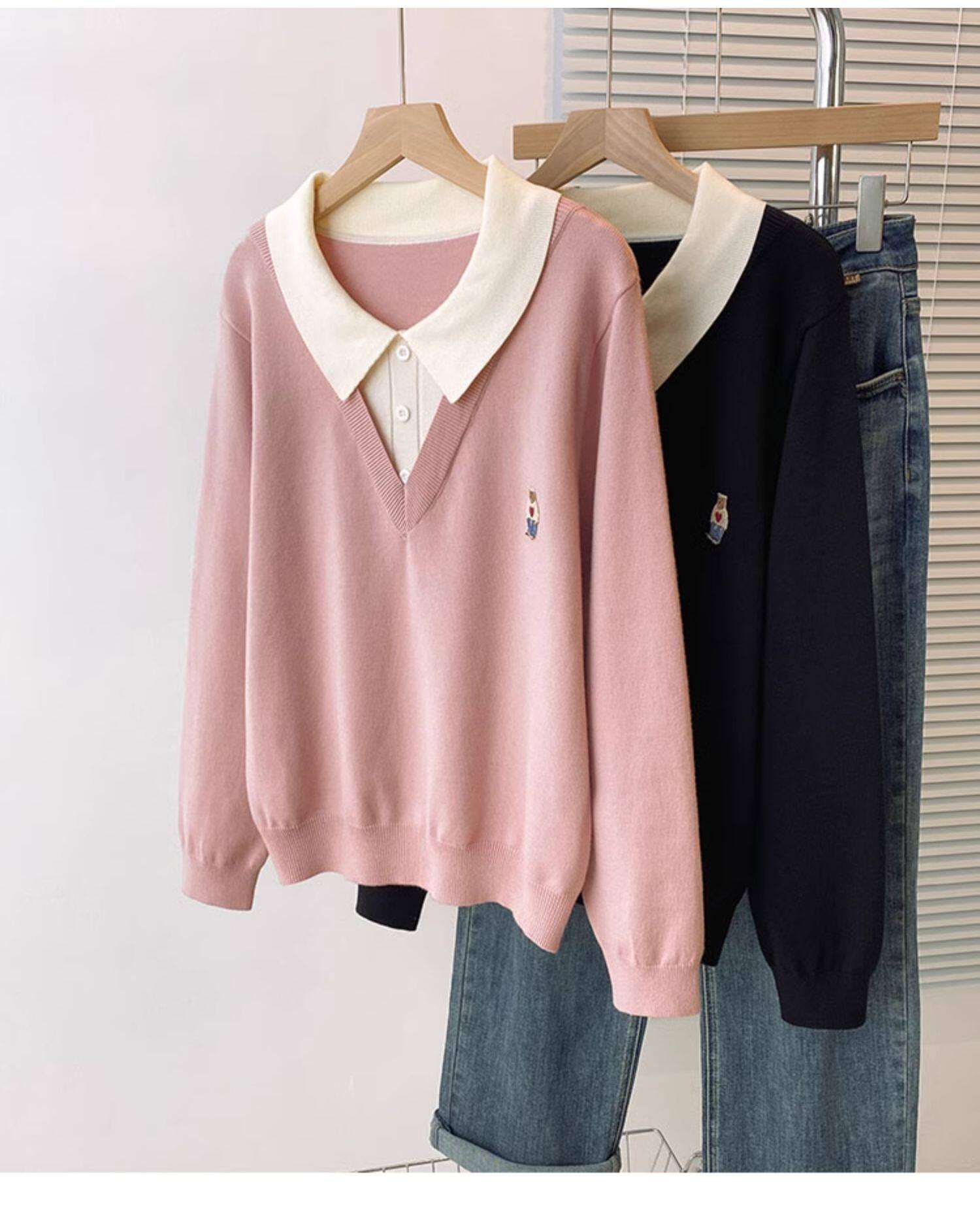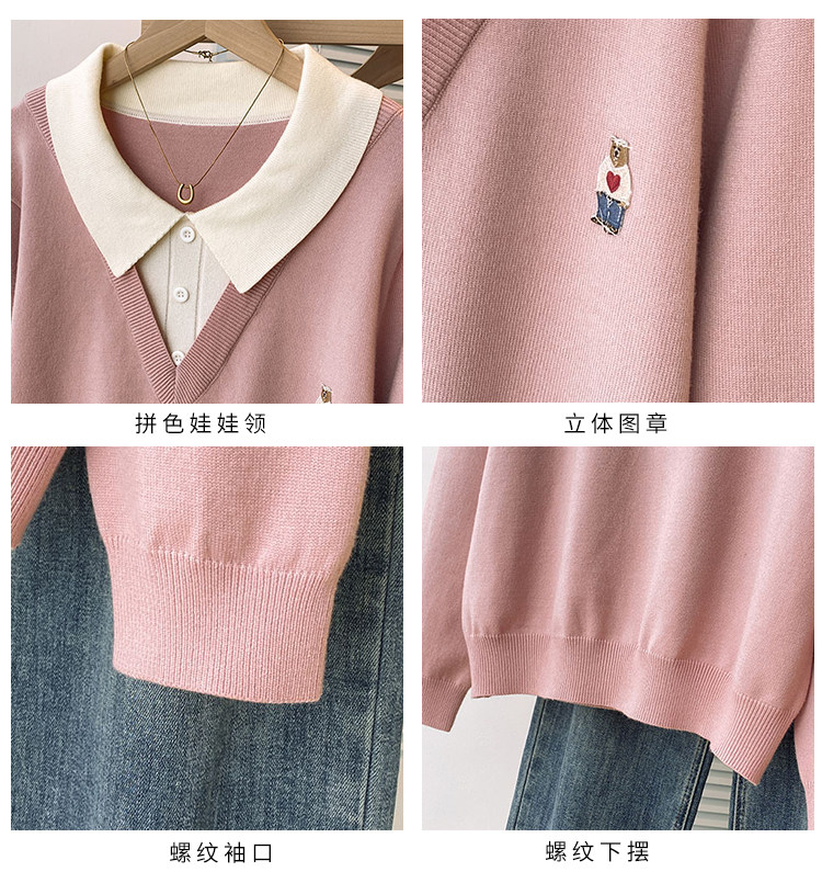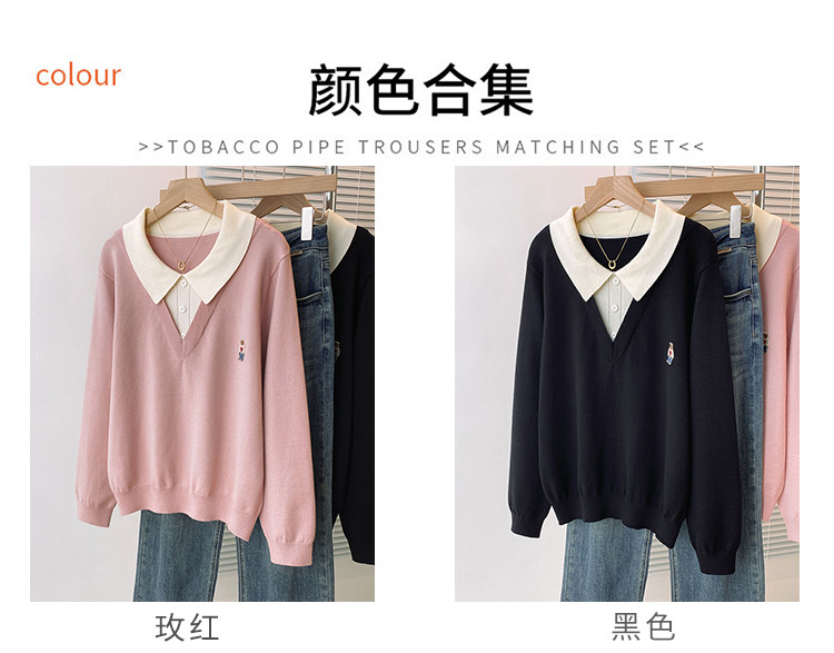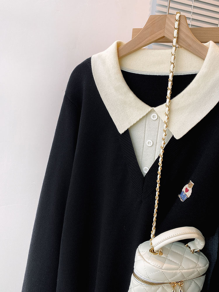 Böyük ölçülü, gənc görünüşlü, iki hissəli naxışlı toxunma sviter, qadınlar üçün payız və qış, geniş formalı, arıqladıcı və qarın nahiyəsini gizlədən alt qat.