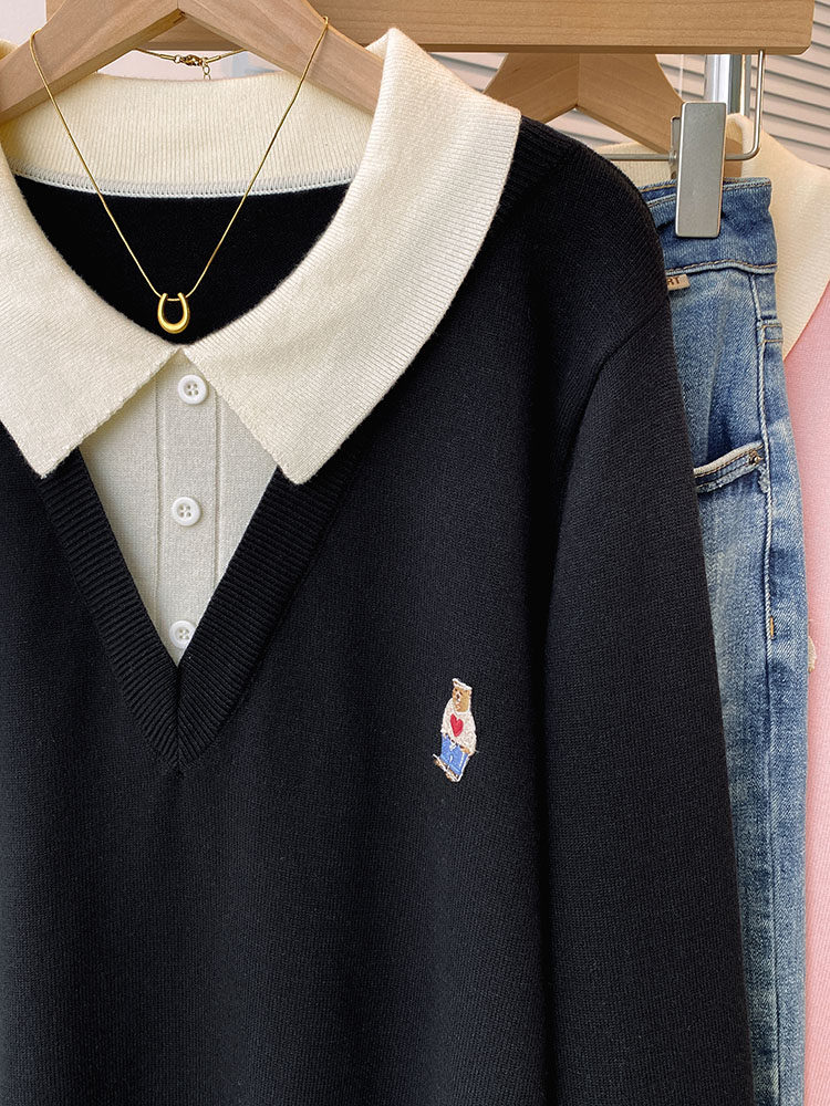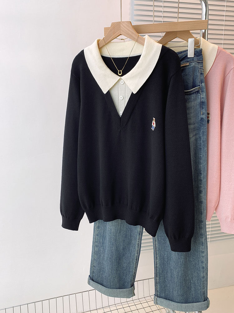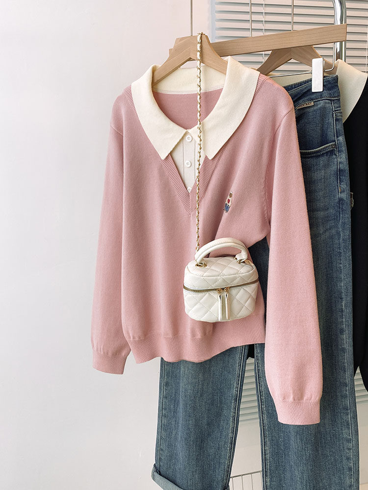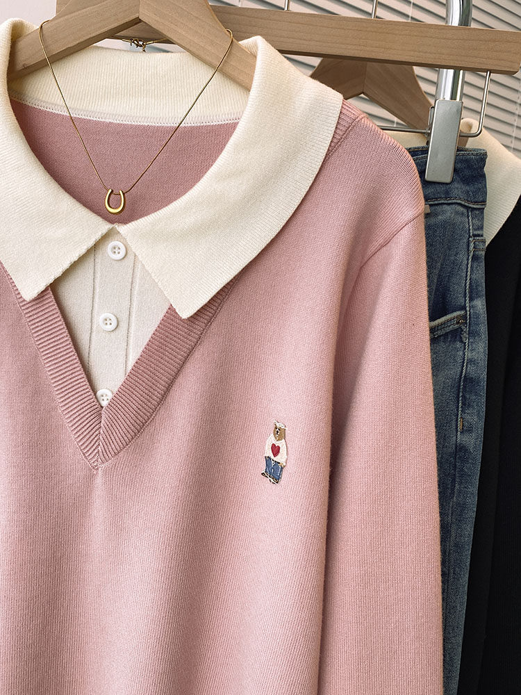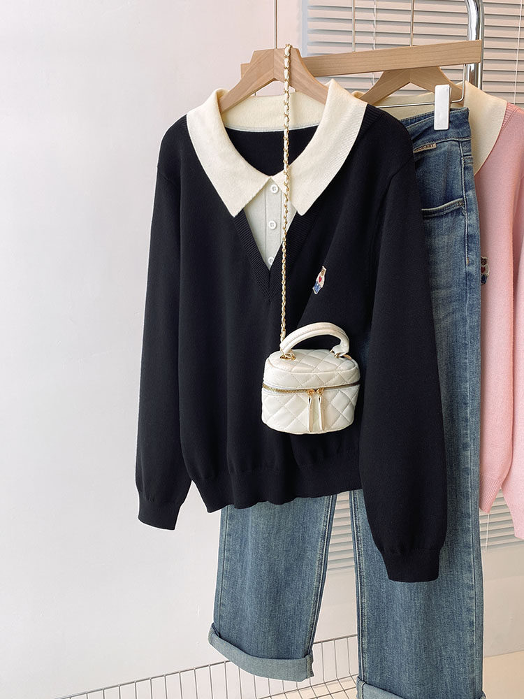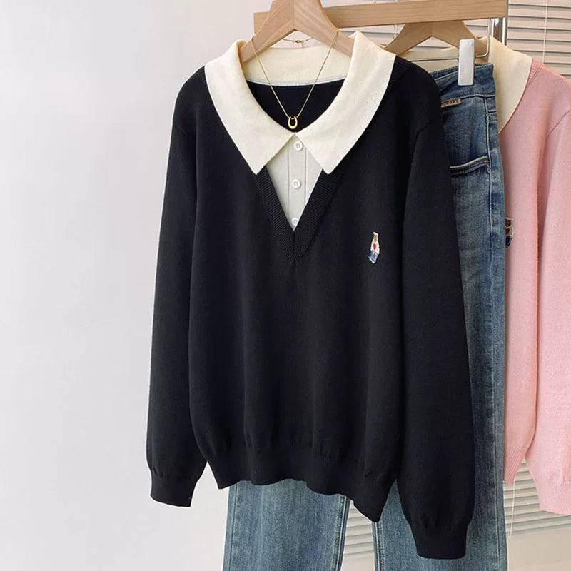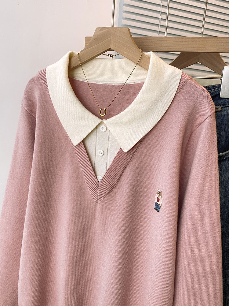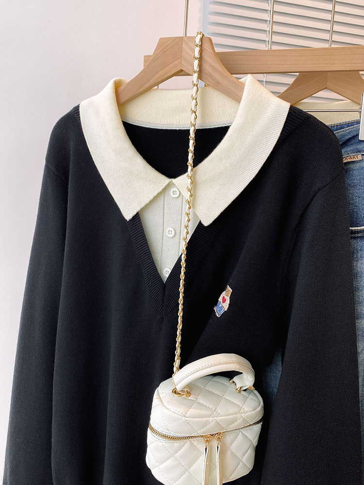 Böyük ölçülü, gənc görünüşlü, iki hissəli naxışlı toxunma sviter, qadınlar üçün payız və qış, geniş formalı, arıqladıcı və qarın nahiyəsini gizlədən alt qat.