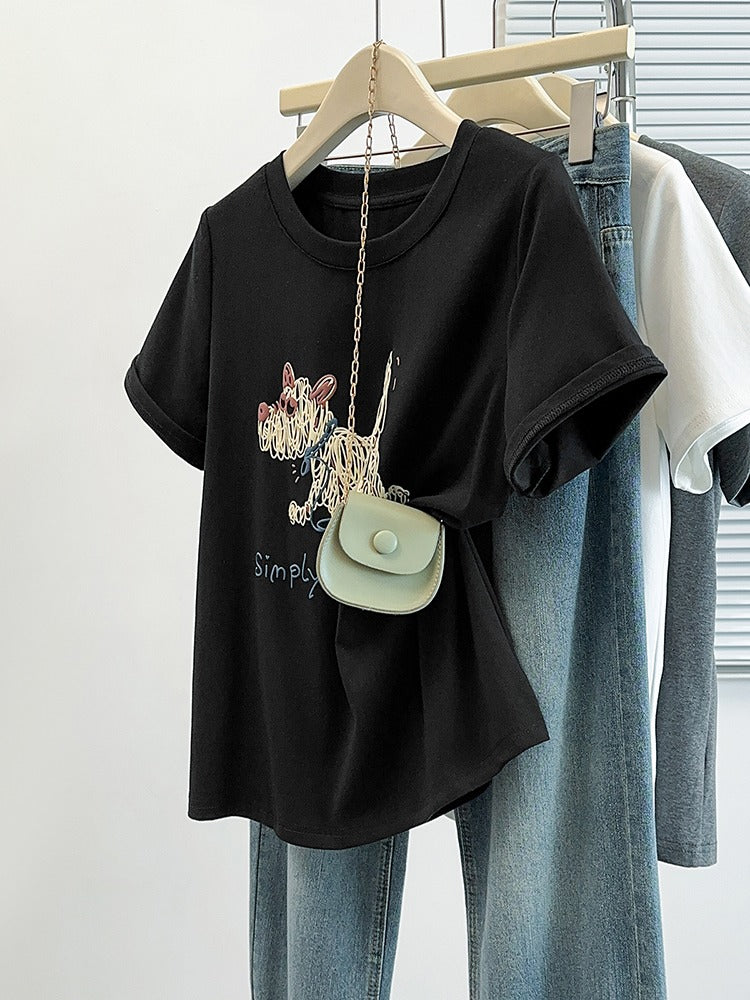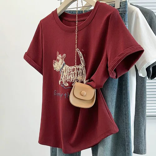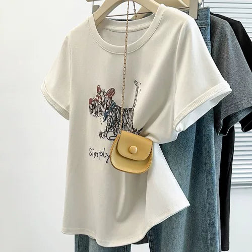 Böyük ölçülü, şık, unikal qısaqollu qadınlar üçün futbolka, yay dəbi, böyük ölçülü qadınlar üçün dairəvi yaxalı, çiyinsiz, arıqladıcı köynək.