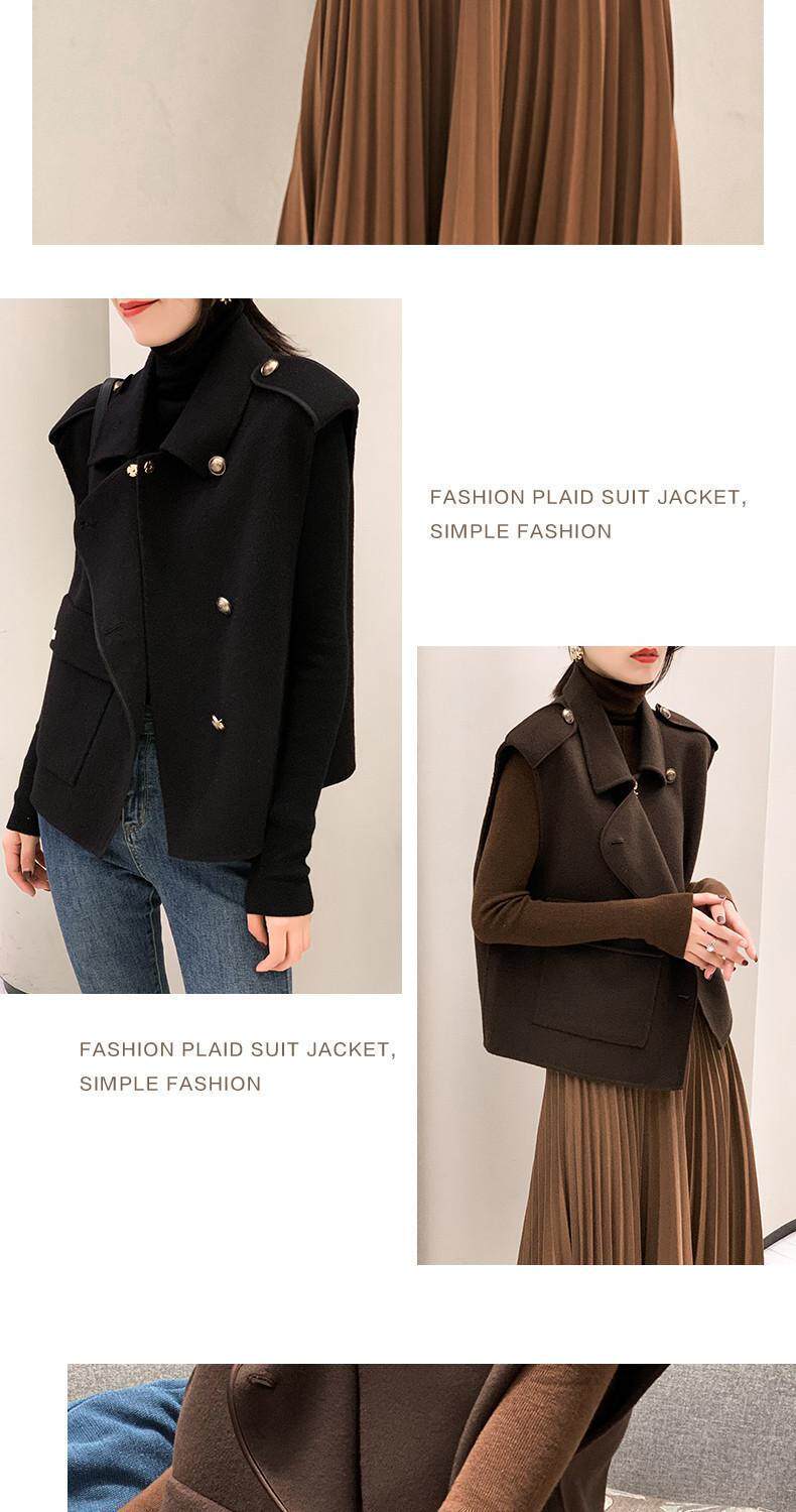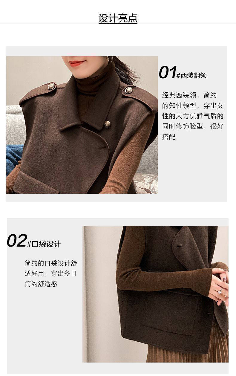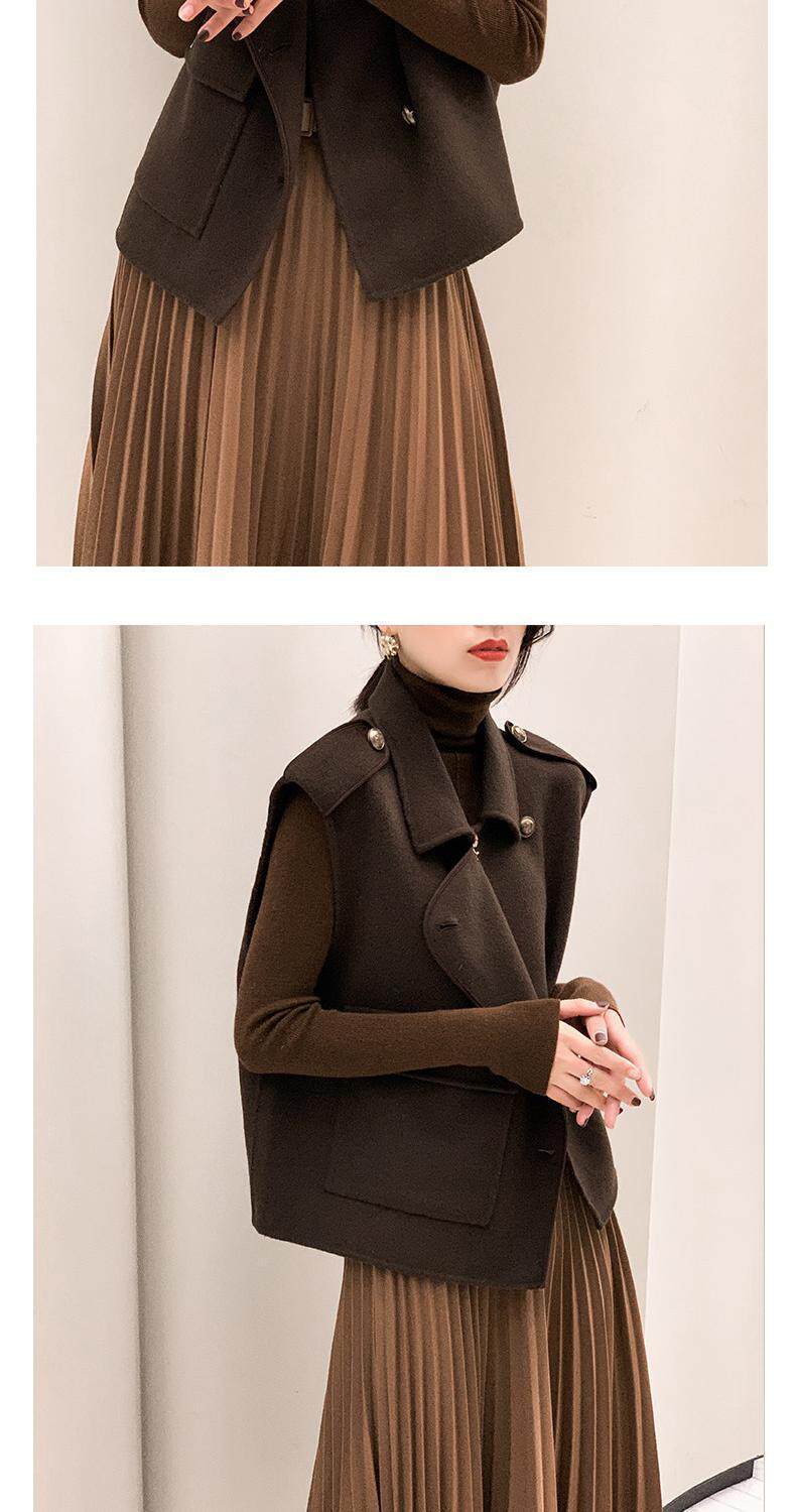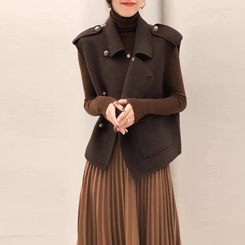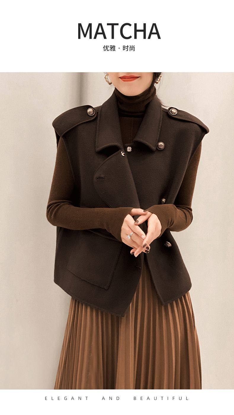 Brend endirimli mağaza endirimləri: İkiüzlü yun kaşmir jilet, qadın qısa, geniş, qolsuz hırka.