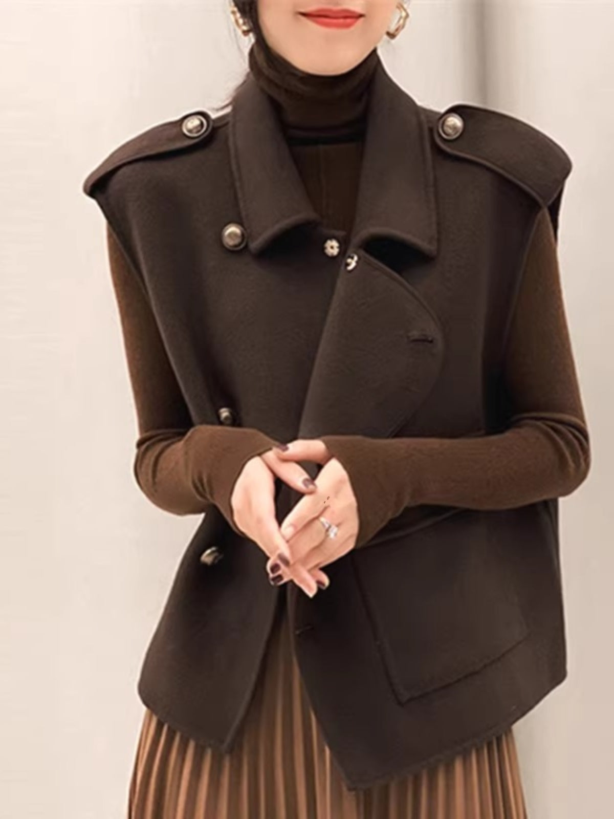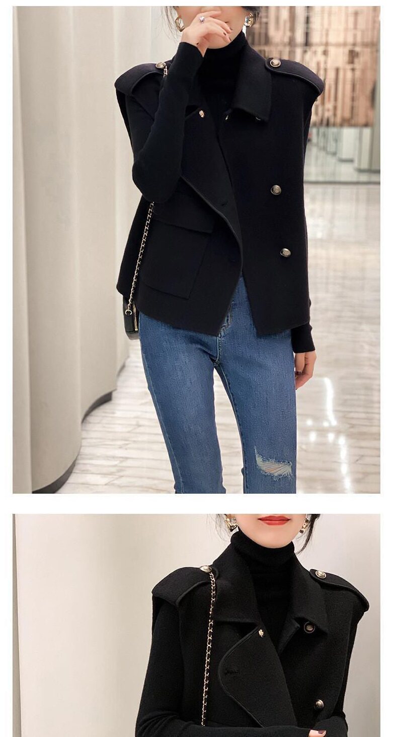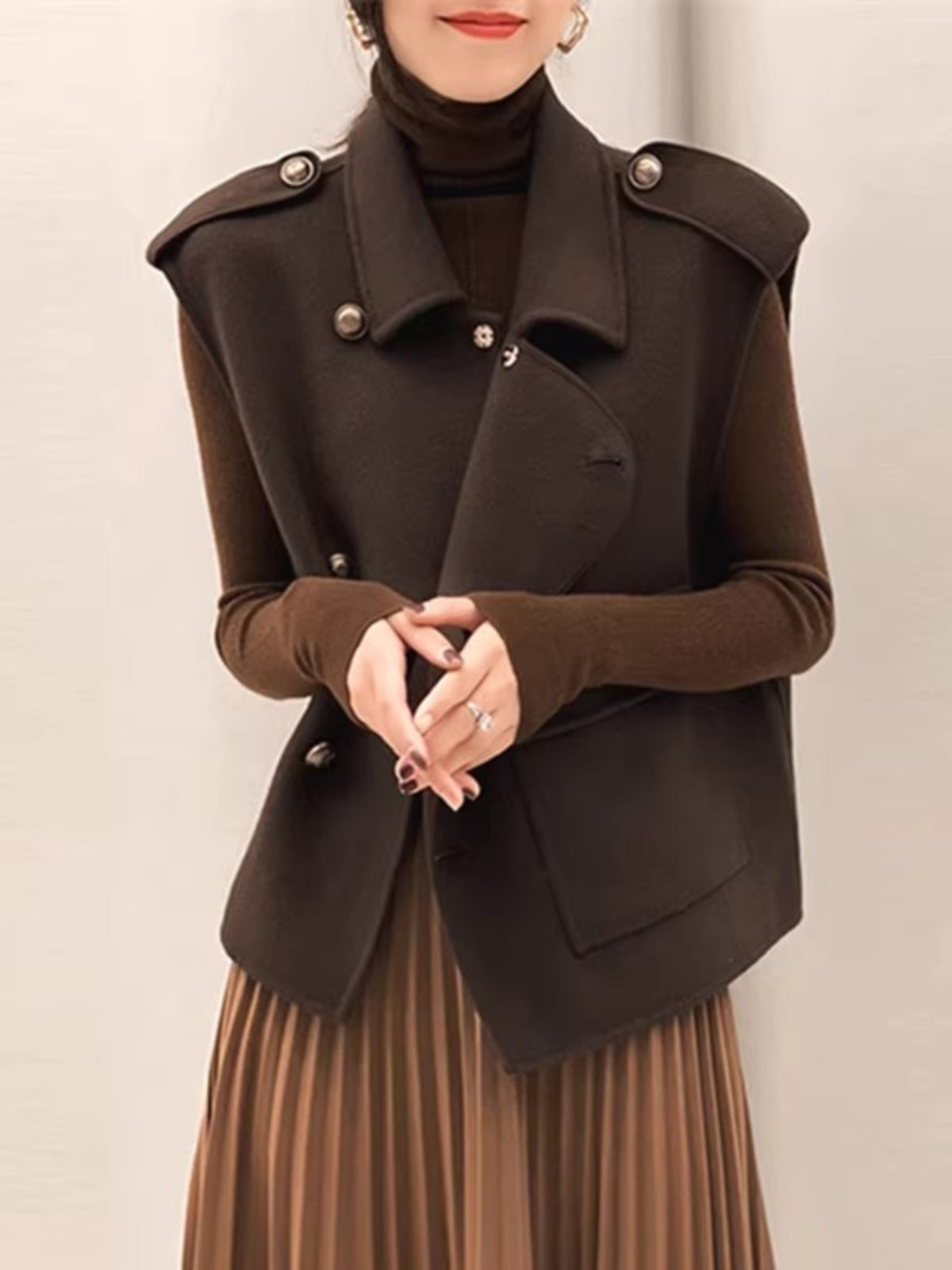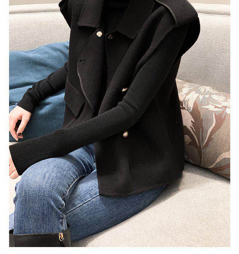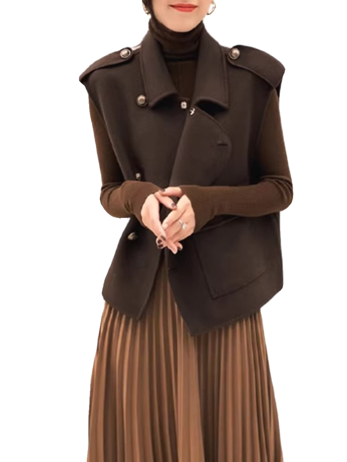 Brend endirimli mağaza endirimləri: İkiüzlü yun kaşmir jilet, qadın qısa, geniş, qolsuz hırka.