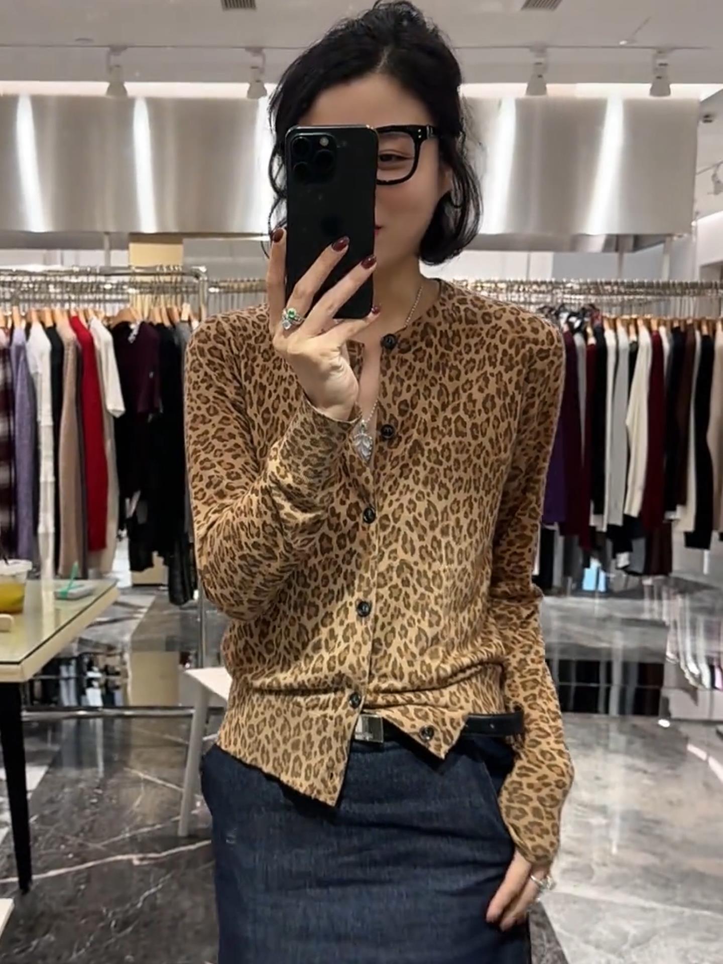 Bu, tamamilə inanılmaz bir məhsuldur! Payızın əvvəlləri üçün yüksək səviyyəli Avropa üslubunda dairəvi yaxalı, tək sinəli, bəbir naxışlı uzunqol köynək, qadınlar üçün idealdır.