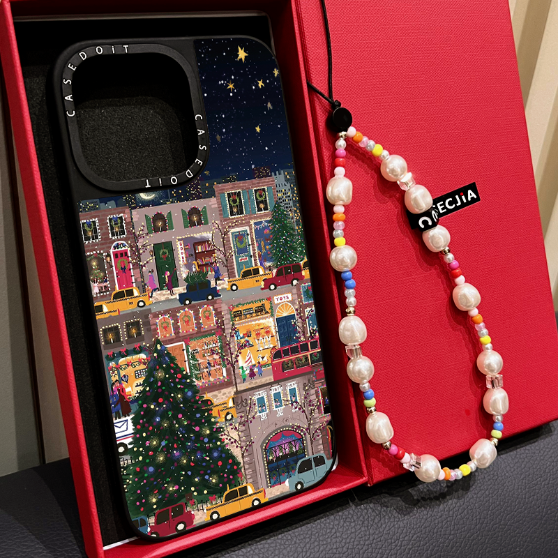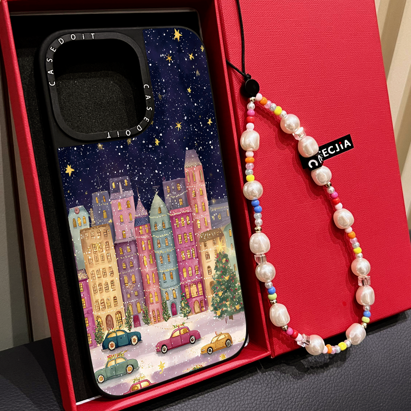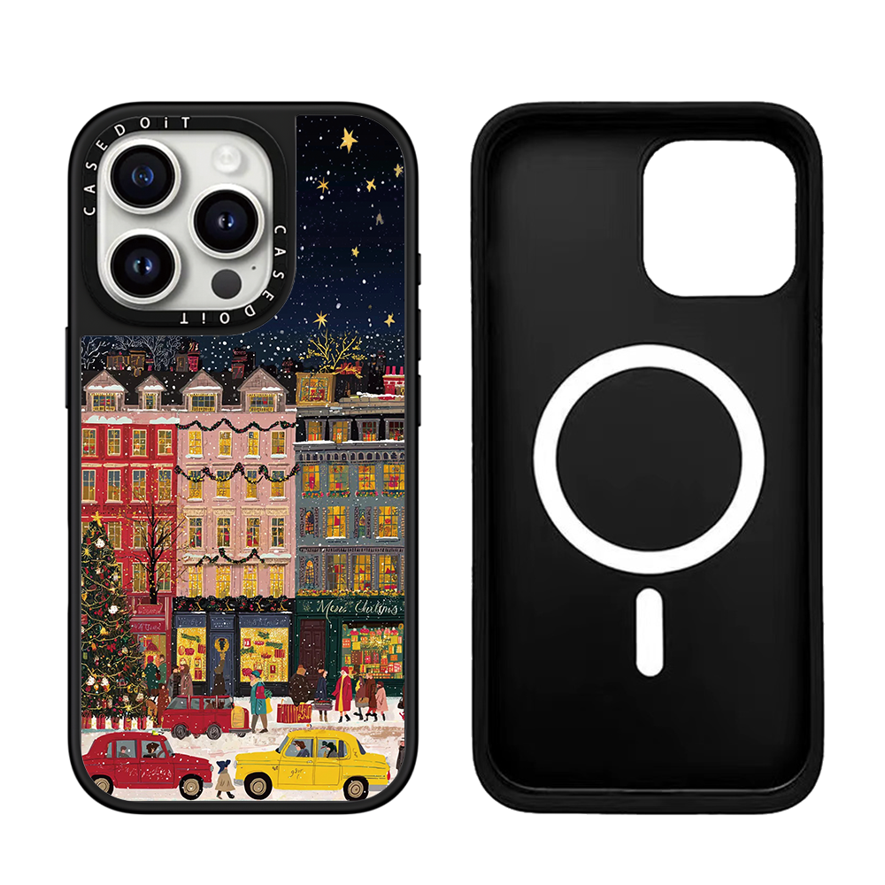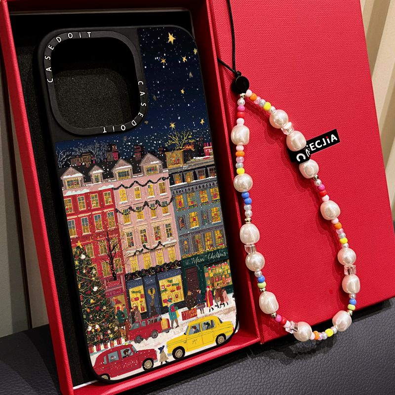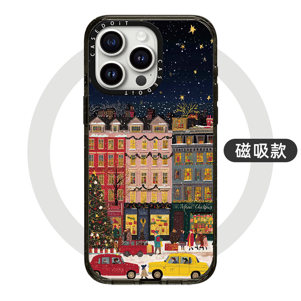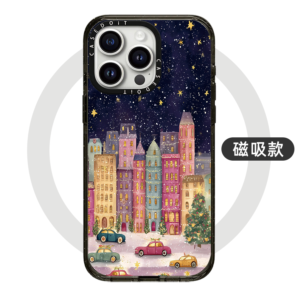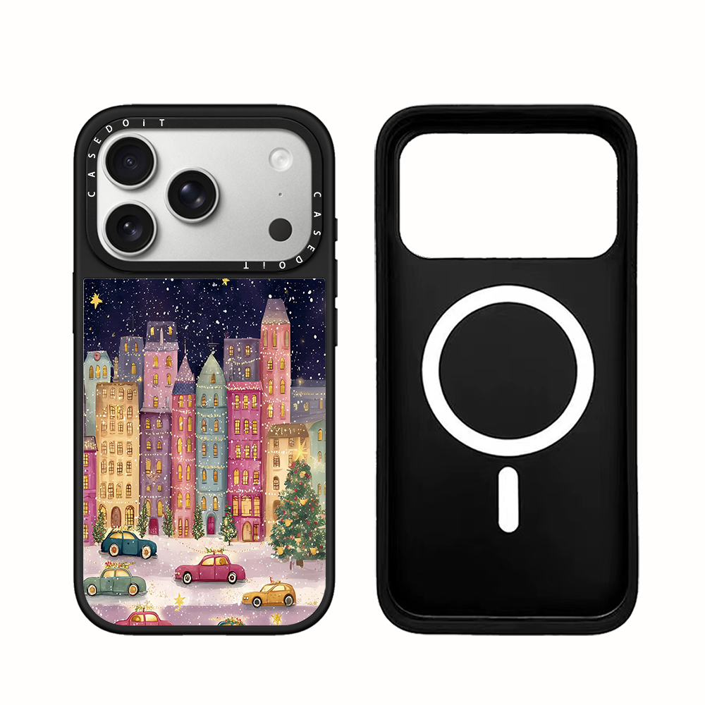 | C markası ilə əməkdaşlıq edən MagSafe maqnit Milad rəngli bina və küçə səhnəsi üçün korpus, iPhone 17, 16 Pro Max, Apple 15 Pro, 14 Plus güzgü örtüyü, premium hiss, qadın hava nişləri üçün uyğundur.