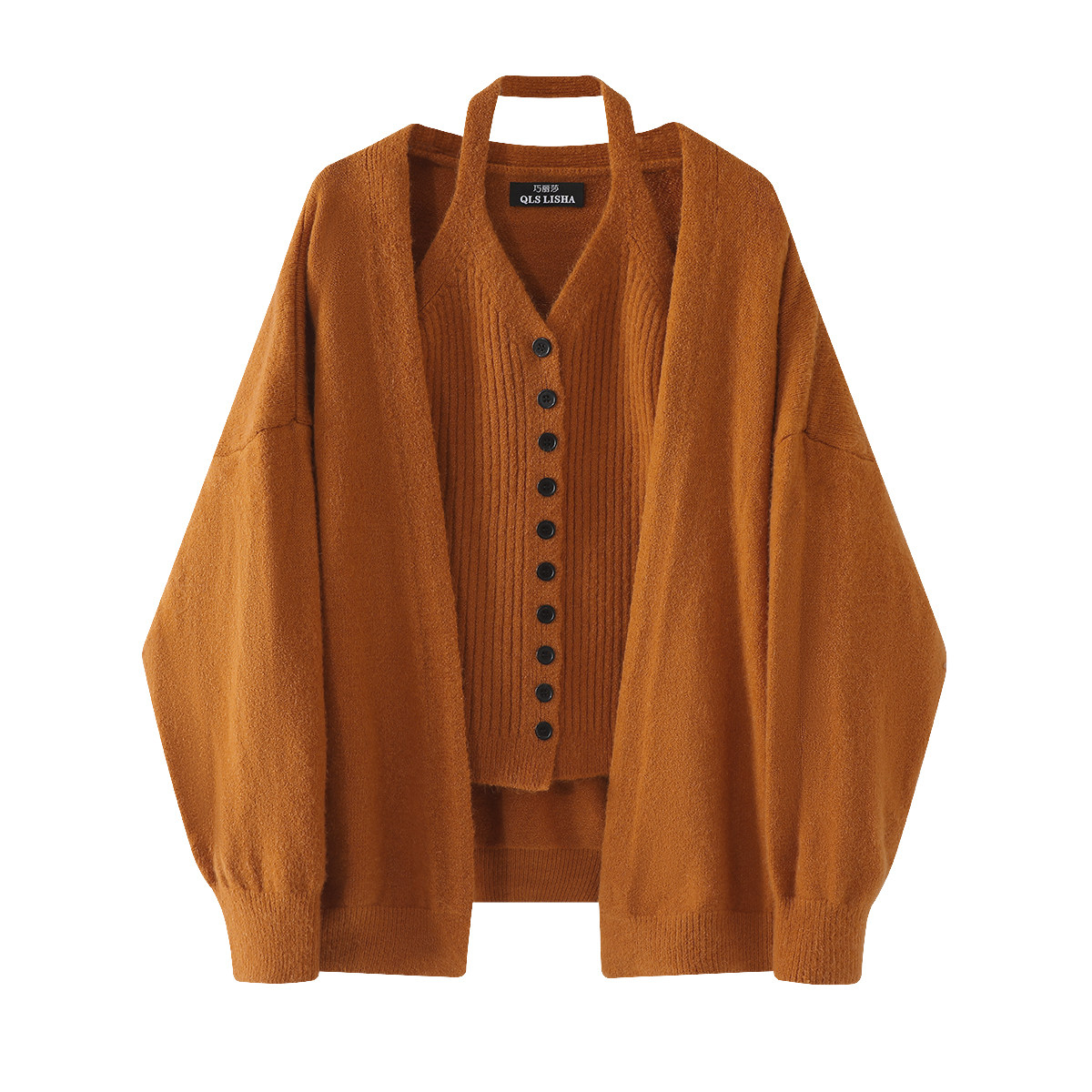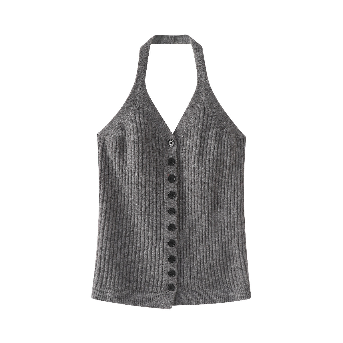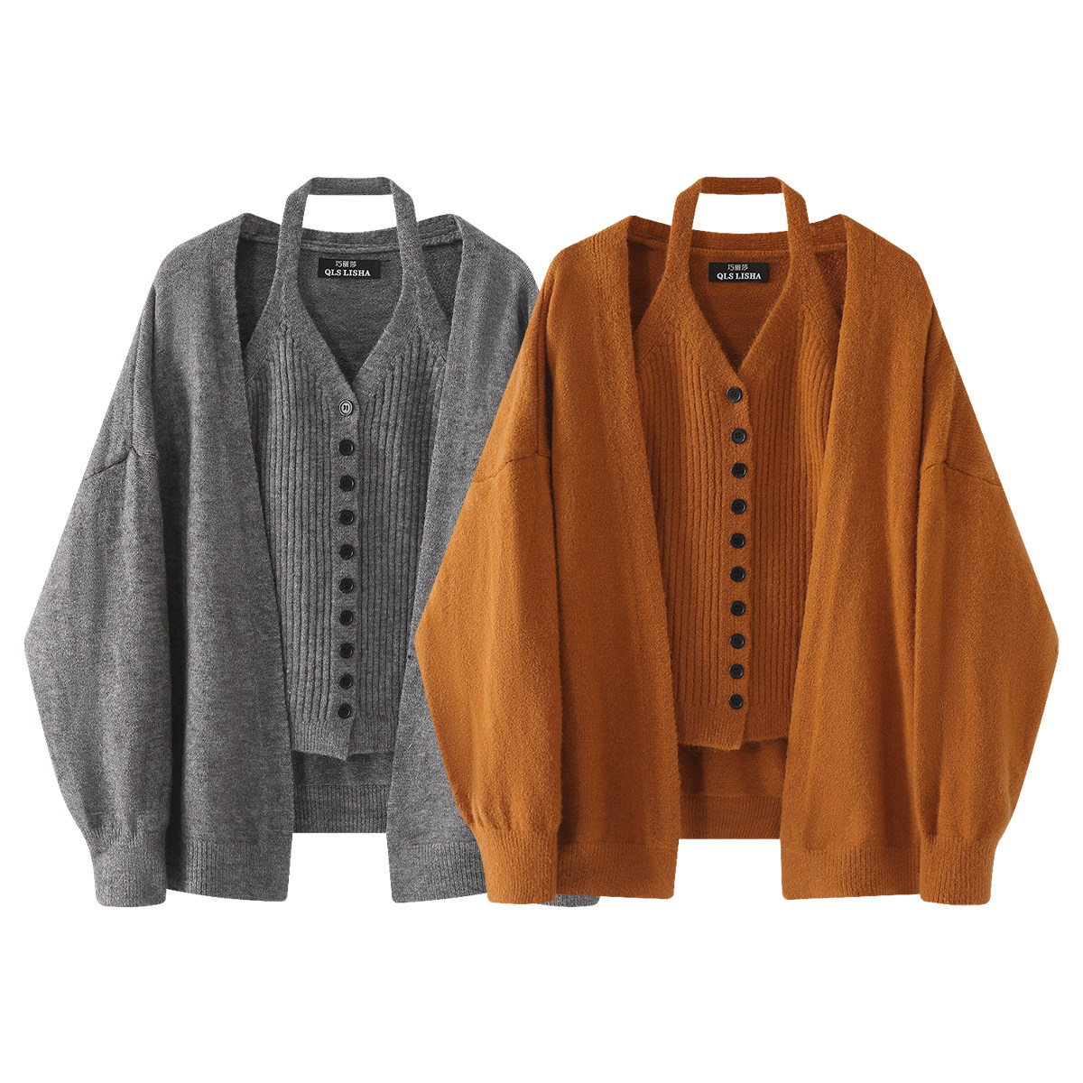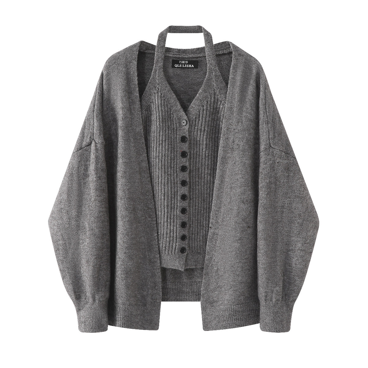 Chola Lisa Boz Kardiqan Sviter Palto Qadın Yaz və Payız Koreya Üslubunda Gündəlik Trikotaj Halter Yaxalıqlı Mayka Top