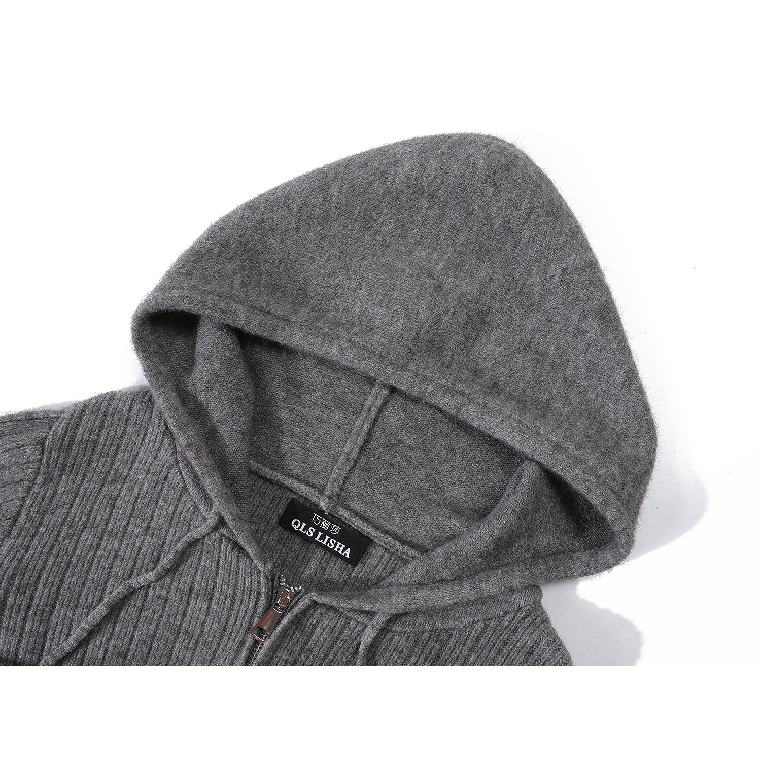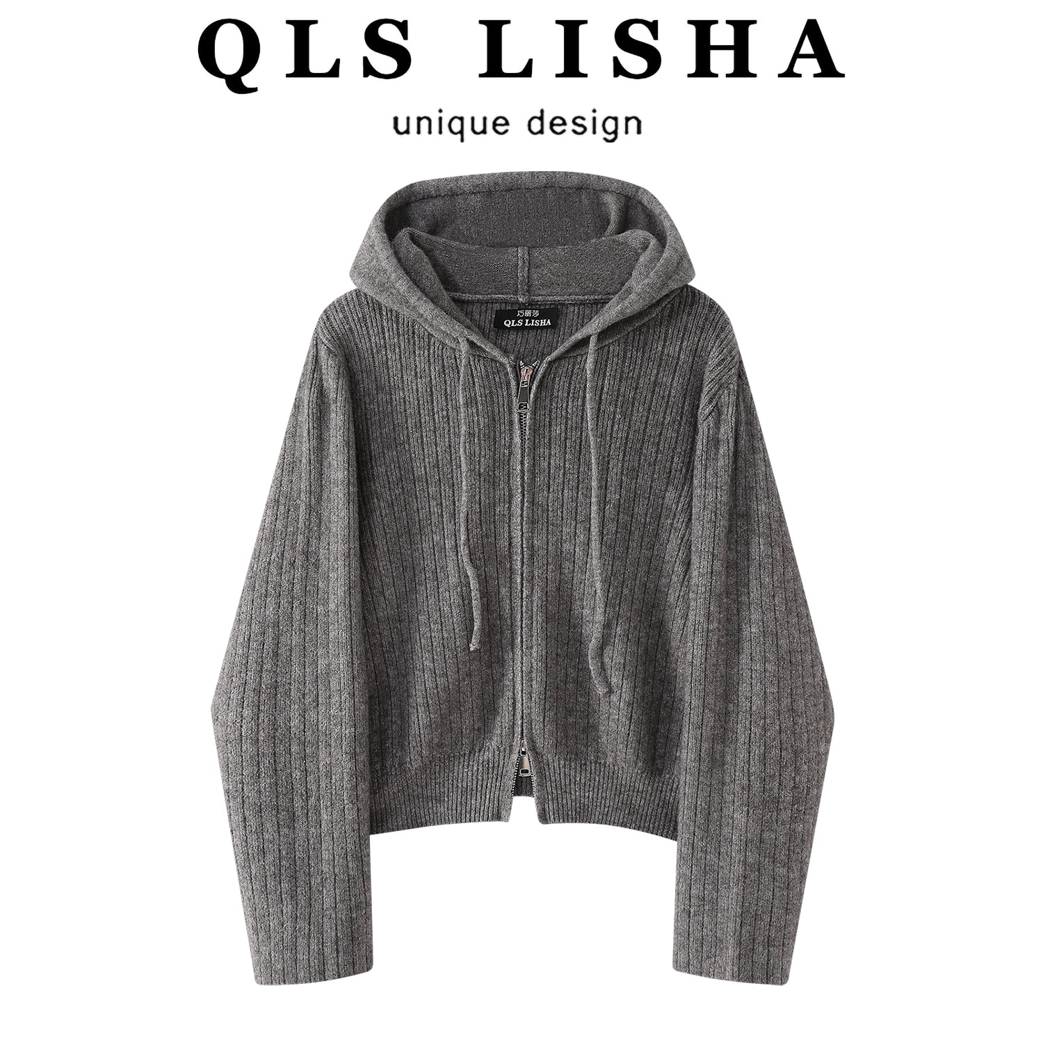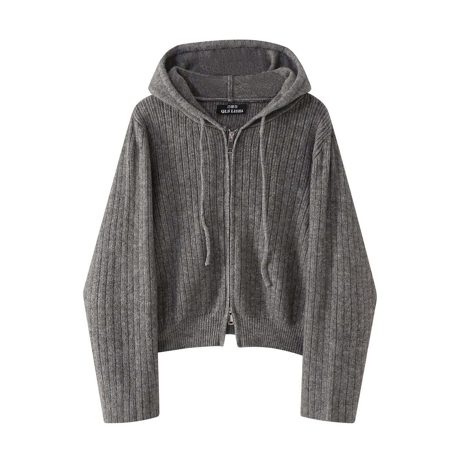 Chola Lisa Boz Sviter Kardiqan, Payız/Qış Yüksək Zövqlü Daxili Qatlı Top, Koreya Üslubunda Tənbəl Başlıqlı Örgü Kardiqan