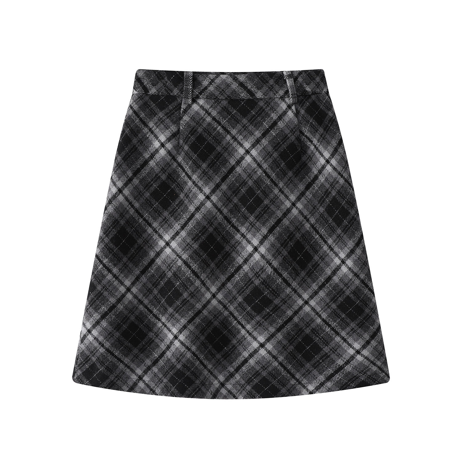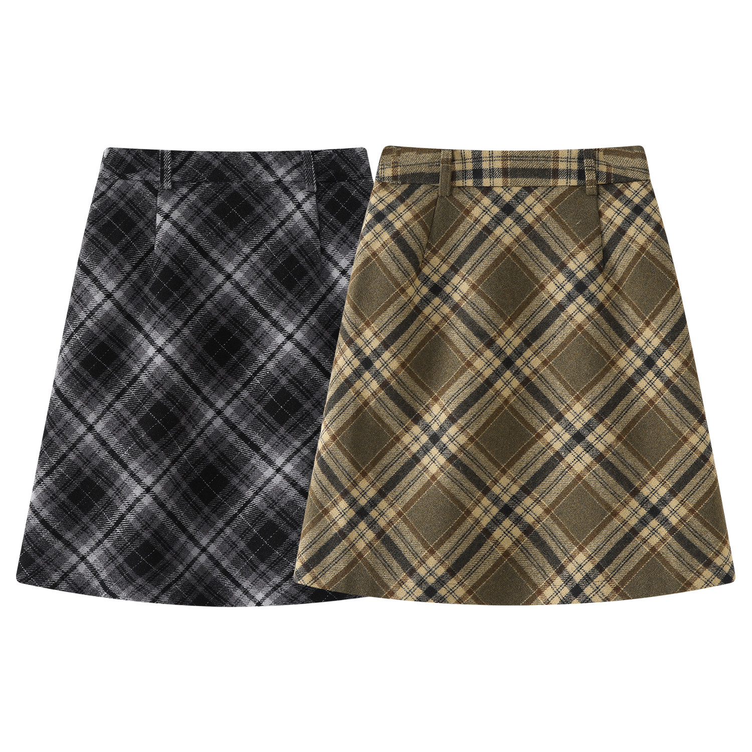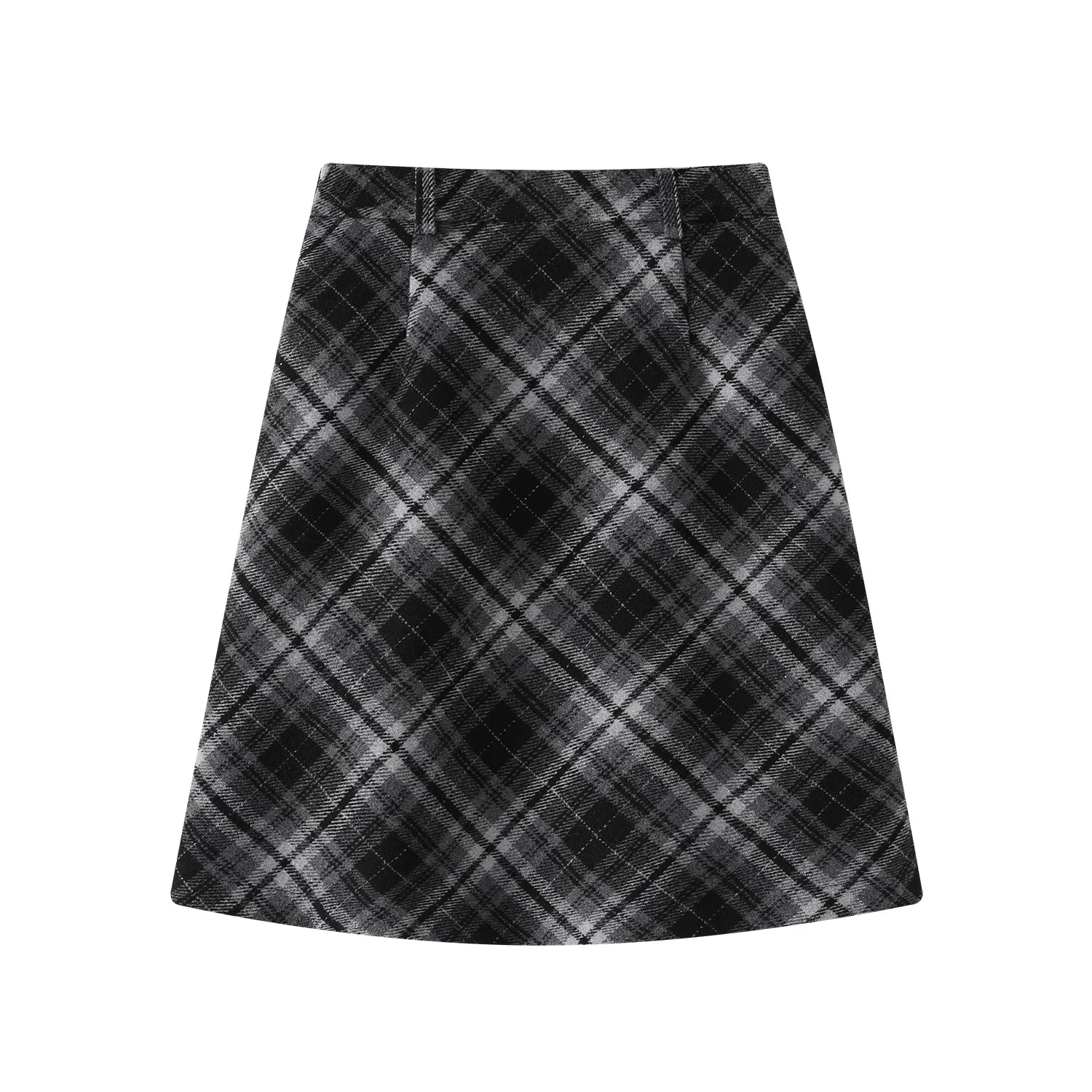 Chola Lisa yun dama-dama midi ətək, qadın payız və qış retro bədən dizaynlı A-xəttli qısa ətək, yüksək belli və uzun.