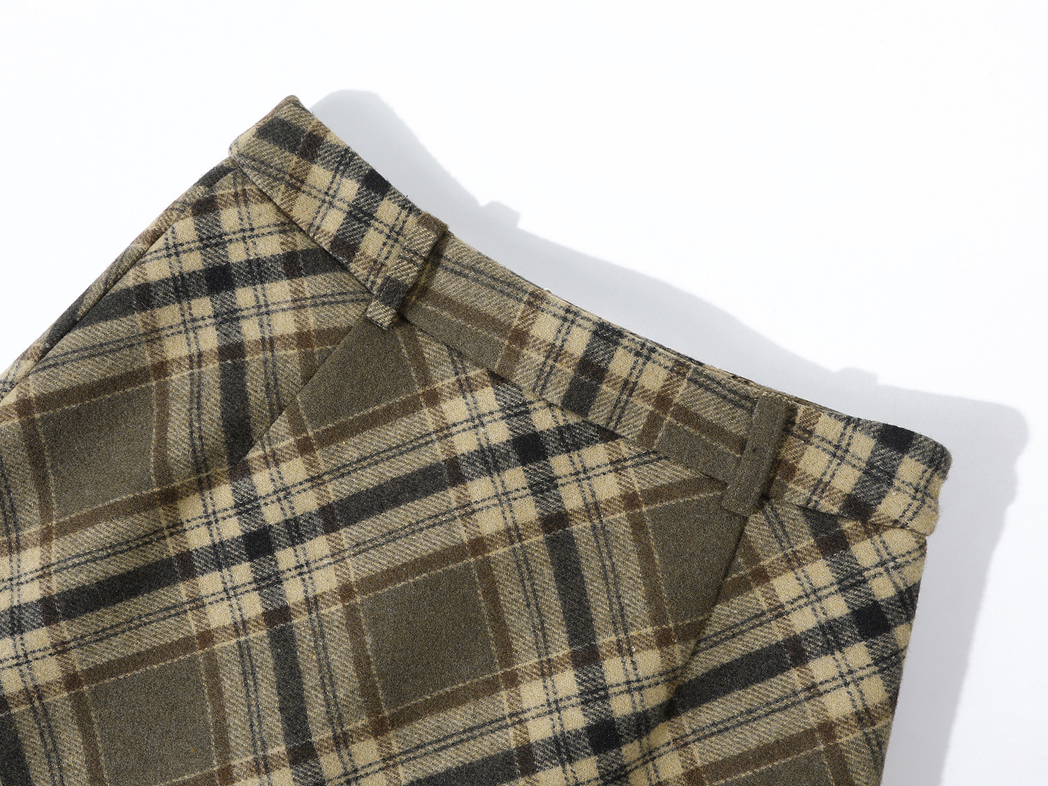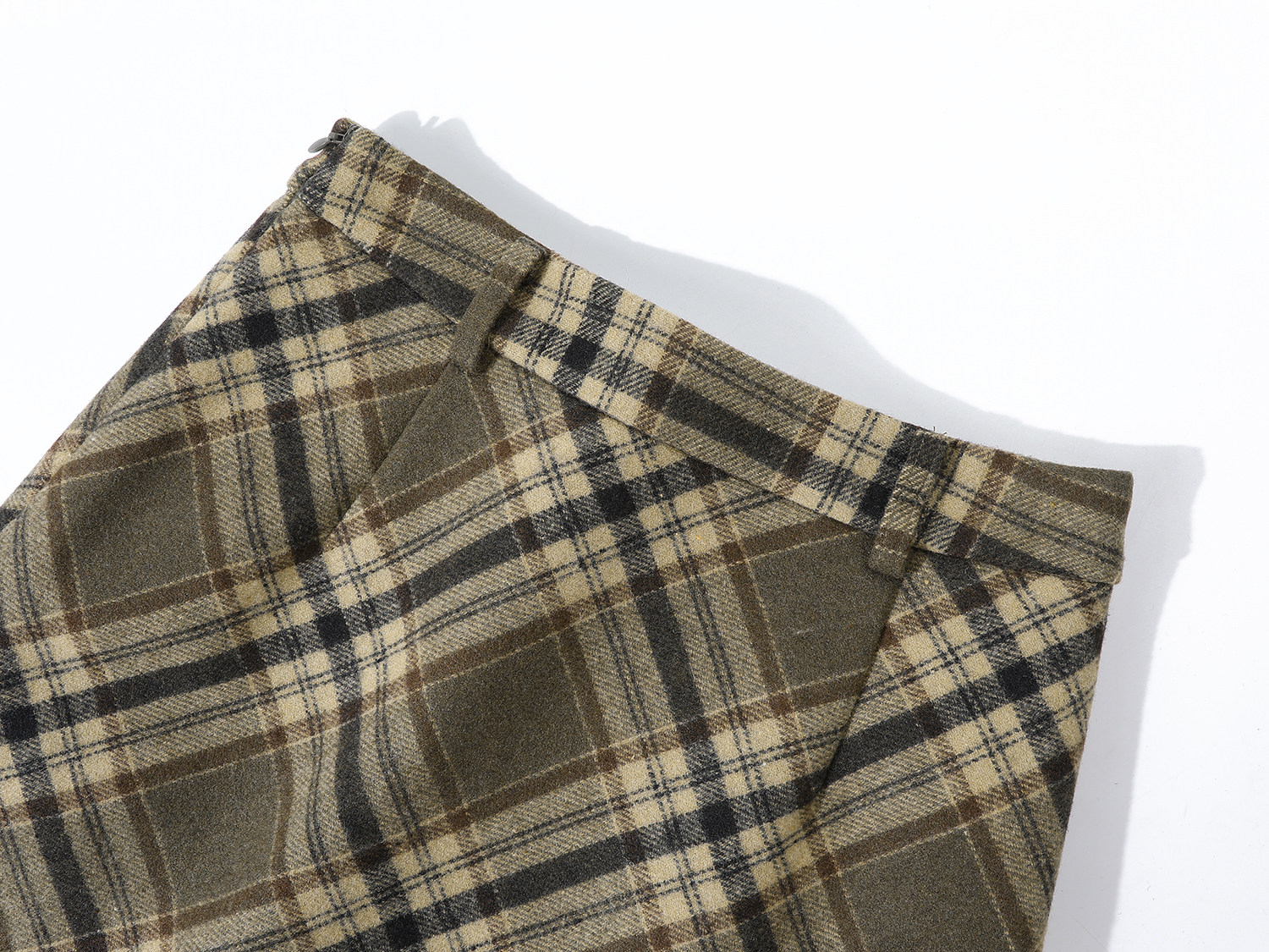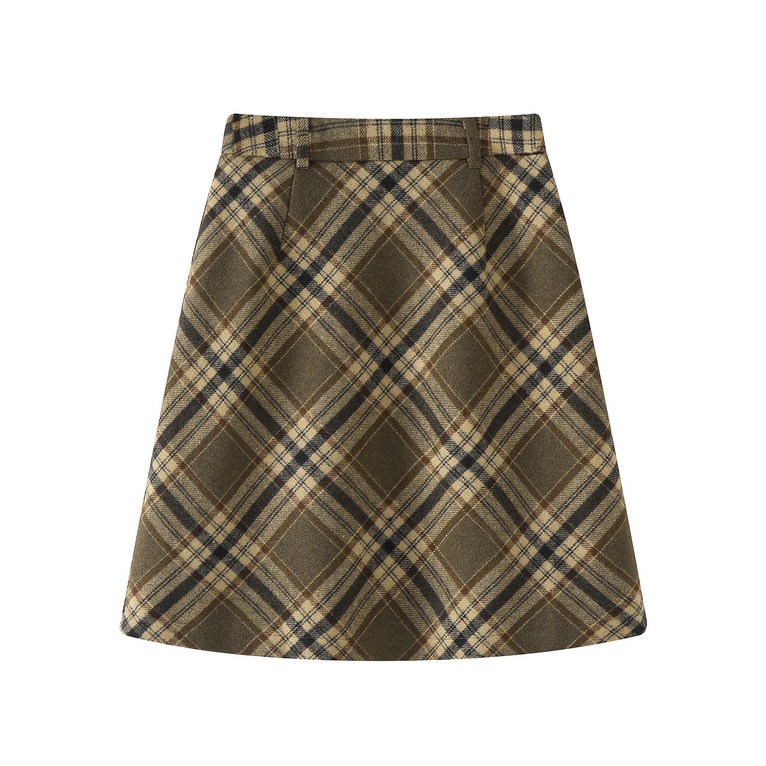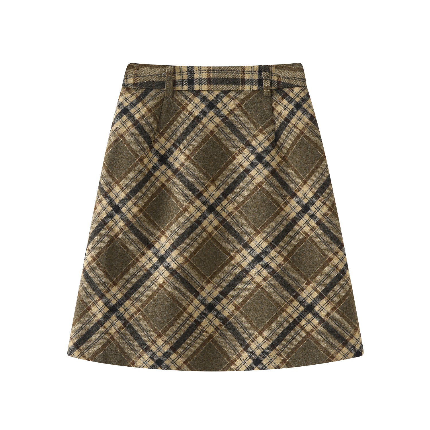 Chola Lisa yun dama-dama midi ətək, qadın payız və qış retro bədən dizaynlı A-xəttli qısa ətək, yüksək belli və uzun.