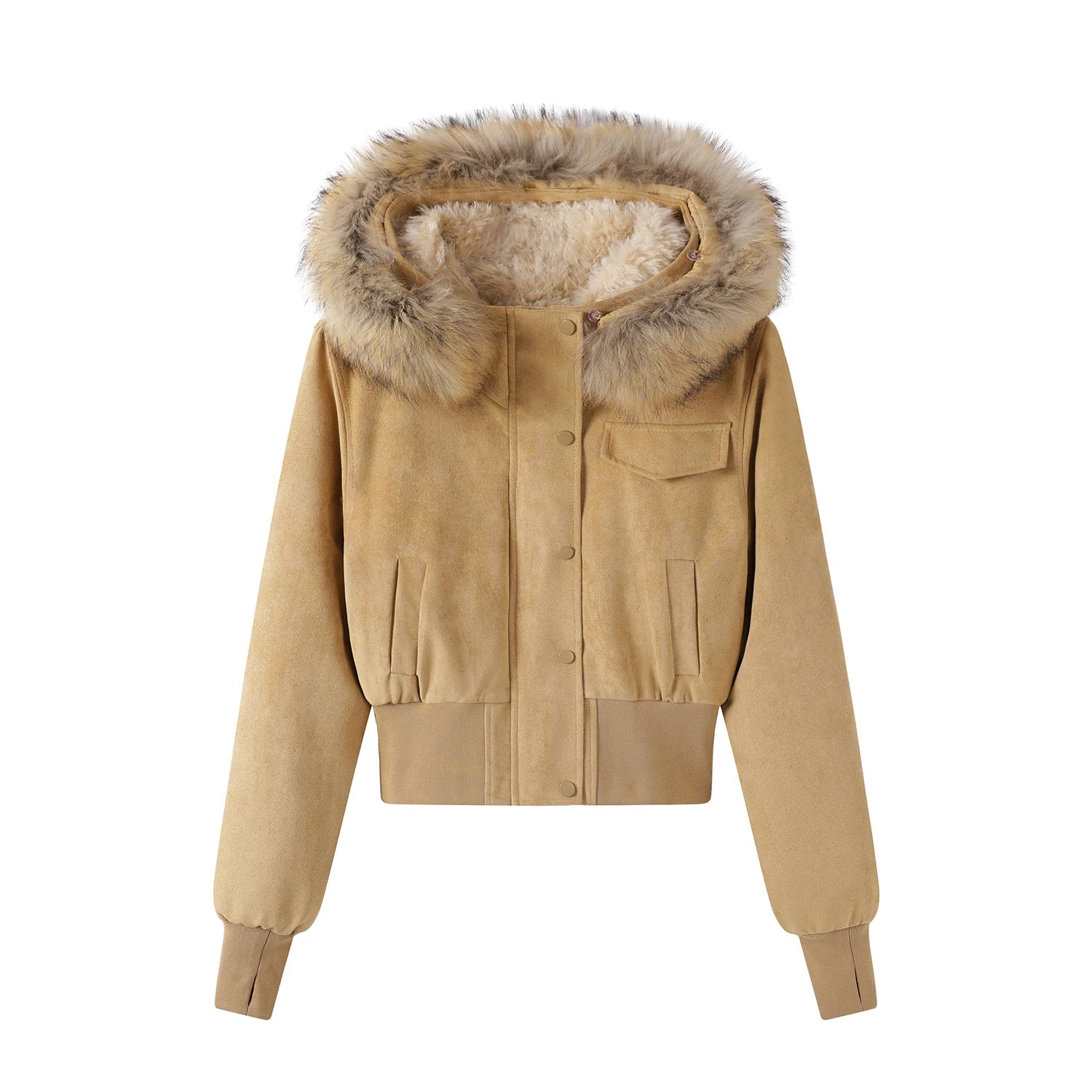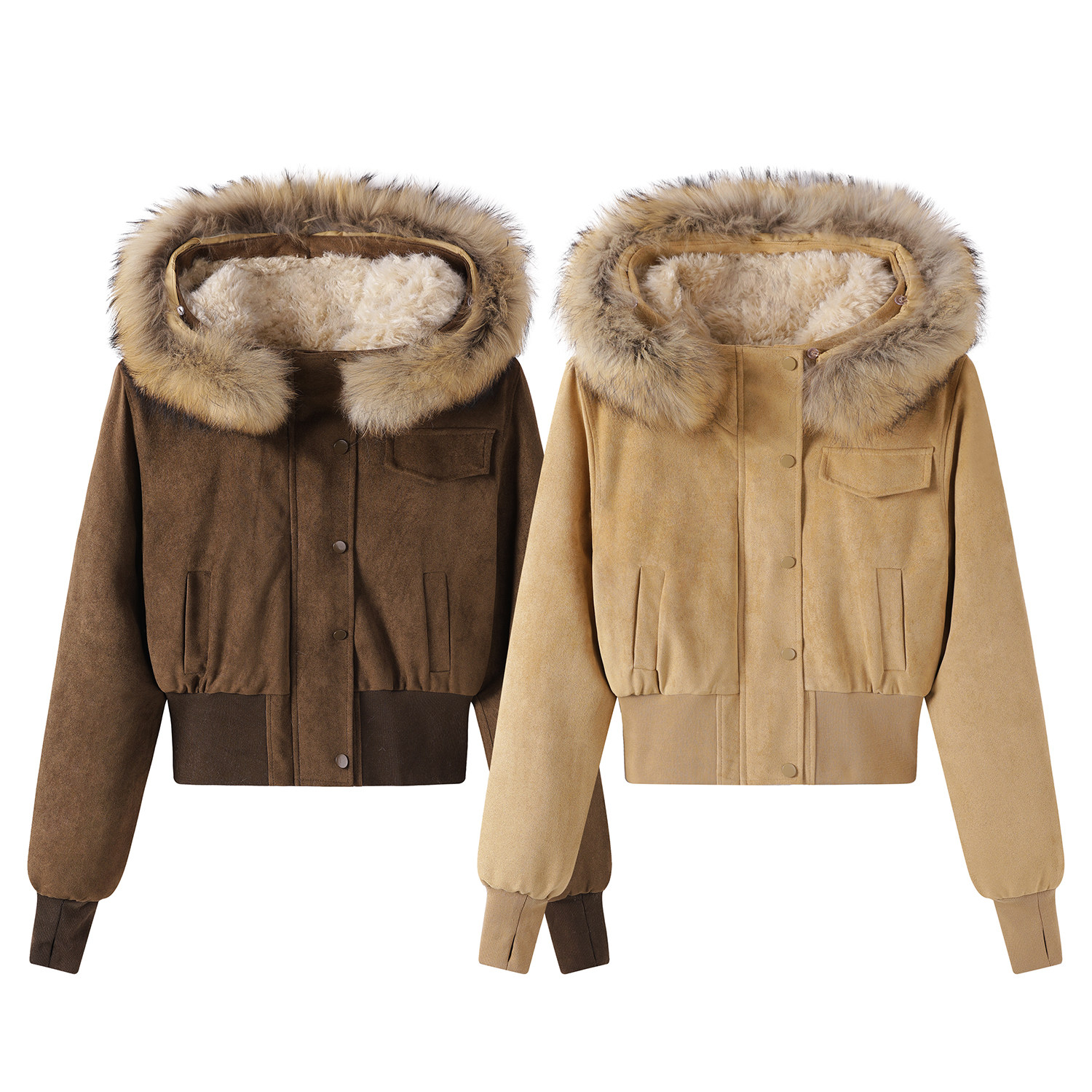 Cholisa Koreya üslubunda qadınlar üçün super şirin qısa zamşa flis gödəkçə, flis astarlı isti və çox yönlü qış paltosu, qısa top.